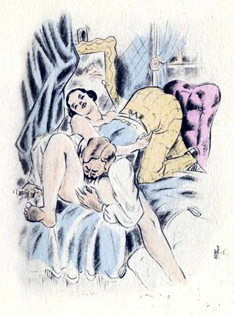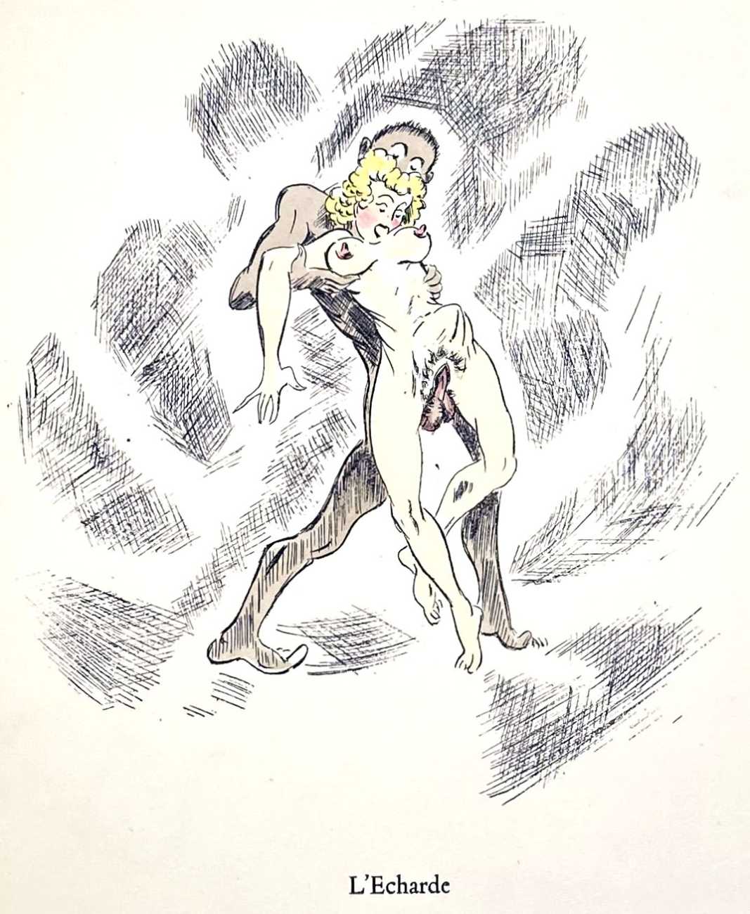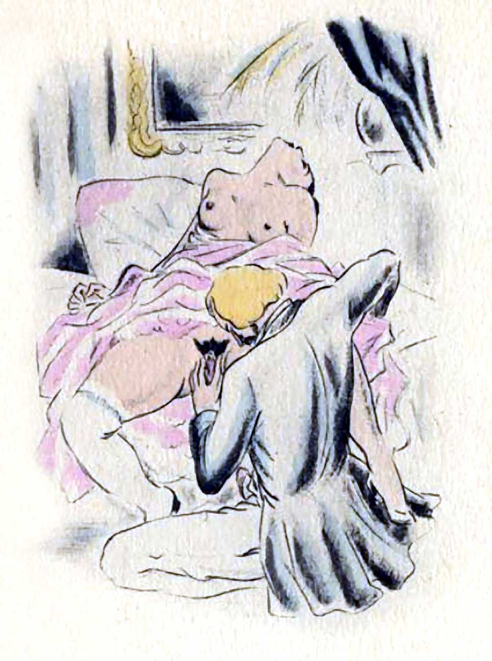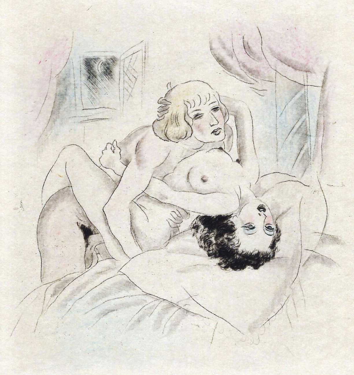 It did not take long for the commissions to start coming in, and from the late 1920s until the 1950s Collot was constantly busy creating illustrations for a wide range of titles, including classics such as Molière and Daudet, contemporary fiction, and more risqué clandestine editions, including his favourite Pierre Louÿs; by 1955 he had illustrated nearly a hundred books. In the 1940s he tried his hand at more conventional painting, exhibiting at the Salon d’Automne in 1942 and the Salon of Independent Artists in 1943, but it is for his graphic yet stylish erotic work that he is best remembered.
