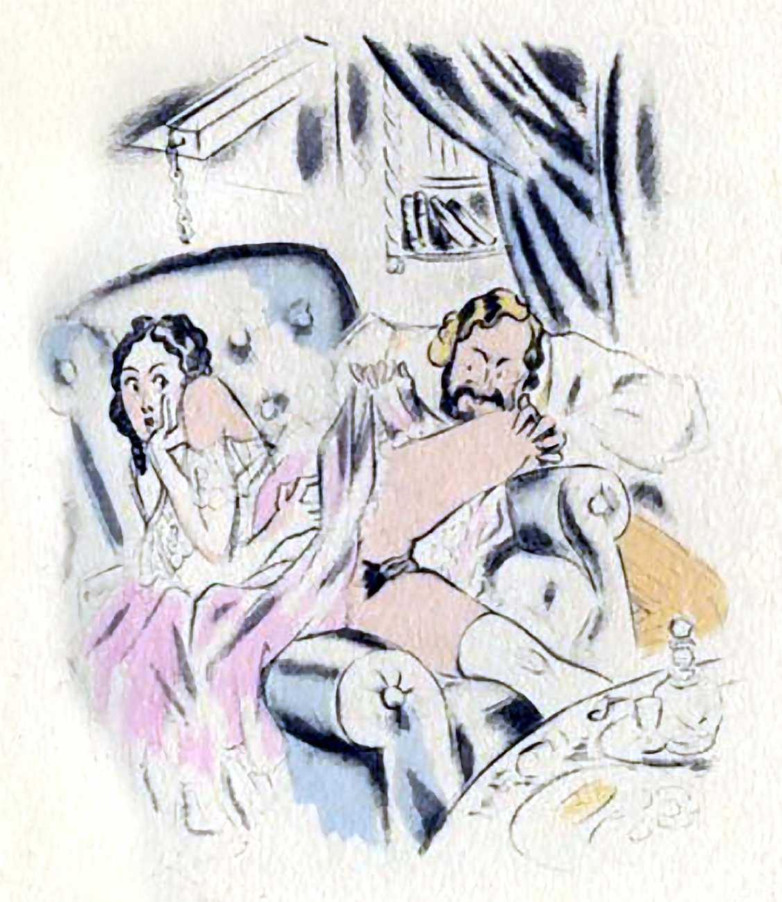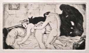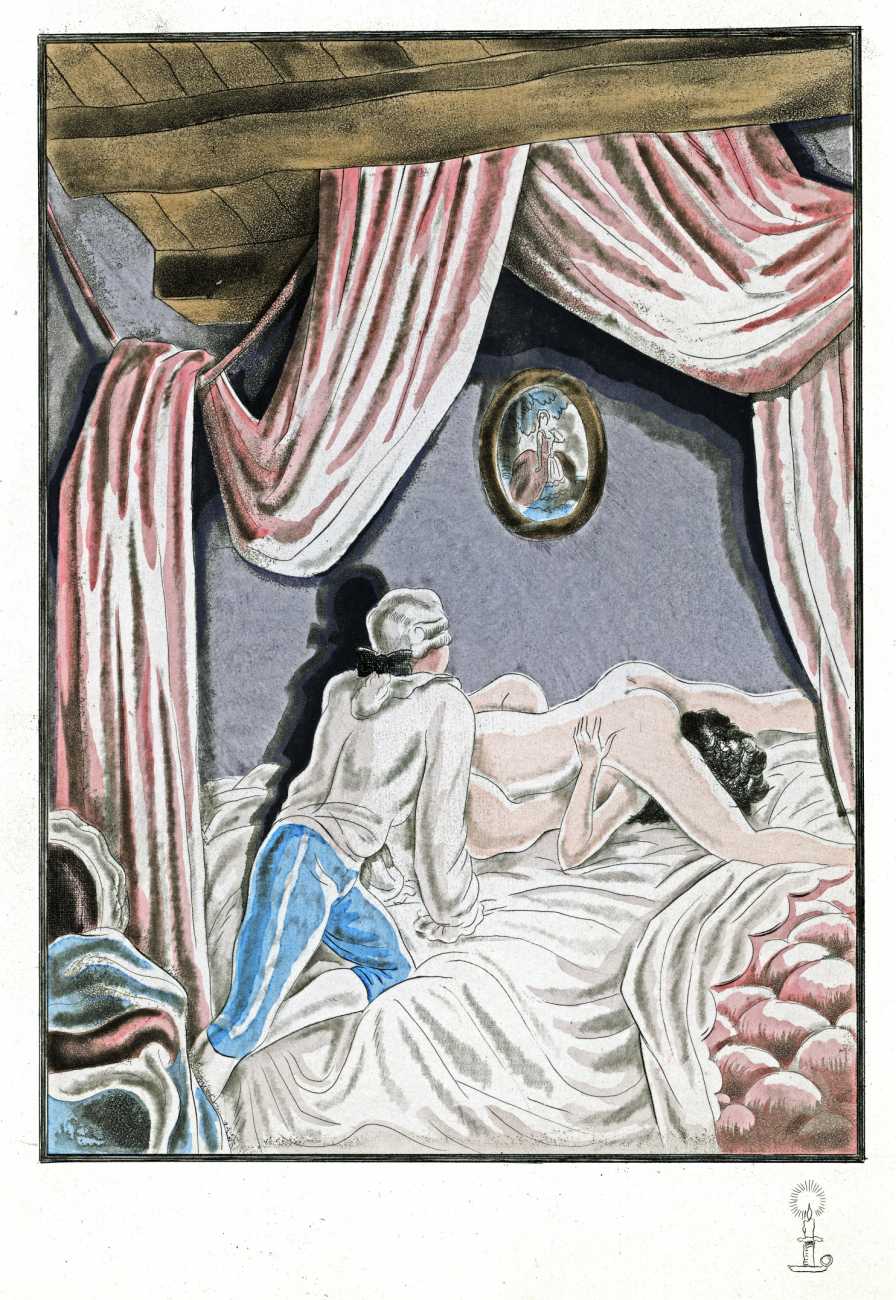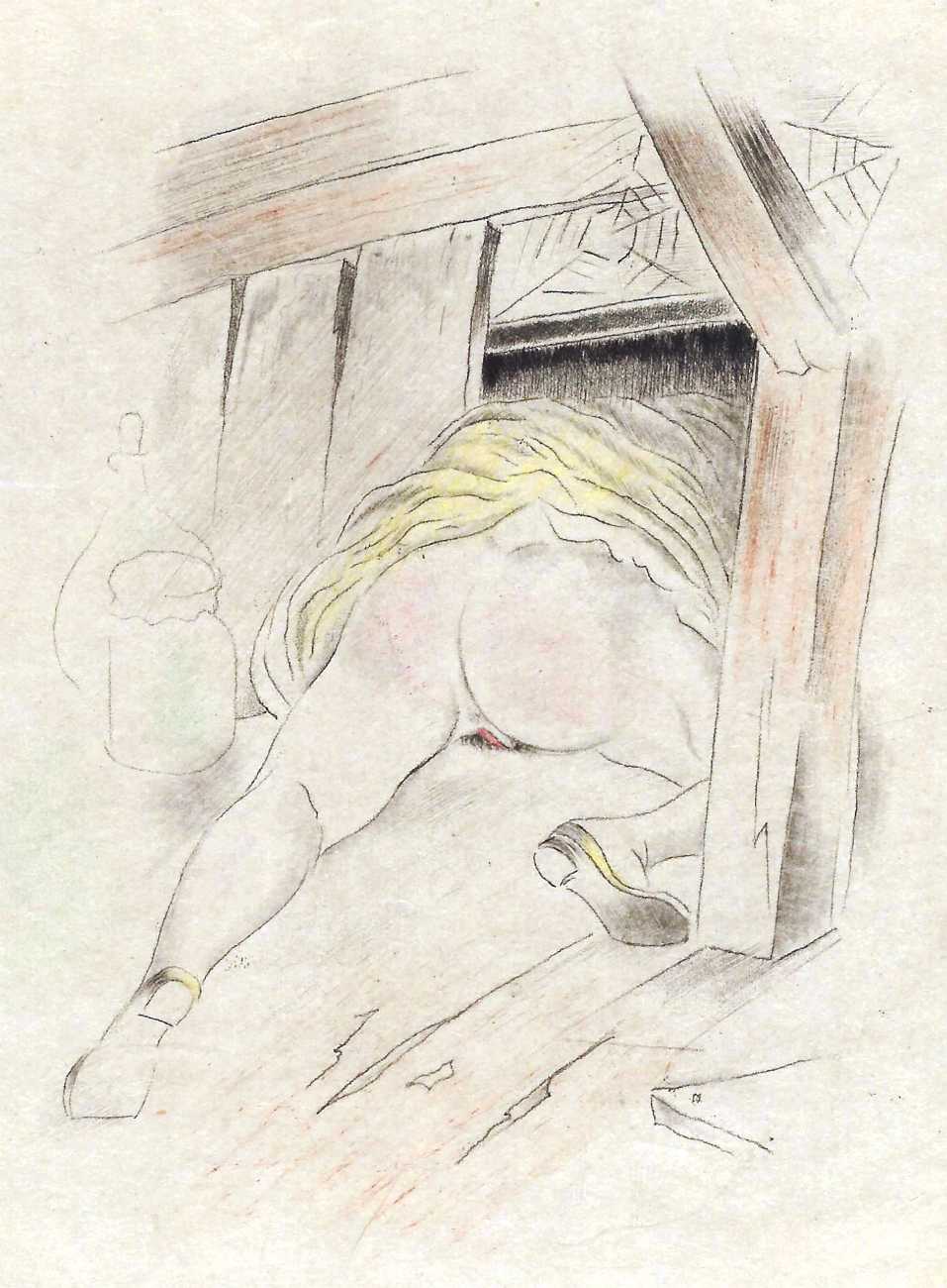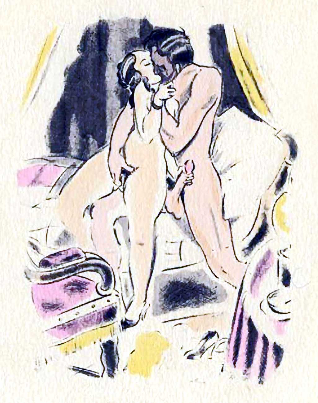 It did not take long for the commissions to start coming in, and from the late 1920s until the 1950s Collot was constantly busy creating illustrations for a wide range of titles, including classics such as Molière and Daudet, contemporary fiction, and more risqué clandestine editions, including his favourite Pierre Louÿs; by 1955 he had illustrated nearly a hundred books. In the 1940s he tried his hand at more conventional painting, exhibiting at the Salon d’Automne in 1942 and the Salon of Independent Artists in 1943, but it is for his graphic yet stylish erotic work that he is best remembered.