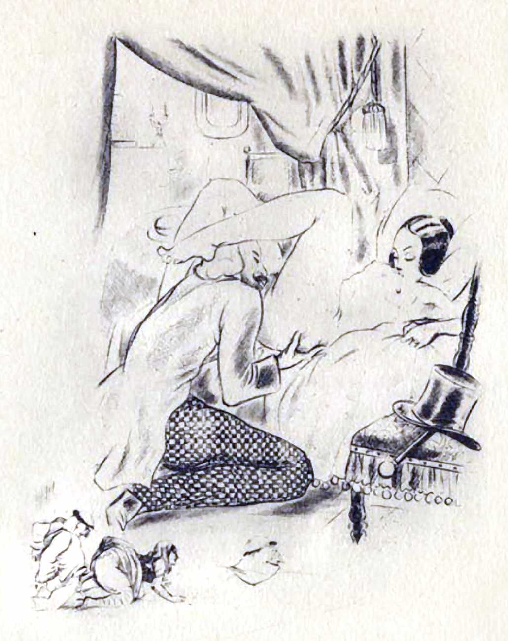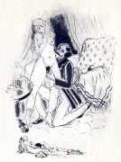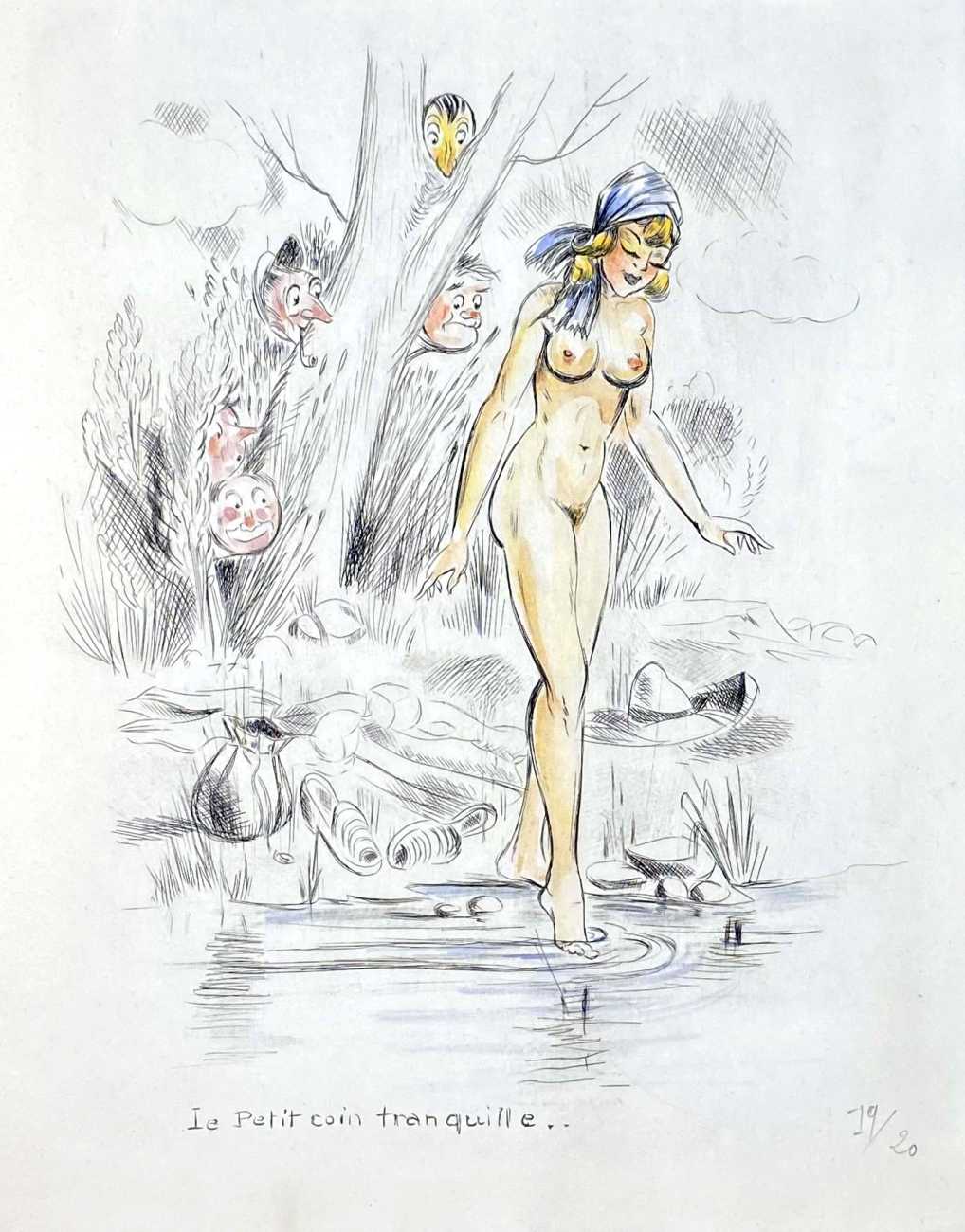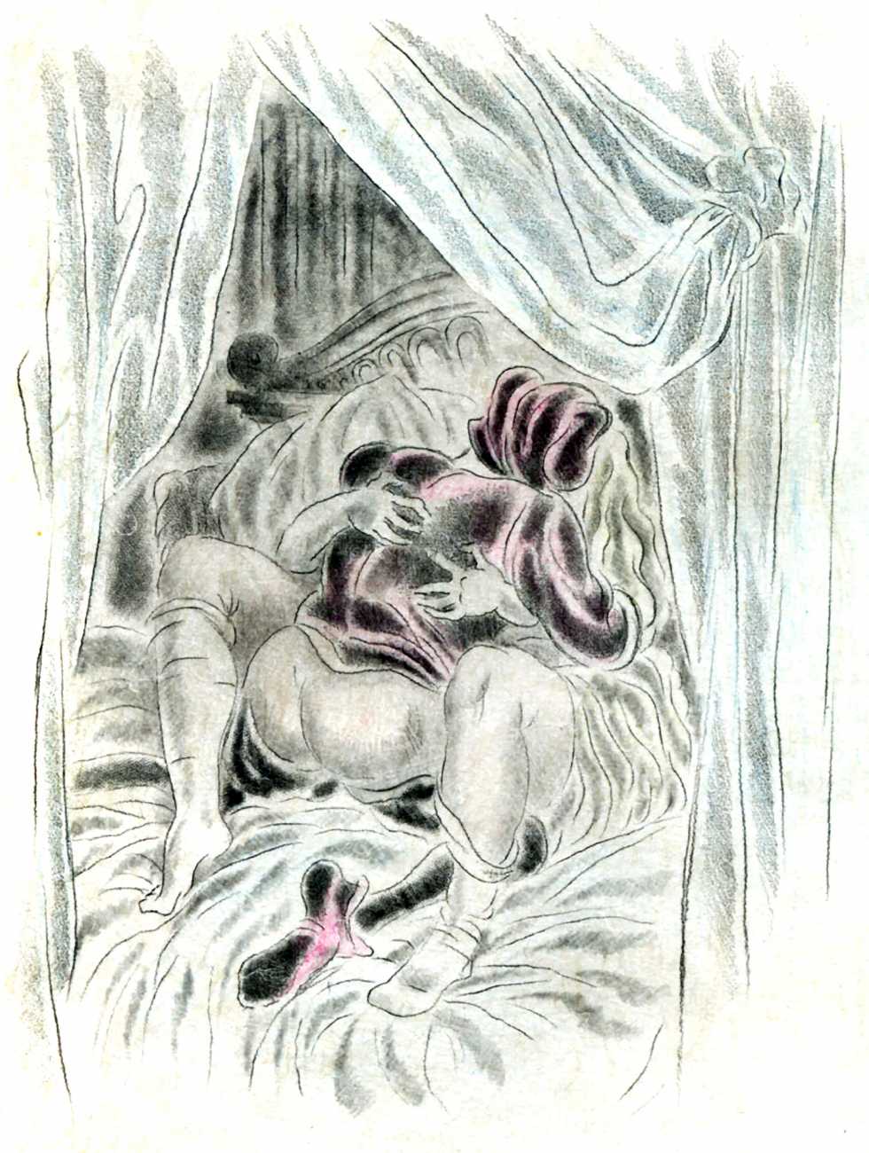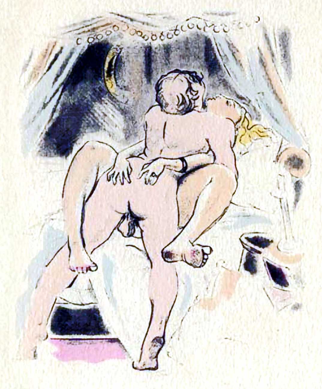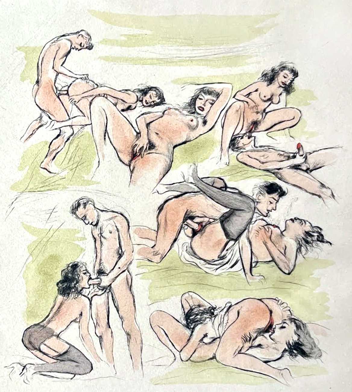 It did not take long for the commissions to start coming in, and from the late 1920s until the 1950s Collot was constantly busy creating illustrations for a wide range of titles, including classics such as Molière and Daudet, contemporary fiction, and more risqué clandestine editions, including his favourite Pierre Louÿs; by 1955 he had illustrated nearly a hundred books. In the 1940s he tried his hand at more conventional painting, exhibiting at the Salon d’Automne in 1942 and the Salon of Independent Artists in 1943, but it is for his graphic yet stylish erotic work that he is best remembered.
