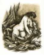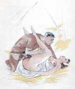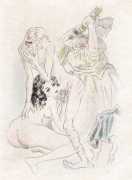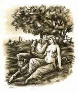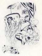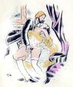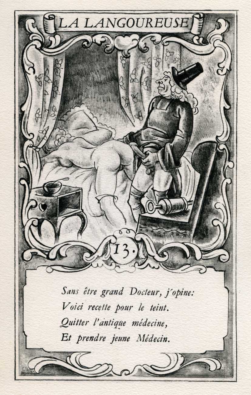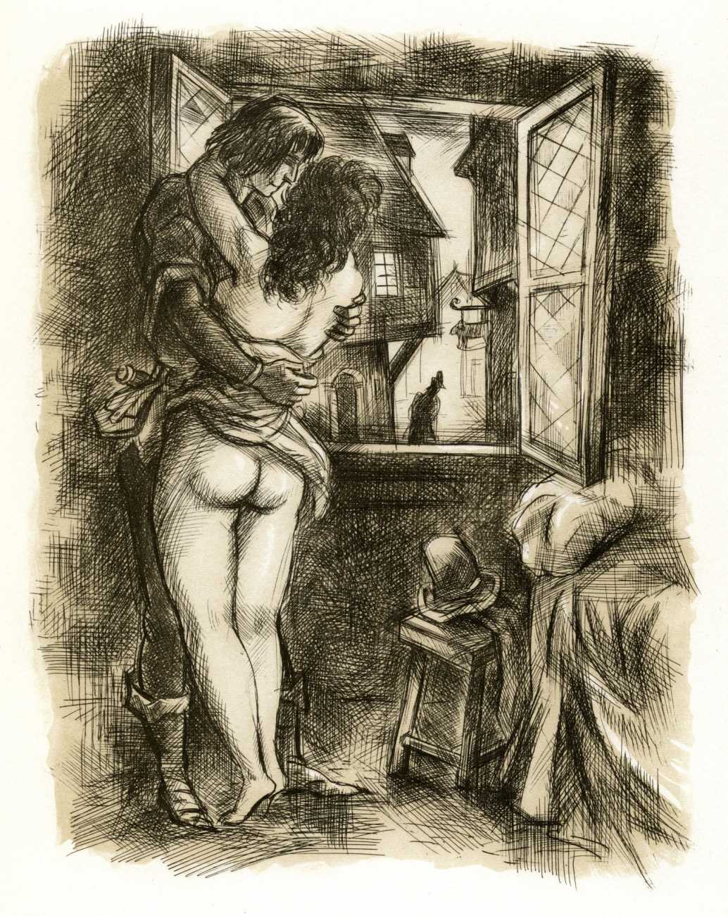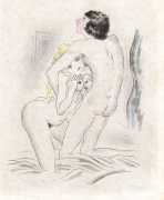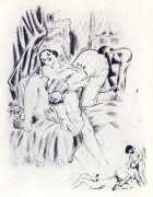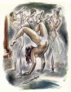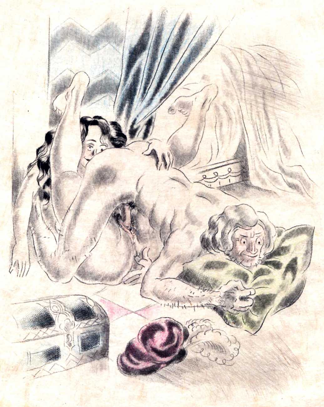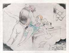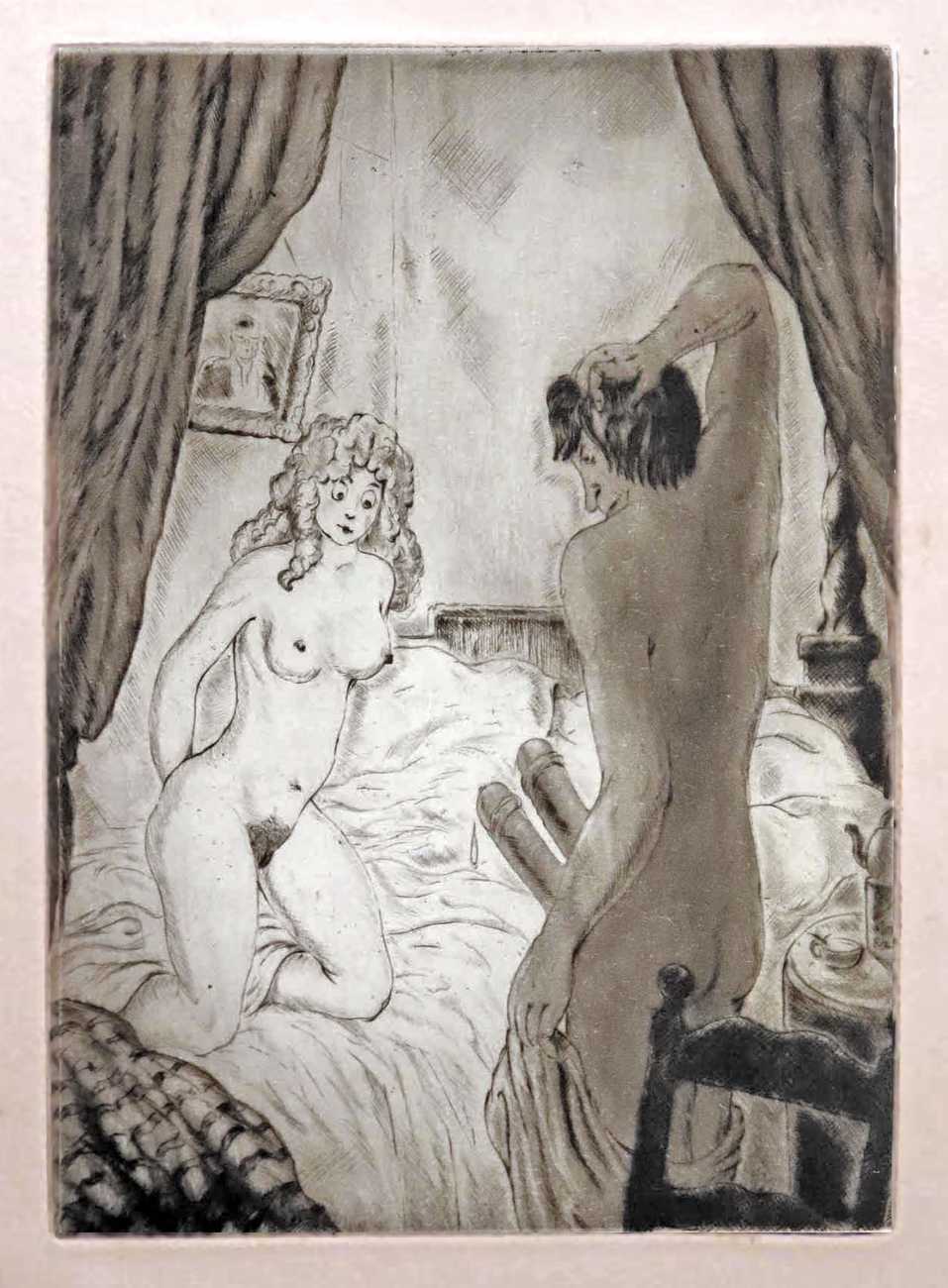 It did not take long for the commissions to start coming in, and from the late 1920s until the 1950s Collot was constantly busy creating illustrations for a wide range of titles, including classics such as Molière and Daudet, contemporary fiction, and more risqué clandestine editions, including his favourite Pierre Louÿs; by 1955 he had illustrated nearly a hundred books. In the 1940s he tried his hand at more conventional painting, exhibiting at the Salon d’Automne in 1942 and the Salon of Independent Artists in 1943, but it is for his graphic yet stylish erotic work that he is best remembered.