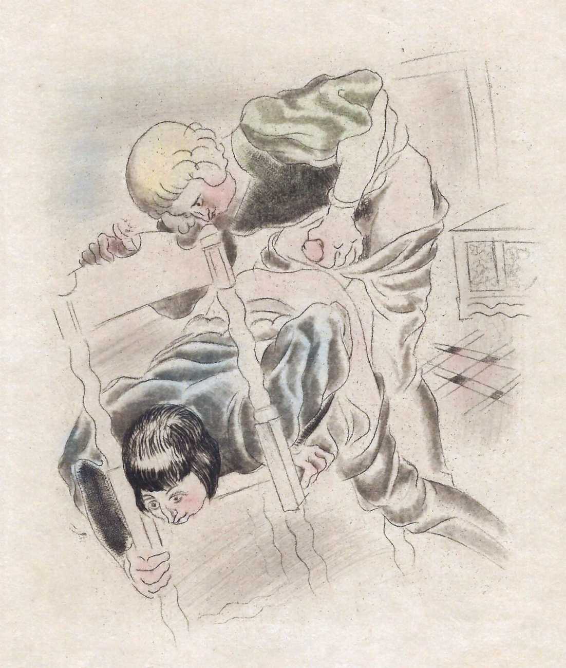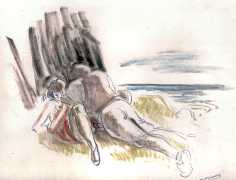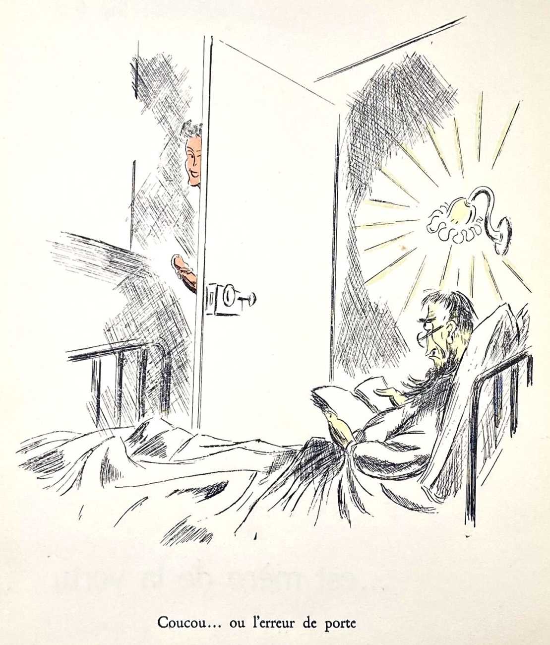 Alongside illustration, alcohol and sailing were Collot’s other main pleasures. He was a close friend of the popular writer Jacques Perret (1901–92), and when Perret won the prestigious Prix Interallié in 1951 he bought a small sailing boat, the Matam, and invited Collot to join him for a daring voyage from Honfleur to Santander. They only got as far as Cherbourg, but the shared experience found expression in Perret’s Rôle de plaisance (Doing it for Fun, 1957), wittily illustrated by Collot.