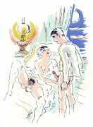 The Hungarian-born artist and illustrator André Dugo’s birth name was Andras Szenes, but he often used the pseudonym ‘Dugo’ for his illustration work, and changed his name to André Dugo when he moved to the USA in 1939. He grew up in the central Hungarian town of Szolnok, and after leaving school started to study architecture in Budapest, but his studies were interrupted by World War 1, when as an officer he was wounded and invalided back to Budapest. After the war he completed his architectural studies and moved to Munich to study art. During the 1920s and 30s his paintings, signed ‘Szenes’, were exhibited in Budapest, Munich and Paris, and his ‘Dugo’ illustrations appeared in German and French magazines.