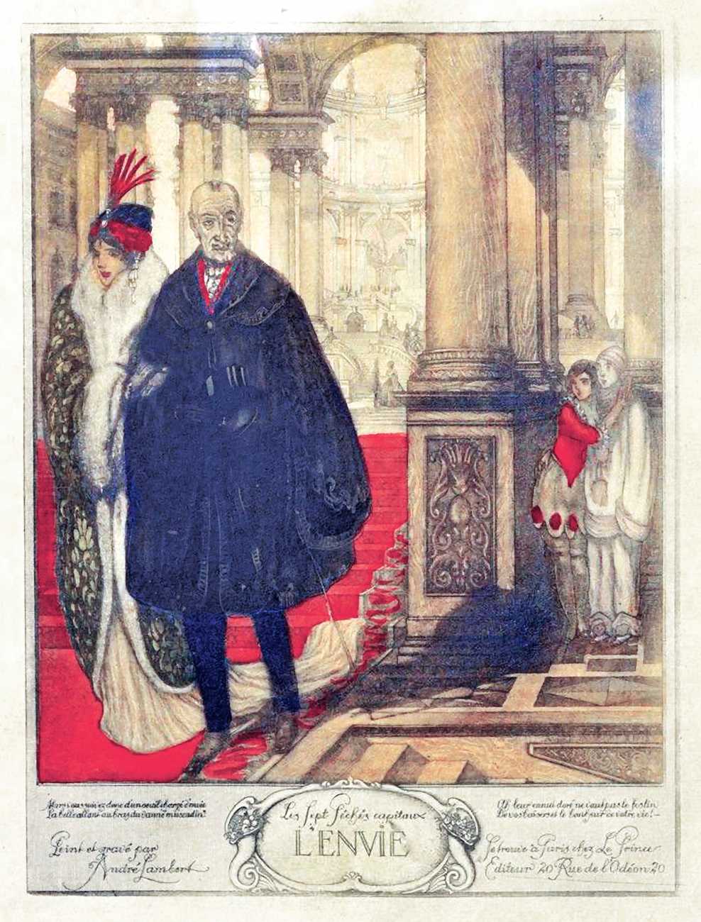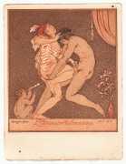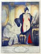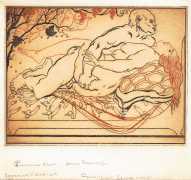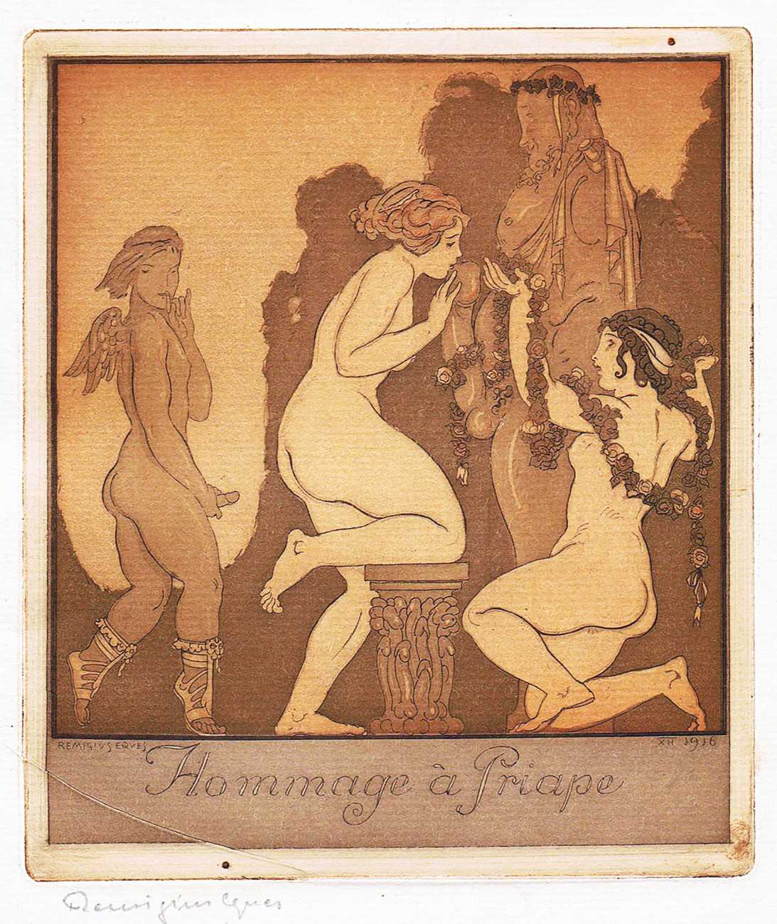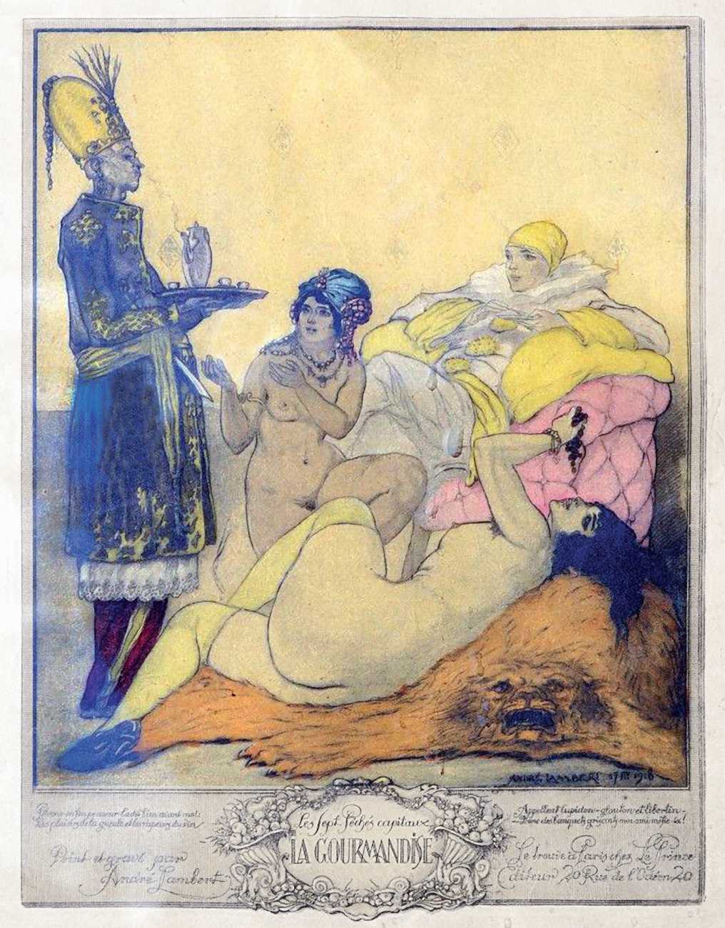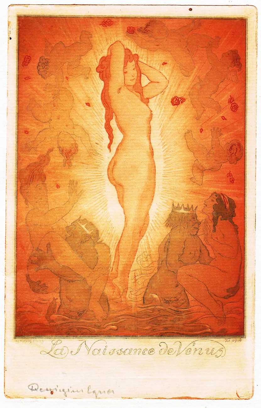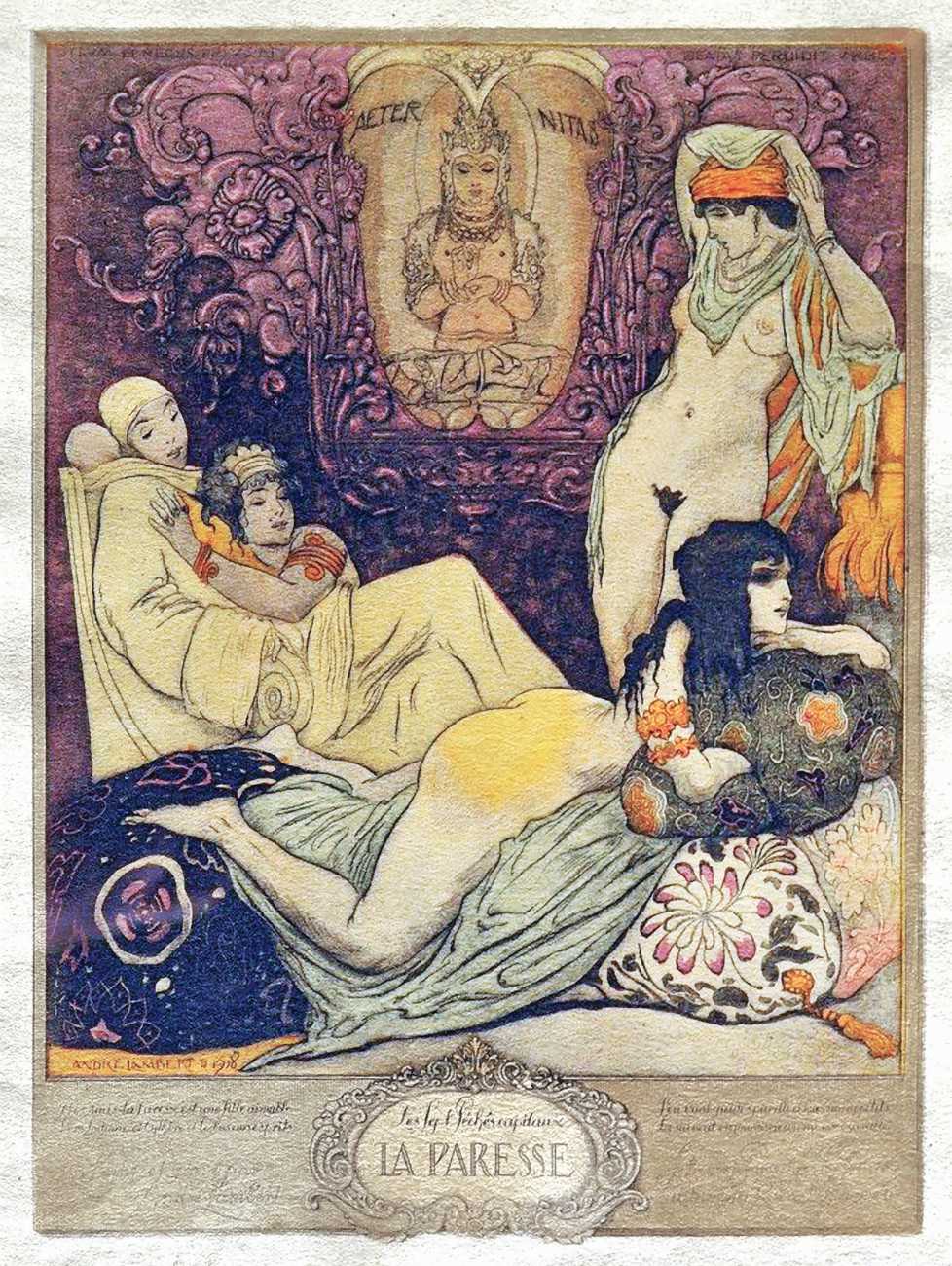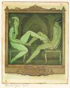 The bibliophile Latinist expressed his creativity in illustrating the classics; among others he illustrated Hoffmann’s Tales for Briffaut in 1925 and Ovid’s Metamorphoses for Devambez in 1930. André Lambert devoted his days in his studio searching for a perfect form of illustration, the creation of a clear form emphasising the value of the antique legends and mythology. When not at his printing press he travelled the countryside, sketching villagers and landscapes. His talent as an engraver was much admired by other artists including Gerda Wegener and Édouard Chimot.