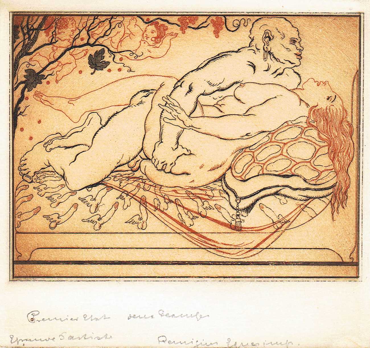 André Lambert was born in Stuttgart into a family of architects. He became the student of the influential painter Hugo van Habermann in Munich, and then of Fernand Cormon at the École des Beaux-Arts in Paris. He was particularly influenced by the work of Aubrey Beardsley, who he saw as the future of graphic art. Lambert also immersed himself in the classics, becoming fluent in Latin and studying Greek and Roman art. His knowledge of the antique world coupled with his artistic training gave rise to the particularly intimate style which would become his own.