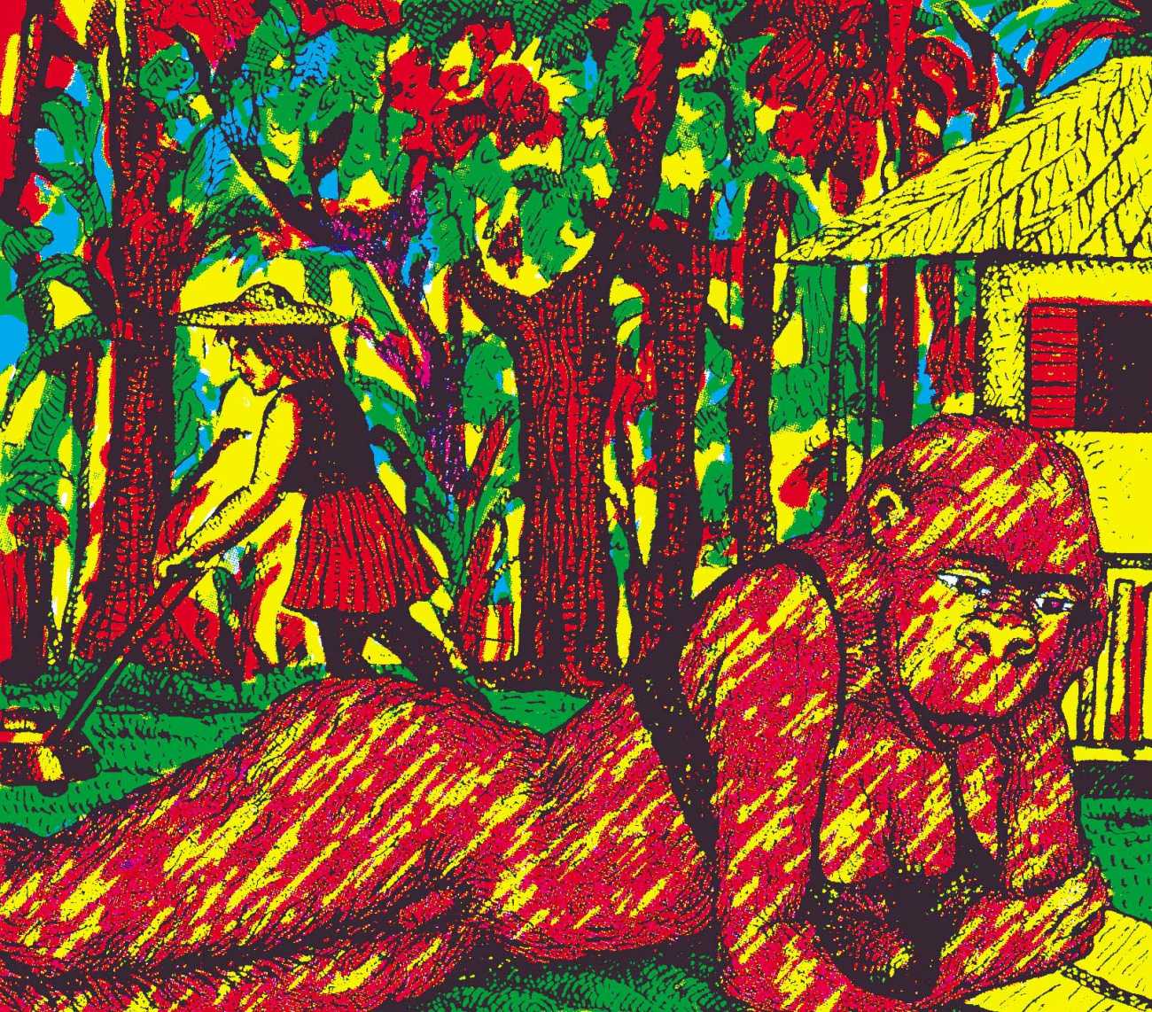 Anne van der Linden’s drawings and paintings reveal the teeming bowels of a world in a state of horror. They remind the viewer of violent engravings in eighteenth century travel accounts, of the German Expressionist artists who described the madness of war, or of Géricault, to whom she pays magnificent tribute in her 2016 version of ‘Le radeau de la Méduse’ (The Raft of the Medusa), echoing the ravages of the Syrian conflict and the drama of migrants, and continuing the great tradition of historical painting while mixing the grotesque with horror, including a cannibalistic king in polka-dot swimming trunks and flip-flops.