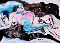 One of these artists, Toussaint Essers, became her main teacher and inspiration, and together they developed the colourful free style for which they are both known. In 2015 they expanded their collaboration into a relationship, sharing studio space and exhibitions. They now live and work in Maastricht. Numerous exhibitions followed in the Netherlands, and also in Portugal.