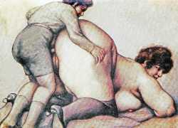 In the respectable, bourgeois, well-heeled world of collectors of erotic art portfolios produced ‘for the appreciative connoisseur’, you didn’t particularly need to know the name of the illustrator, simply that you liked the images. Though not always the case, the better the artist the better the illustrations, and though there were good artist-illustrators who were quite comfortable being know for their erotic work, many had reputations as respectable artists to maintain, so they worked either under pseudonyms or anonymously, thus joining the swelling ranks of Anon.
