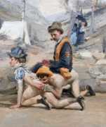 Cabrera Montejo’s more recent work explores similar themes of historic truth, sexuality and power in modern society, in large canvases populated with a mixed crowd of people interacting in thought-provoking ways.