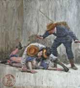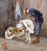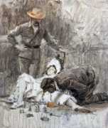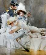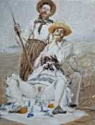In his work, Cabrera Montejo recreates theatrical scenarios inspired by the historical periods like the interwar period known as La Tregua Fecunda or Fertile Truce (1879–95), and the Cuban War of Independence (1895–98). His imagined subjects are anecdotal heroes, not depicted like the traditional representations of heroes in Cuban colonial paintings by Juan Emilio Hernández Giro, Leopoldo Romañach and Armando Menocal. Cabrera Montejo’s characters have carnal, ludic, sensual desires. His subjects are less military and more human, not solemn serious figures on pedestals.