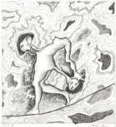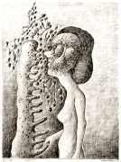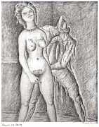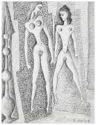 Armand Simon was a Belgian surrealist artist whose work often explored themes of eroticism and fantasy. Having grown up in the village of Pâturages in western Belgium, he went on to study science at the Athenaeum in Mons, where he met the poet Achille Chavée and the writer Fernand Demoustier, better known under the pen name of Fernand Dumont. With them, he became a student at the L’Université Libre de Bruxelles, but abandoned his studies after the first year. In 1930 Chavée and Demoustier introduced him to surrealism, and Simon produced his first surrealist-inspired drawings in 1933. Their mixture of cruelty and eroticism evokes Pierre Molinier and Max Walter Svanberg, often depicting fantastic creatures and dreamlike scenarios, reflecting his vivid imagination and literary influences.