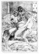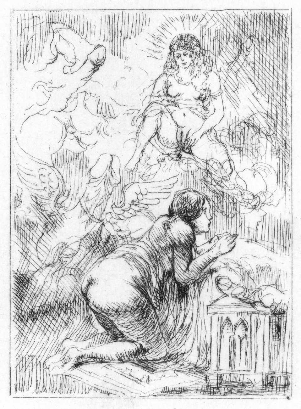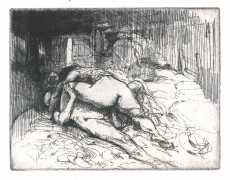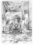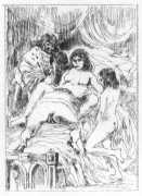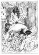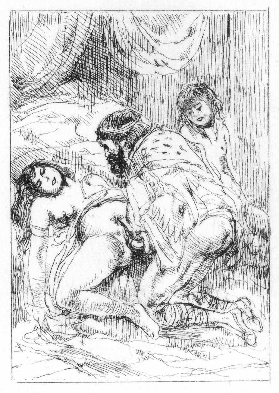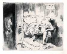 It was probably his studies of dancers that brought Brouet’s skills to the attention of the collectors of limited-edition print editions of erotic texts, and to publishers comfortable with such material like Gaston Boutitie and René Bonnel. Close-up studies of bodies, especially naked ones, was not particularly Brouet’s forte, but he was always open to a challenge. Where he lived all his adult life, near the top of Montmartre, was an ideal location for studying his subjects in the flesh, and though we know little of his rather single (though very sociable) life, he created some touching and sensitive intimate scenes for the three specifically erotic portfolios he made between 1926 and 1938.