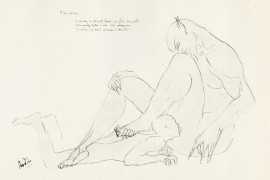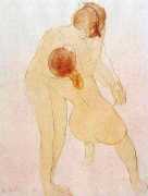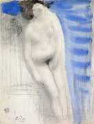 As an illustrator, his two main achievements were the line and wash illustrations to an 1883 edition of Charles Baudelaire’s poetry collection Les fleurs du mal (The Flowers of Evil), a work Rodin greatly admired, and s set of simple colour illustratrations for Octave Mirbeau’s 1899 work Le jardin des supplices (The Torture Garden), which clearly resonated with Rodin’s sense of the complexity of the human condition. As a painter, mostly in ink, wash and watercolour, he produced some of the most sensitive and beautiful figure drawings of his or any time.