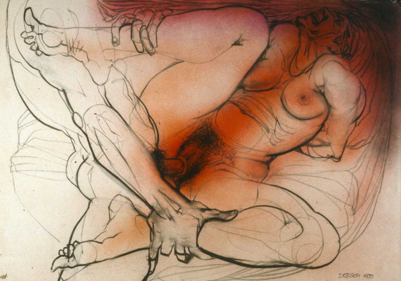 The veteran sex educator Betty Dodson was well known for her pioneering sex-positive workshops and many television appearances, but was less acknowledged and appreciated as a talented and pioneering artist and illustrator. Originally from Kansas, she trained as an artist in New York, which was her home from the early 1960s; her first exhibition of erotic art was shown at the Wickersham Gallery in 1968. Though art became relatively less significant as her personal and group exploration of sexuality grew increasingly important, her creative skills were always central to her work.