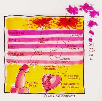 In her last years Betty Dodson’s creative skills were focused on material for experiential workshops, including cartoons and posters, many of which can be seen on the website she ran with her business partner, ex-corporate lawyer Carlin Ross.