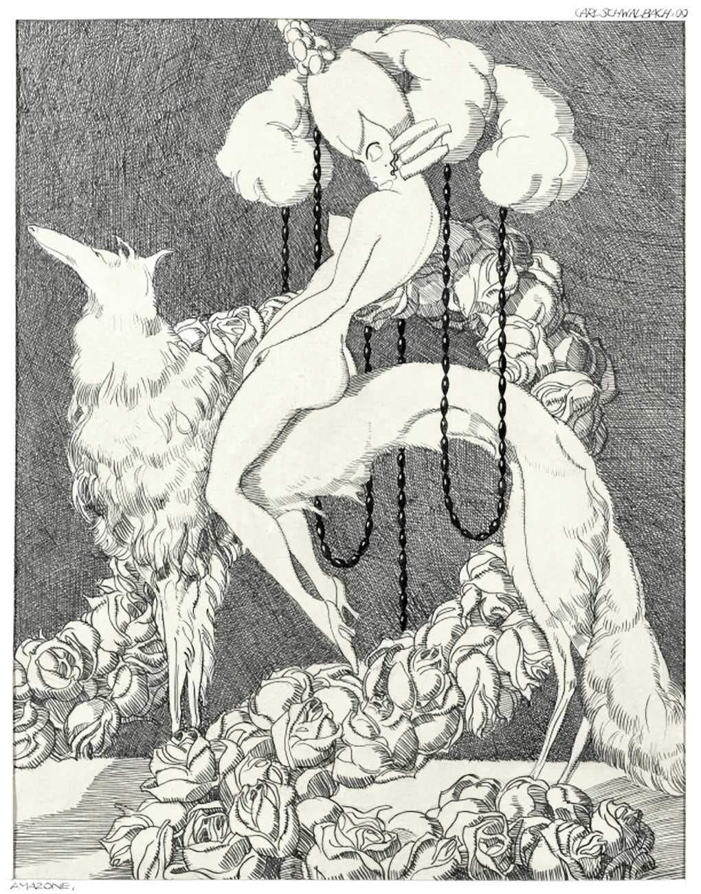 Of the eight artists who were founding members of Sema, Carl Schwalbach was in distinguished company, the others being Karl Caspar, Maria Caspar-Filser, Paul Klee, Alfred Kubin, Max Oppenheimer, Edwin Scharff and Paul Ludwig Troost. Sema’s first exhibition was held in April 1912 in the Heinrich Thannhauser Gallery, and a second followed in January 1913 in the Mannheimer Kunstverein. At the time of the Munich exhibition, the group produced a portfolio of fifteen lithographs by the participating artists, which was published by Delphin Verlag Munich.
