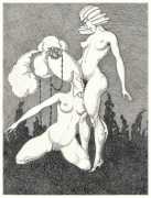 At the same time as being part of Sema, Klee and Kubin were also part of the avant garde expressionist Blaue Reiter group, whose bold new ideas quickly eclipsed the more symbolic and spiritual artwork of Sema. Being more of a traditionalist than an experimenter, Schwalbach settled into a comfortable career of painting large set pieces, which were regularly exhibited in Munich Galleries. He continued to contribute new paintings to the Secession exhibitions at the Munich Haus der Kunst until 1966.