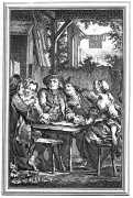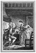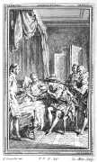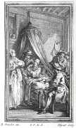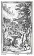 Eisen became best known for his book illustrations, including those for Thompson’s Les saisons (The Seasons, 1759), for the Poémes of Jean-Baptiste Joseph Willart de Grécourt (1761), and for Jean-Jacques Rousseau’s Émile (1762). The Contes et nouvelles en vers par M de la Fontaine (The Tales and Verses of La Fontaine, 1762), printed by Barbou, has long been considered one of the most successful books of the eighteenth century, and includes some of Eisen’s best-known etchings.