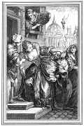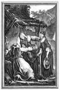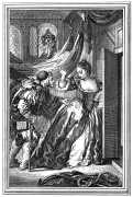After marrying Anne Aubert, the daughter of a master apothecary and thirteen years his senior, he began to earn his living by composing and engraving religious subjects in the style of Boucher. At the Académie de Saint-Luc, of which he was a member, Eisen sent paintings to each of the seven exhibitions it organized from 1751 to 1774.