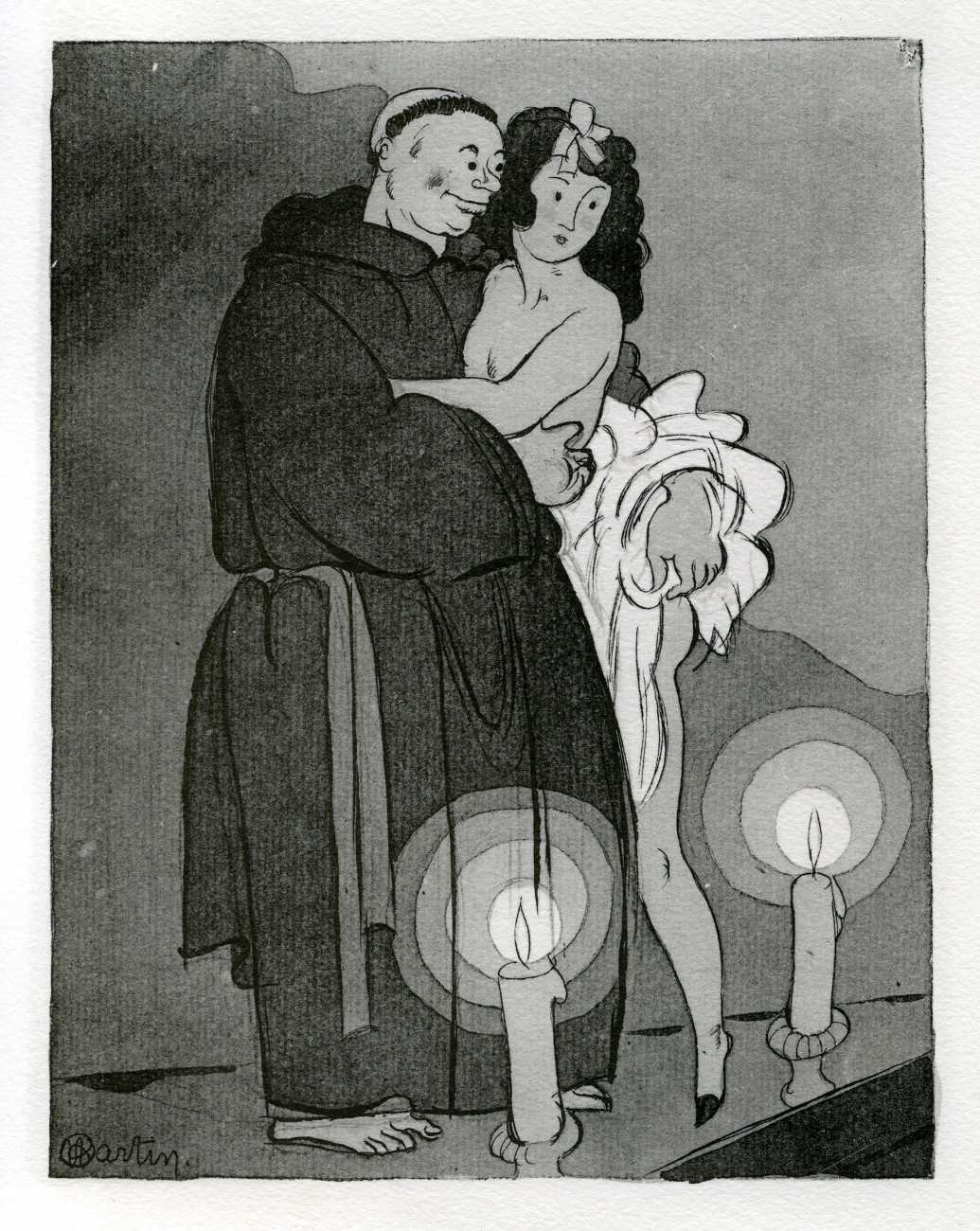 Martin’s first book illustrations also appeared in 1919, illustrating his own poetic memoir of his experiences as a soldier in the First World War; Sous les pots de fleurs (Under the Flowerpots), with an introduction by Mac Orlan, demonstrates that he already had a mature design sense coupled with a wry wit.