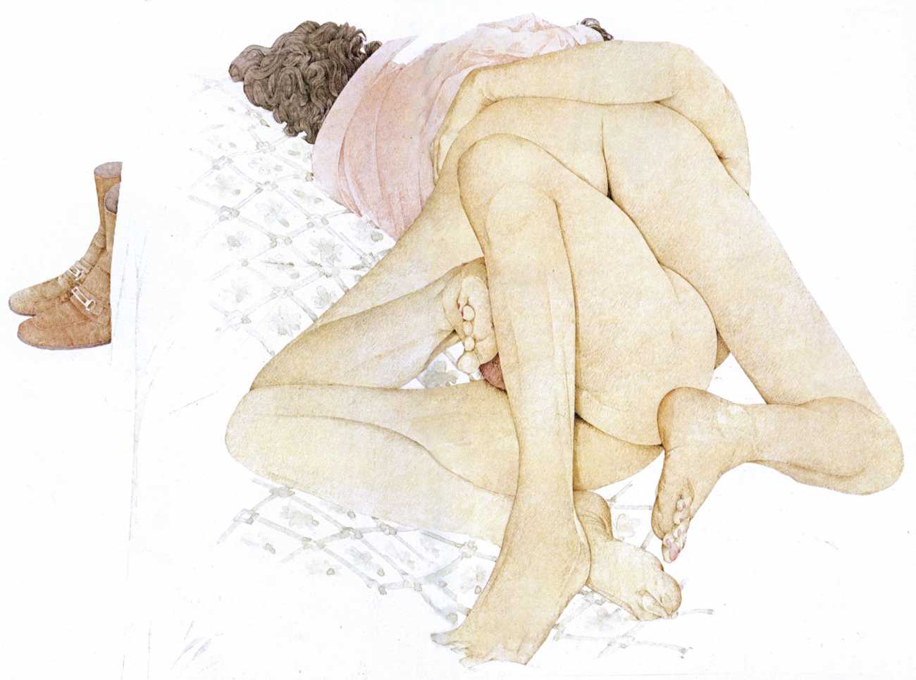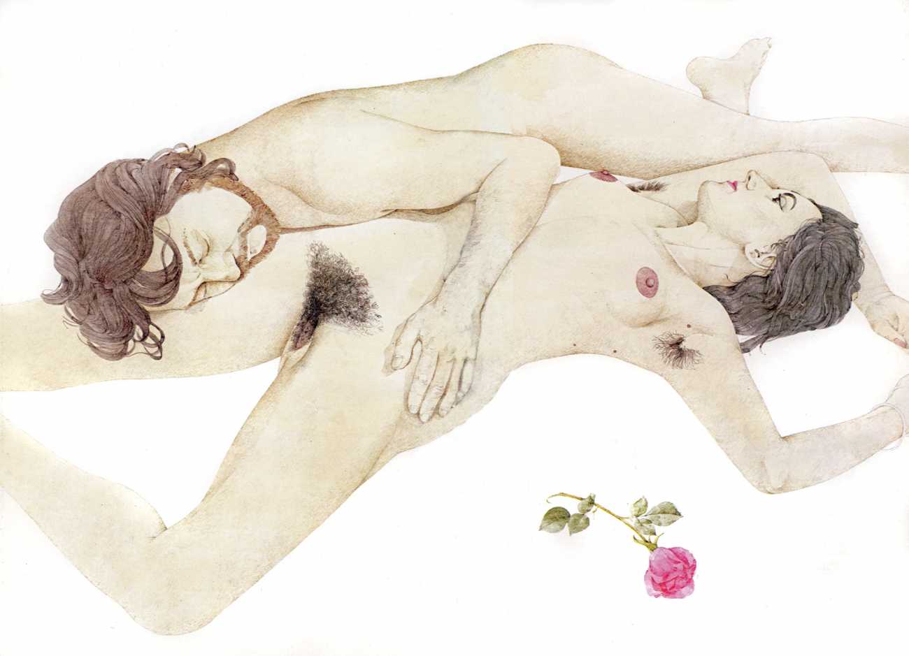 There were originally two illustrators working on The Joy of Sex – Charles Raymond did the colour drawings of a couple making love, while Chris Foss drew the more technical black-and-white illustrations of positions and techniques.
