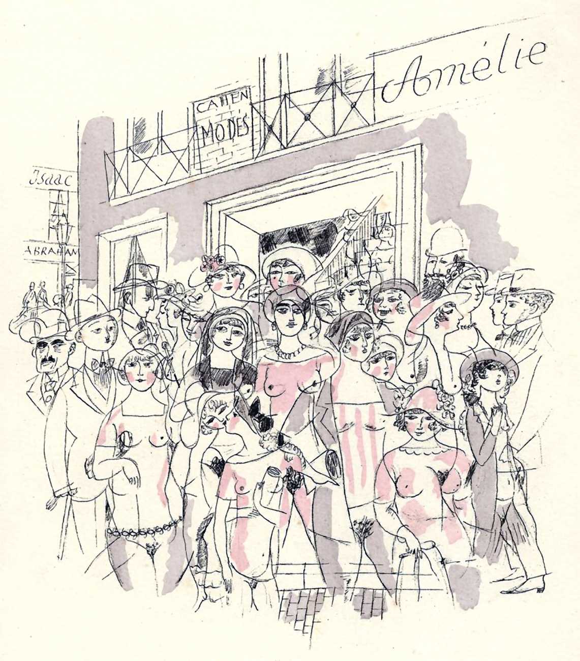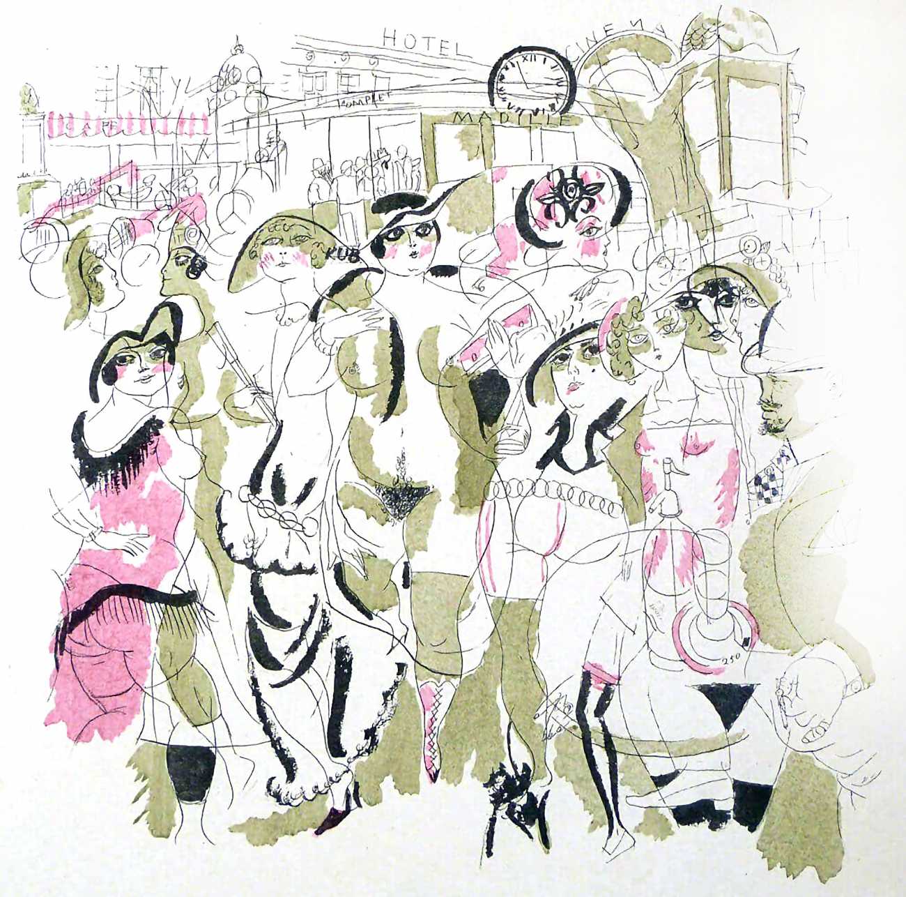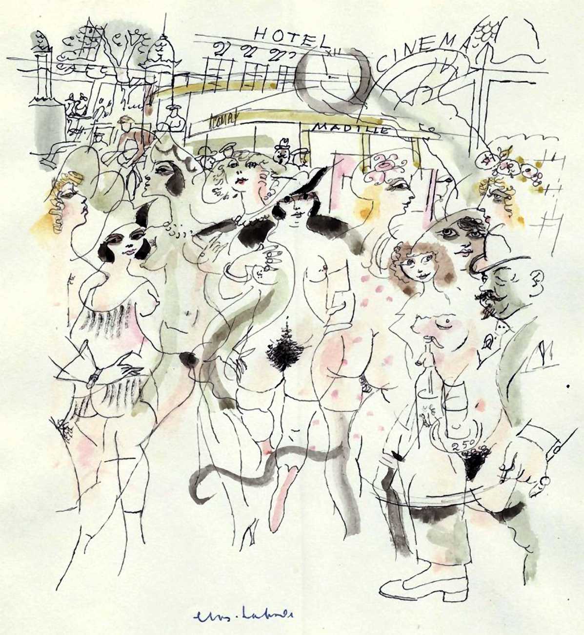 By 1923, when La Renaissance du Livre, under the art direction of Mac Orlan, commissioned Laborde to illustrate L’inflation sentimentale, Laborde was firmly established as an illustrator. By 1930 he had illustrated more than thirty books, including Paris Street Scenes (1926), London Street Scenes (1928) and Berlin Street Scenes (1930), capturing both the beautiful and the ugly, the chaste and the vulgar, the humorous and the ominous.