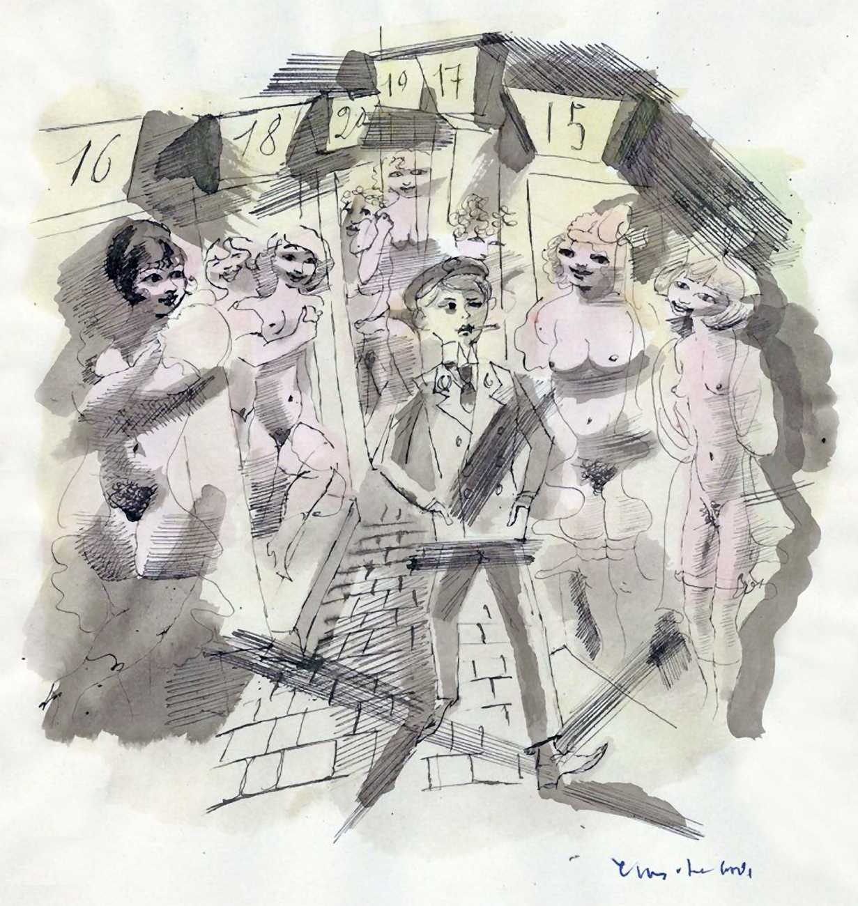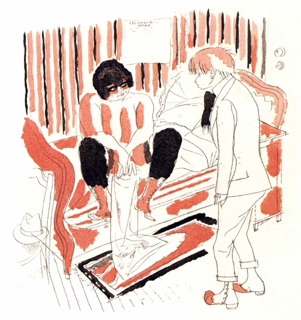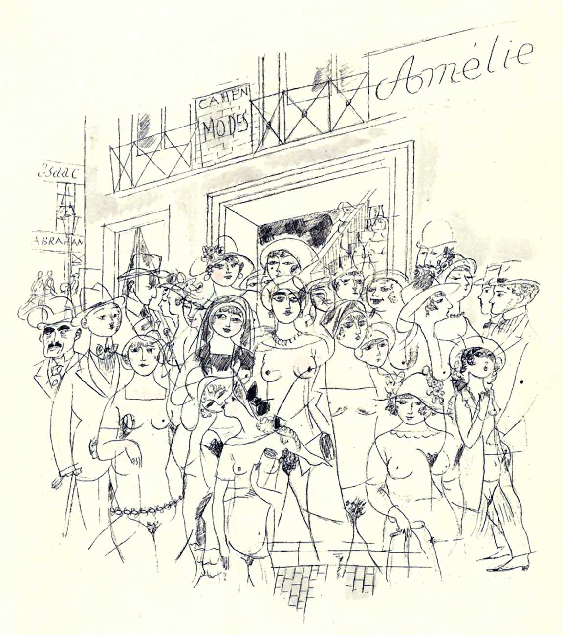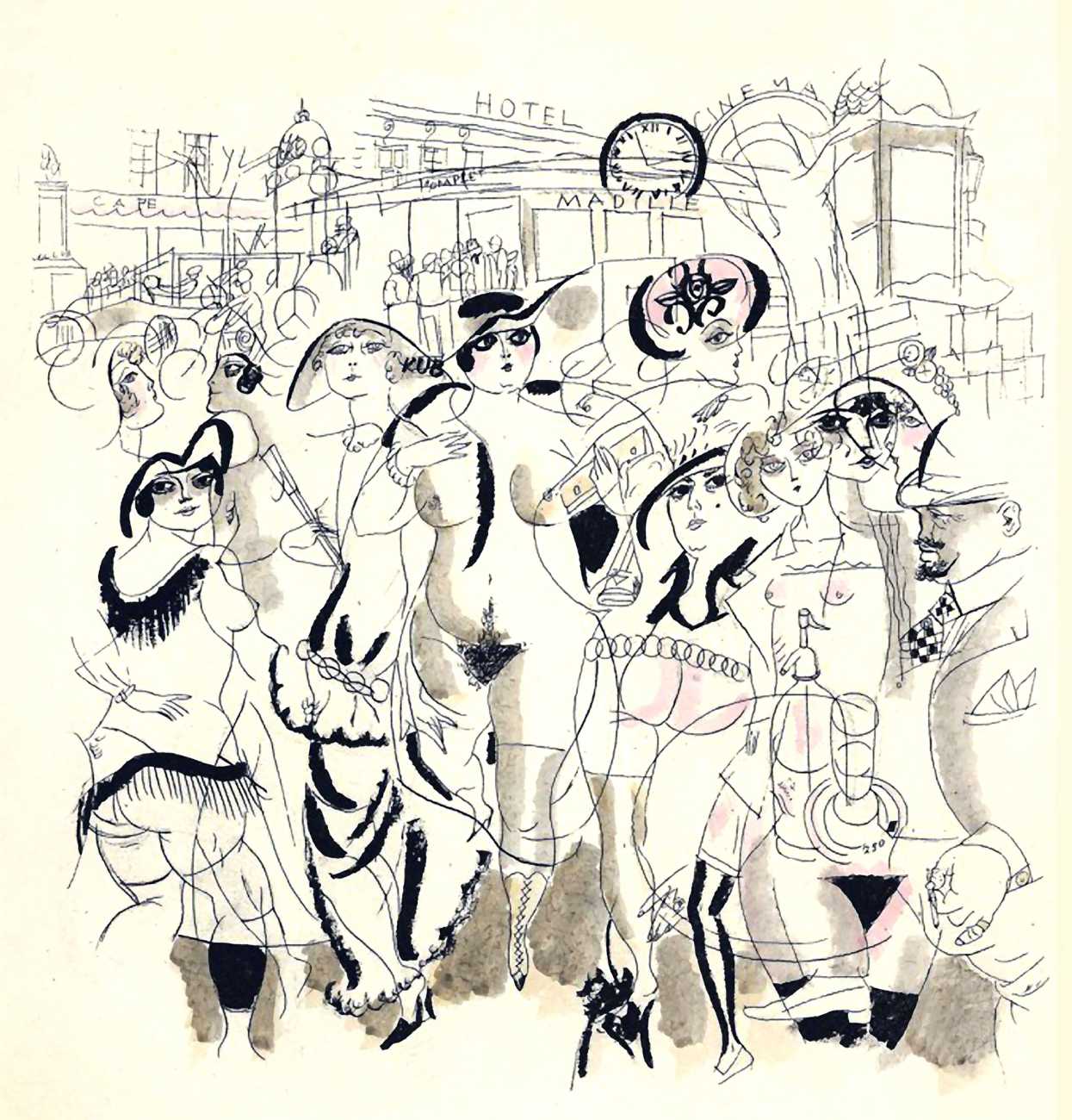 By 1923, when La Renaissance du Livre, under the art direction of Mac Orlan, commissioned Laborde to illustrate L’inflation sentimentale, Laborde was firmly established as an illustrator. By 1930 he had illustrated more than thirty books, including Paris Street Scenes (1926), London Street Scenes (1928) and Berlin Street Scenes (1930), capturing both the beautiful and the ugly, the chaste and the vulgar, the humorous and the ominous.