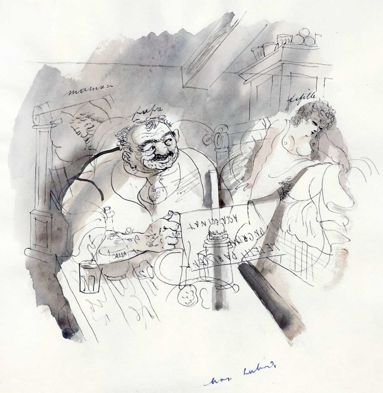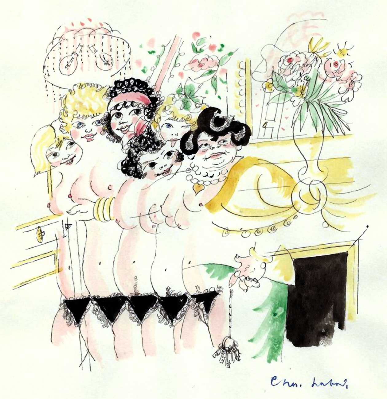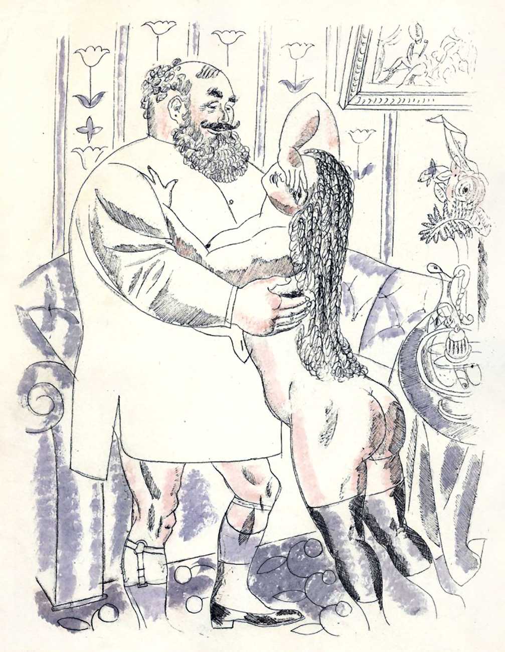 At twenty-one Laborde chose to become a French citizen, and when the First World War broke out he volunteered for the army; his war ended after a gas attack in the spring of 1917. When the war ended Laborde continued to work for satirical magazines. Contributing to Le Rire Rouge and La Baïonnette, his speciality was drawing the prostitutes and brothels of Montmartre. ‘L’amie des filles’ as Carco called him, Laborde often went out of his way to help these young women, acting as witness in their defence in court, lending them money and paying their debts. When Bofa established Le Salon de l’Araignée (The Spider’s Parlour) in 1920 to support graphic artists who had fought in the war, he arranged for Laborde’s drawings to be exhibited, and the newly-established publishing house La Banderole opened the door to book illustration. In 1921 he was commissioned to illustrate Le Chat Maigre (The Scrawny Cat) by Anatole France, who had just been awarded the Nobel Prize.