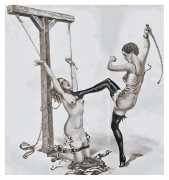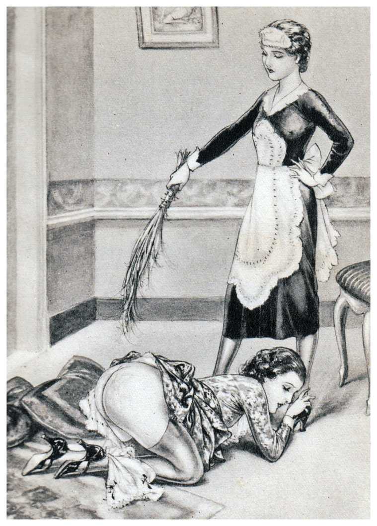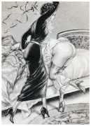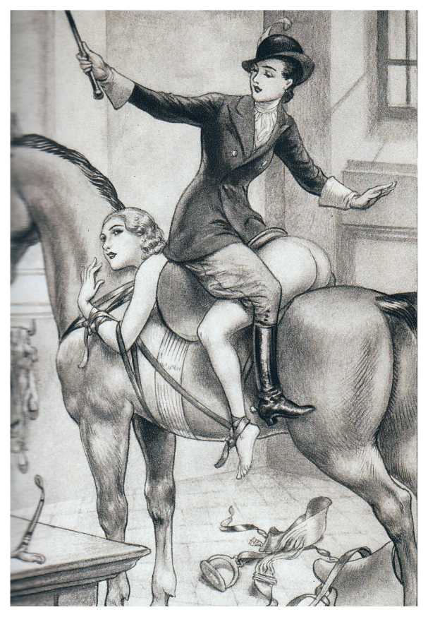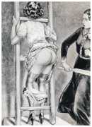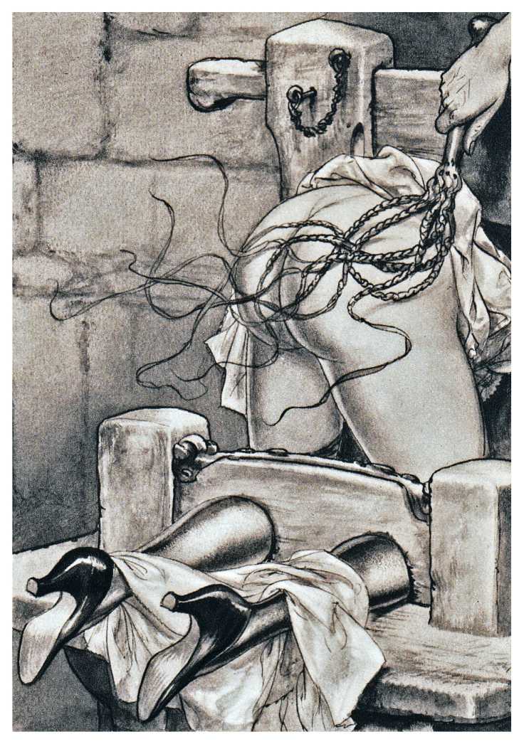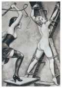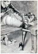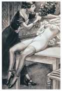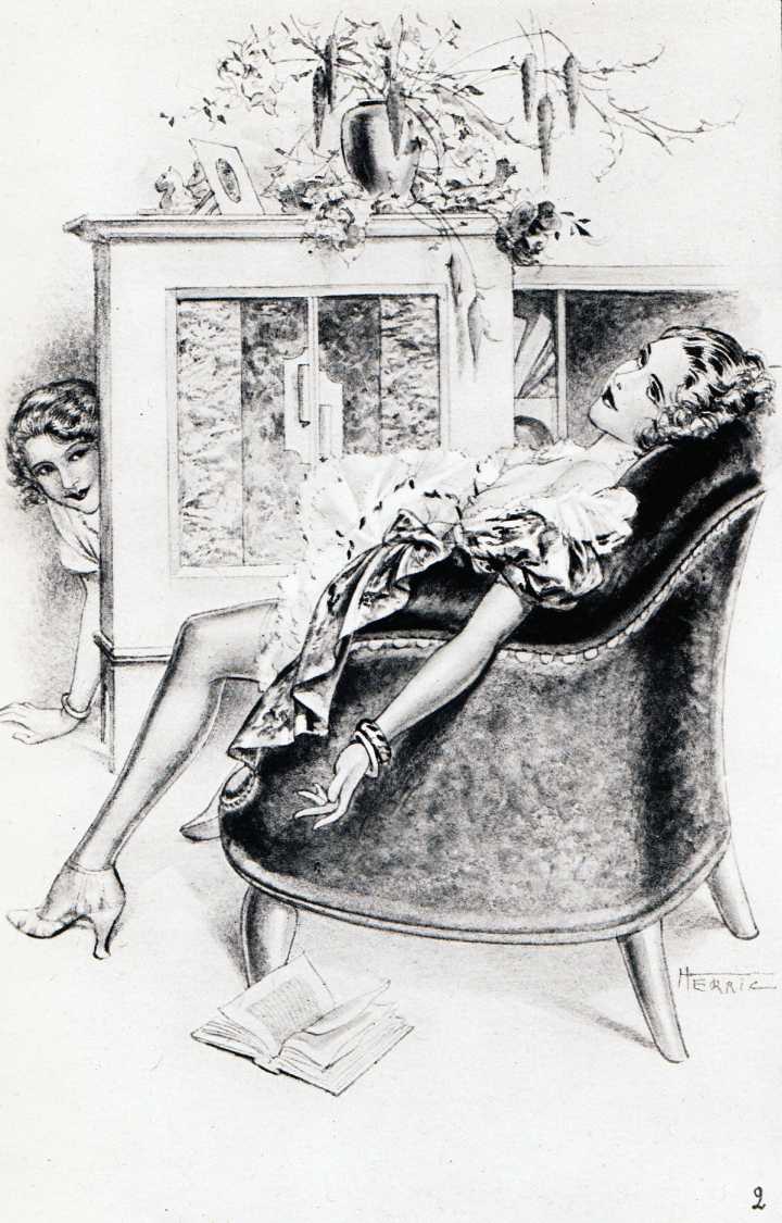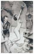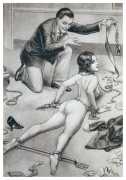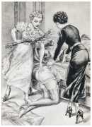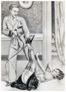 In 1923, for Jean Fort’s A l’Enseigne du Bon Vieux Temps, Hérouard drew illustrations for a rather tame history of women’s underwear called Leurs pantalons; comment elles les portent (Their Knickers; How they Wear Them), and as a result the newly-formed Éditions Prima commissioned illustrations for Jean Martinet’s spanking novel Matée par le fouet (Mastered by the Whip). To keep his transgressive commissions separate from his mainstream work Hérouard took the pseudonym Herric, and nearly all the work shown here used that nom de plume. A string of commissions followed, with Éditions Prima and Jean Fort’s Aux Galants Passe-temps competing for his favours. During the thirties he must have been working at such a pace that it was hard to keep up with both strands of his work, and as a result there is an inevitable sameness about much of it; maybe there is a limit to the number of suggestive scenes that even the most talented artist’s imagination can conceive! At the same time, Hérouard’s erotic illustrations underline the fact that a growing interest in fetishism, S&M, role-play and gender fluidity existed long before it was deemed widely fashionable.