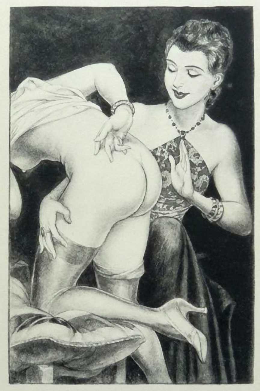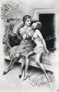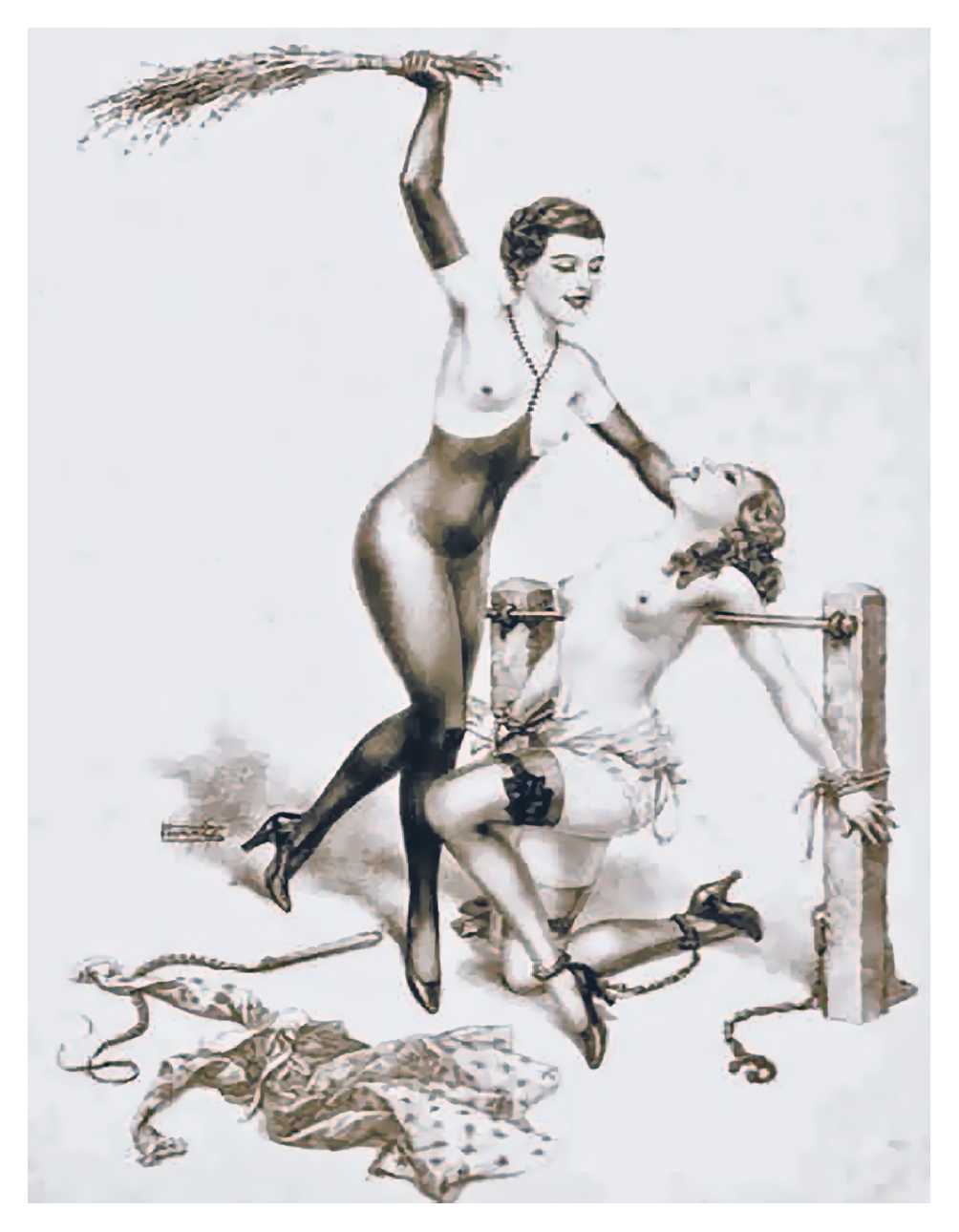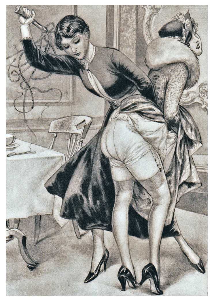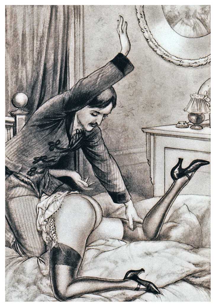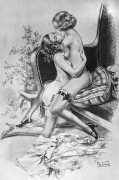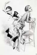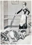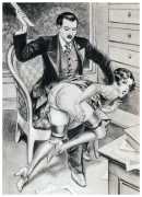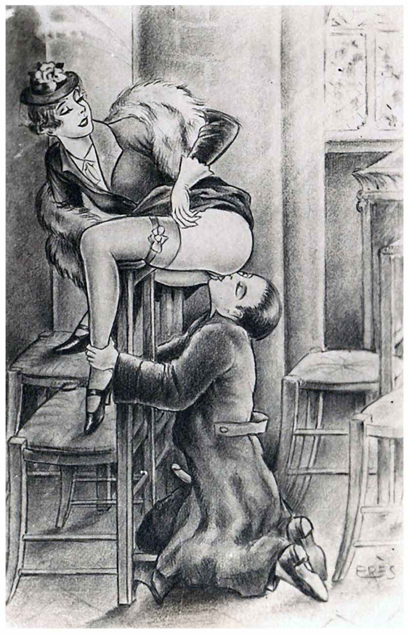Best known for his forty-five years’ distinctive art nouveau work for the French society magazine La vie Parisienne, Chéri Hérouard earns his place here as his doppelganger Herric, the name he used for an impressive number of erotic portfolios in the 1930s, combining the ever-popular themes of spanking and lacy knickers.