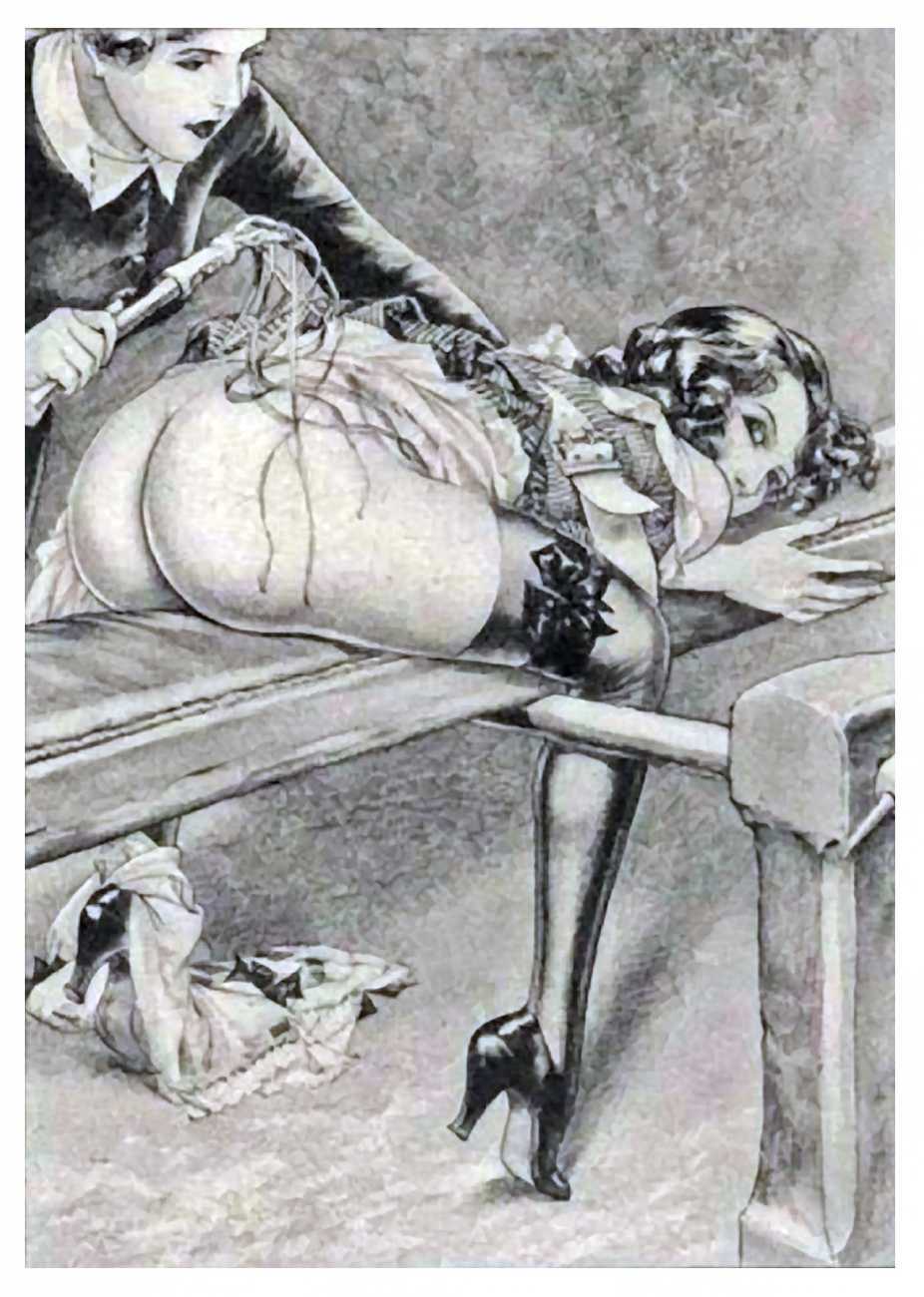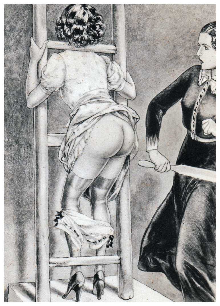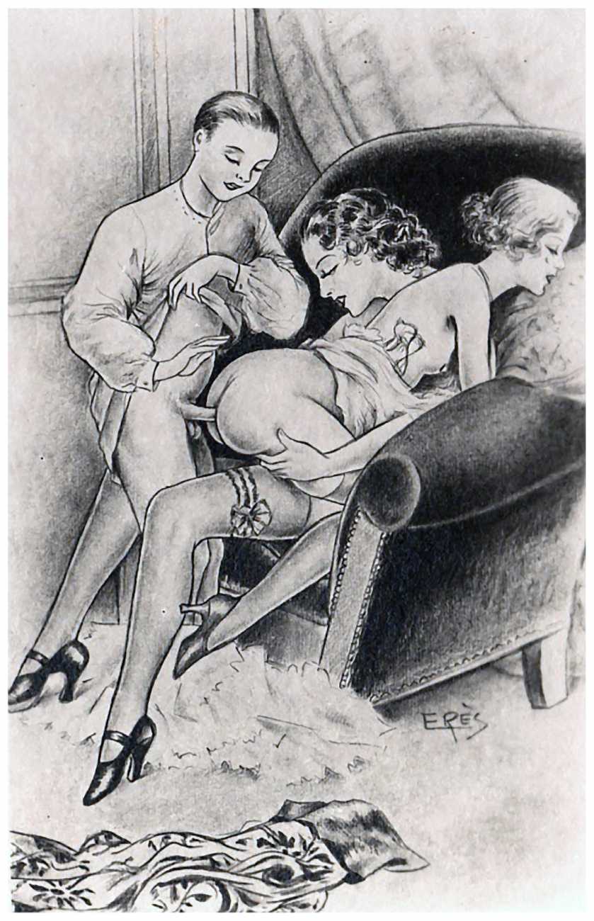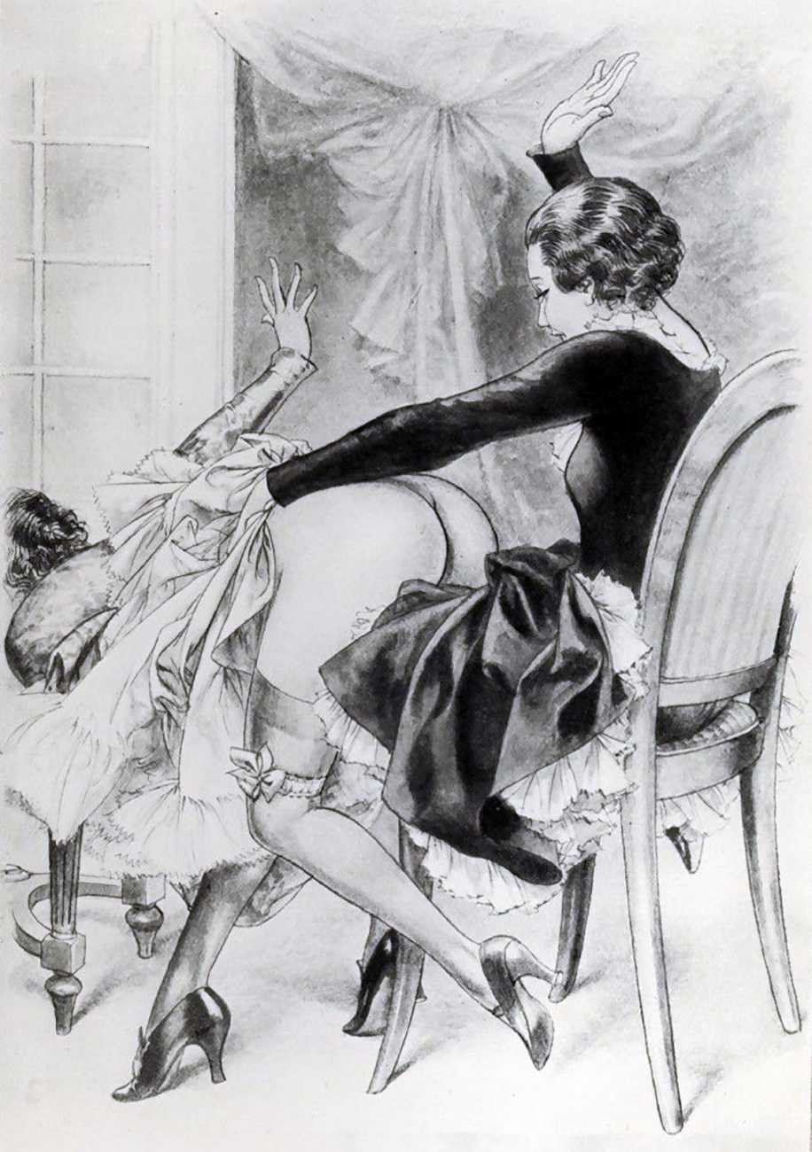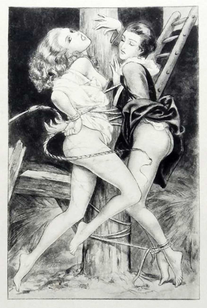 Best known for his forty-five years’ distinctive art nouveau work for the French society magazine La vie Parisienne, Chéri Hérouard earns his place here as his doppelganger Herric, the name he used for an impressive number of erotic portfolios in the 1930s, combining the ever-popular themes of spanking and lacy knickers.