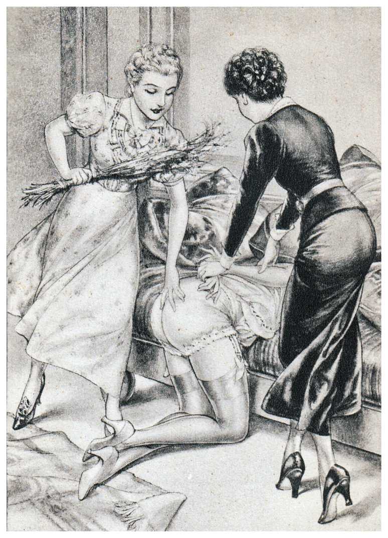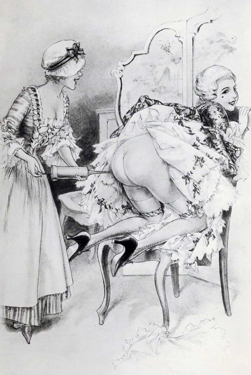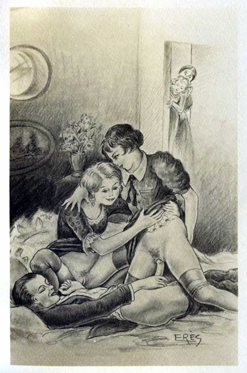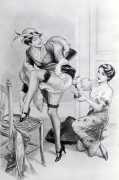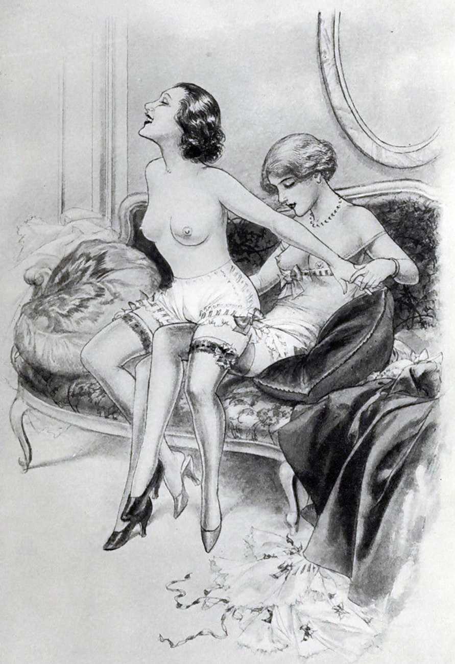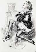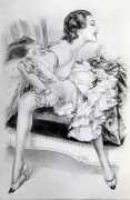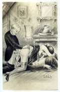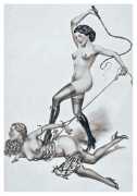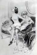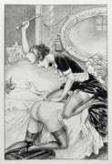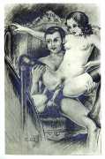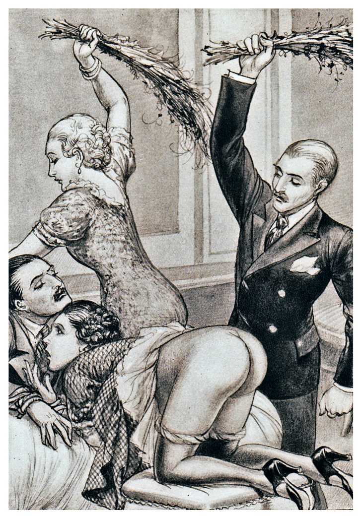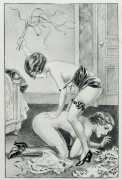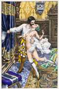 Best known for his forty-five years’ distinctive art nouveau work for the French society magazine La vie Parisienne, Chéri Hérouard earns his place here as his doppelganger Herric, the name he used for an impressive number of erotic portfolios in the 1930s, combining the ever-popular themes of spanking and lacy knickers.