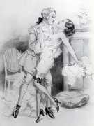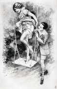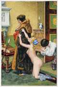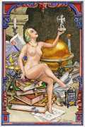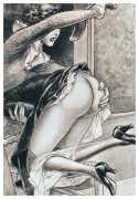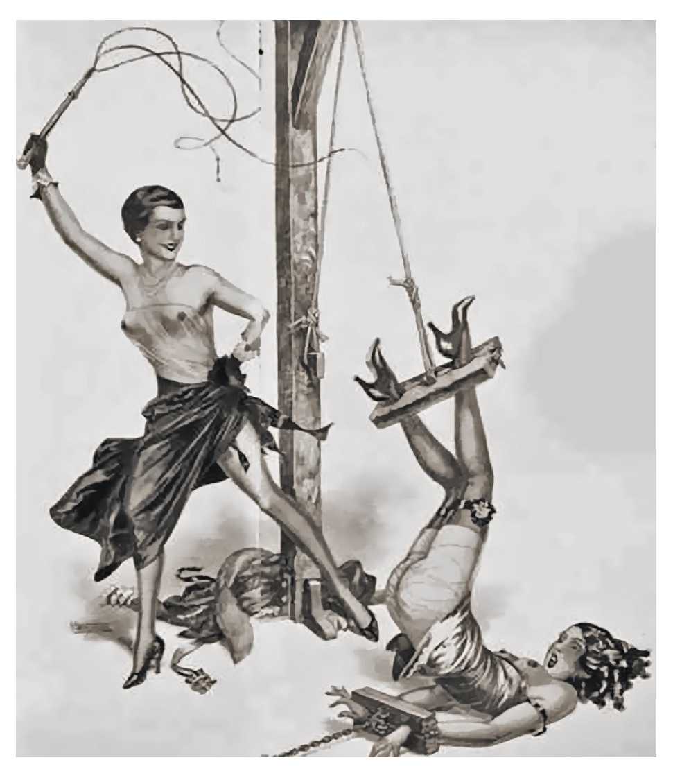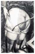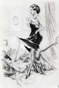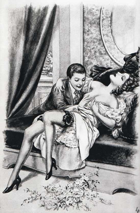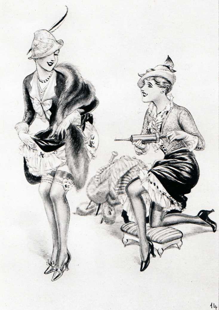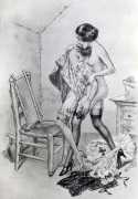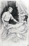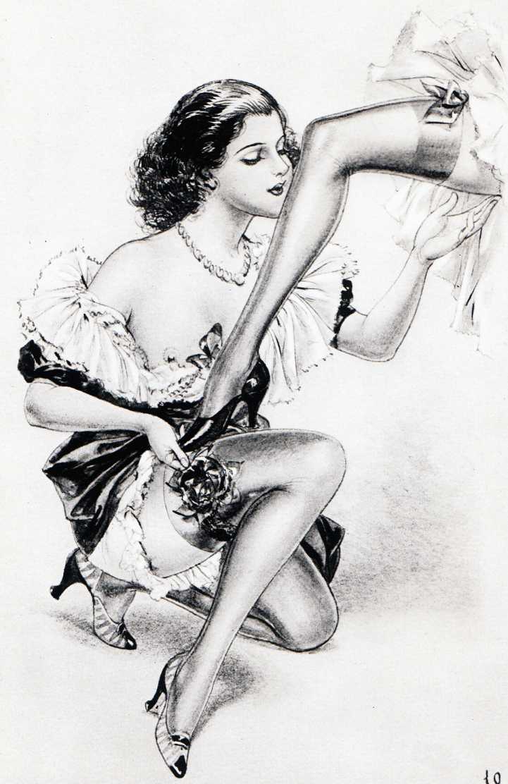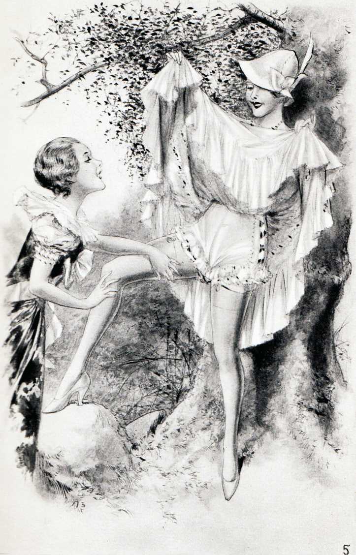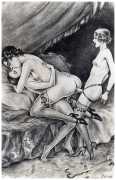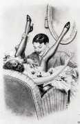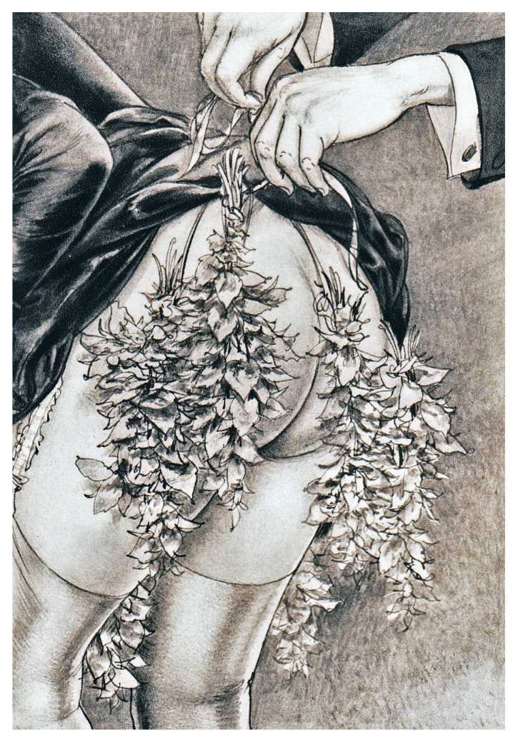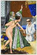 Best known for his forty-five years’ distinctive art nouveau work for the French society magazine La vie Parisienne, Chéri Hérouard earns his place here as his doppelganger Herric, the name he used for an impressive number of erotic portfolios in the 1930s, combining the ever-popular themes of spanking and lacy knickers.
