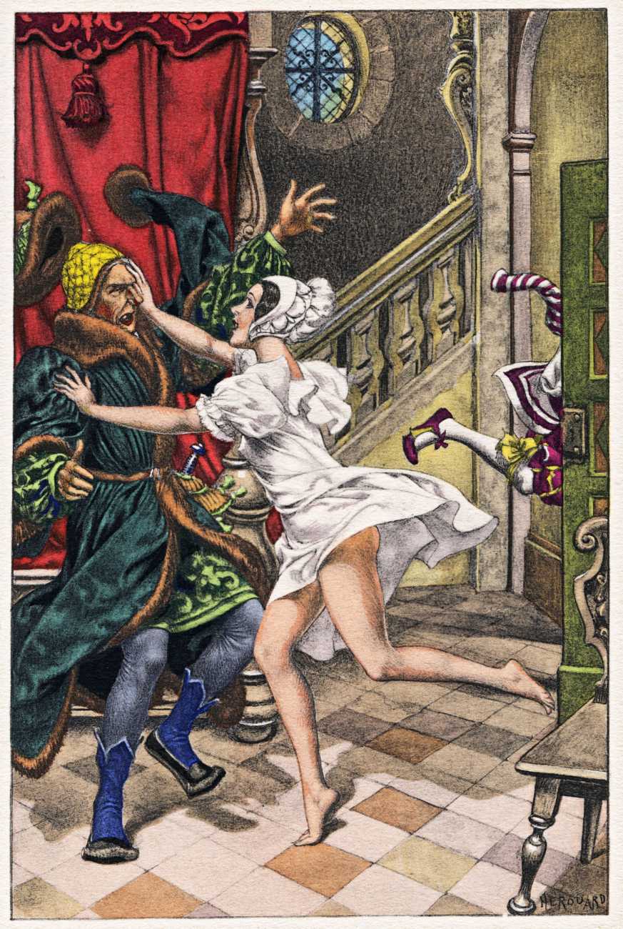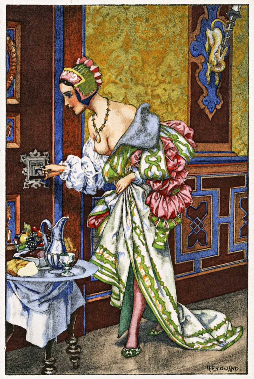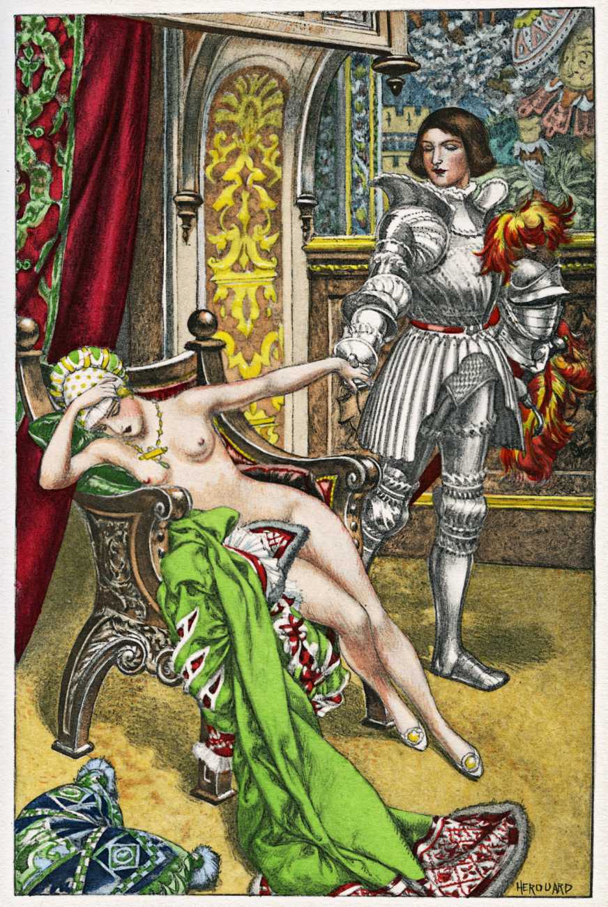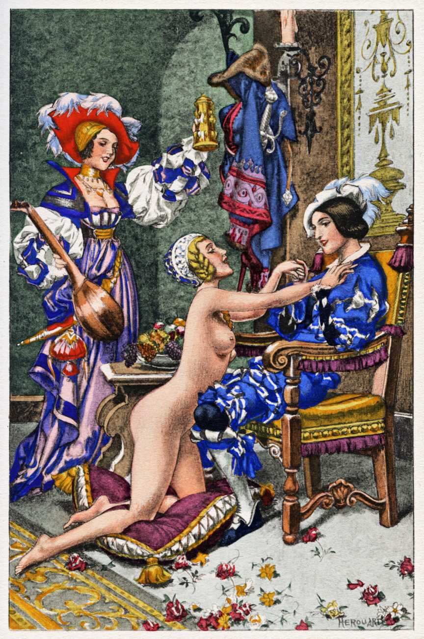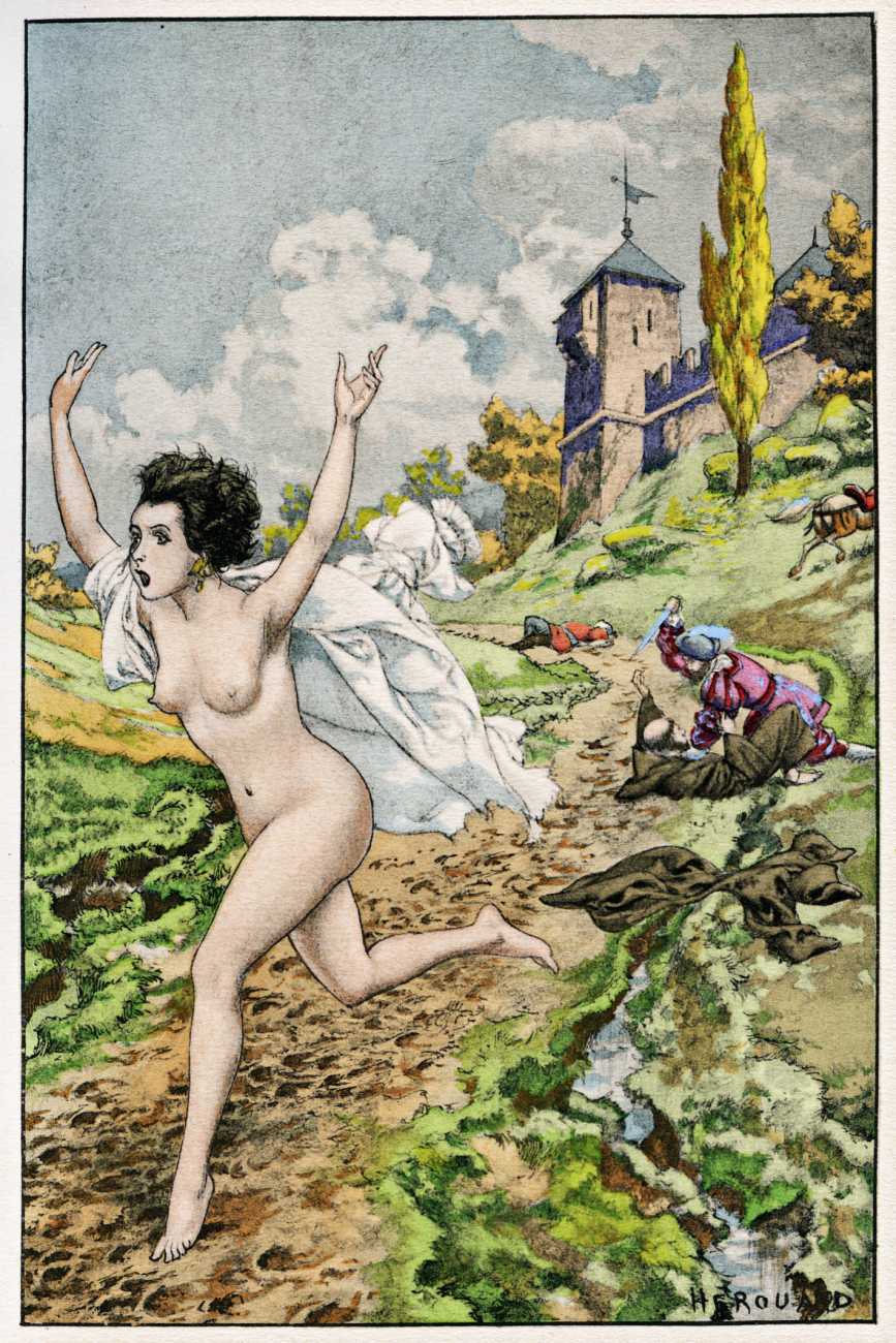 Hérouard was born Chéri-Louis-Marie-Aime Haumé into a well-to-do family in Rocroi in the Ardennes district of France. His father died from a freak riding accident just days before his birth, and his mother remarried into the Hérouard family, from whom Chéri took his surname. His mother and stepfather thought Chéri was best suited for a career in the military, but their son had a very different idea – he wanted to be an artist. He submitted a portfolio of his work to the magazine Le Journal de la Jeunesse; the editor was so impressed by Hérouard’s draughtsmanship that he bought a selection of drawings, which were published in the magazine in 1902. Like most of his work, these drawings mixed fantasy and fetishism, and his distinctive style soon led to his being hired in 1907 as one of the main artists supplying work for the hugely popular magazine La Vie Parisienne.