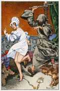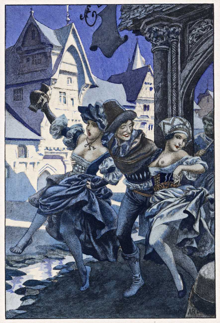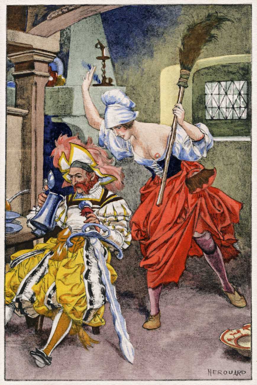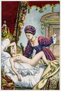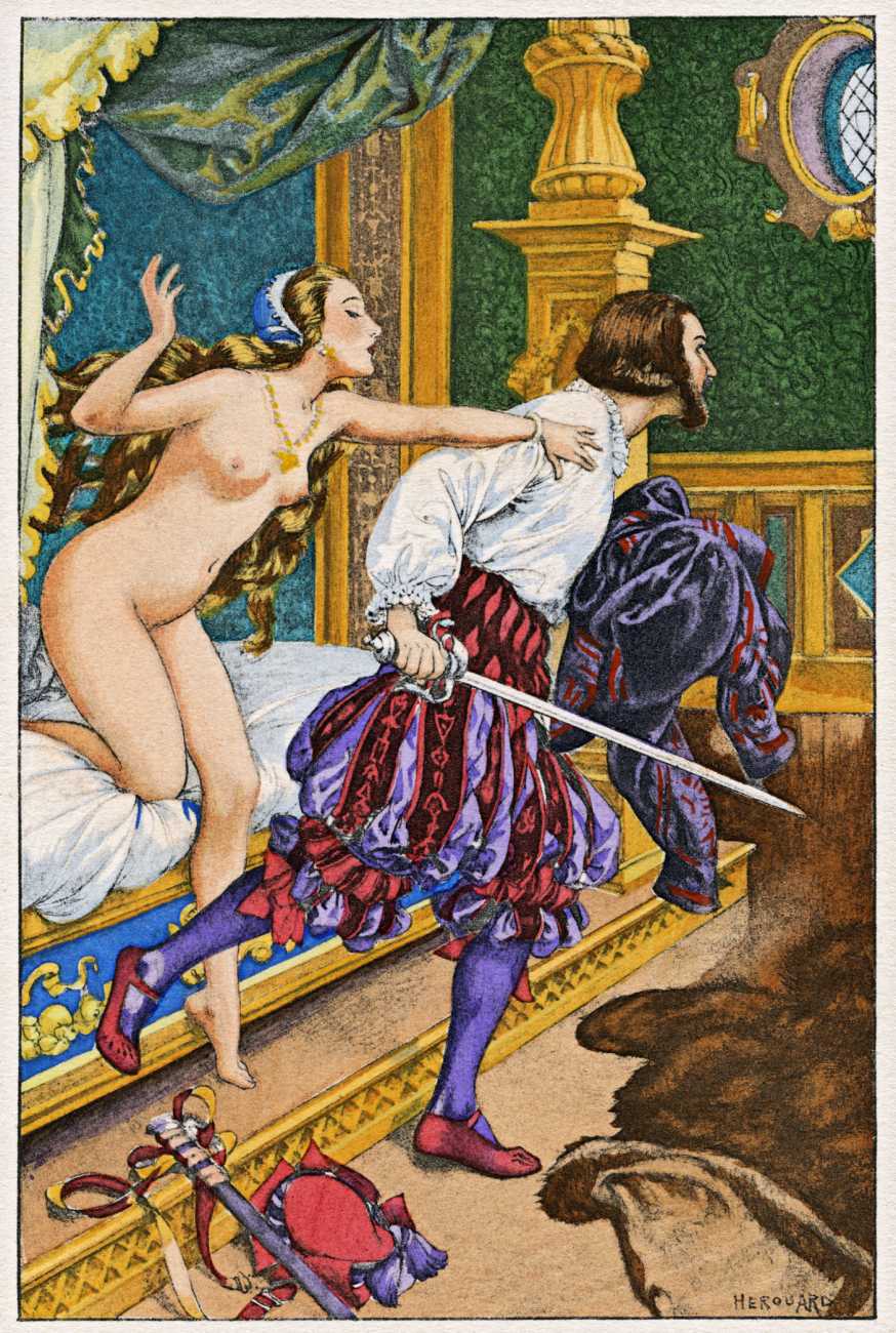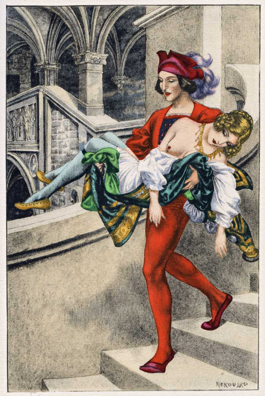 Hérouard was born Chéri-Louis-Marie-Aime Haumé into a well-to-do family in Rocroi in the Ardennes district of France. His father died from a freak riding accident just days before his birth, and his mother remarried into the Hérouard family, from whom Chéri took his surname. His mother and stepfather thought Chéri was best suited for a career in the military, but their son had a very different idea – he wanted to be an artist. He submitted a portfolio of his work to the magazine Le Journal de la Jeunesse; the editor was so impressed by Hérouard’s draughtsmanship that he bought a selection of drawings, which were published in the magazine in 1902. Like most of his work, these drawings mixed fantasy and fetishism, and his distinctive style soon led to his being hired in 1907 as one of the main artists supplying work for the hugely popular magazine La Vie Parisienne.