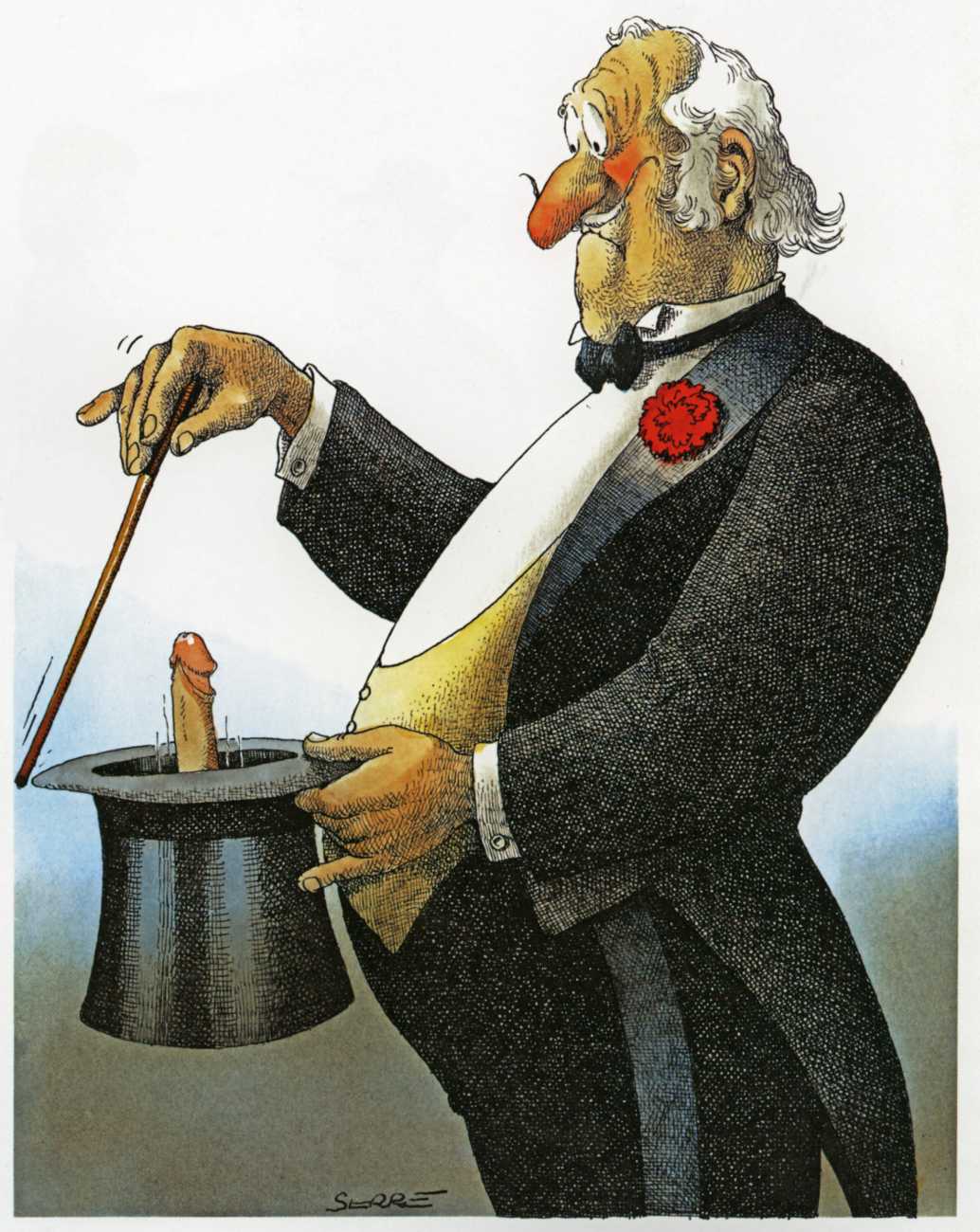 In 1969 he met the writer Jack Claude Nezat, and they became friends, working together on book projects and exhibitions. This relationship also allowed Serre to work with the magazine Pardon. Serre, meanwhile, continued to draw cartoons on such topics as medicine, sports, transport and DIY, and his first book of cartoons, Humour noir et hommes en blanc (Black Humour and Men in White), satirising medical professionals, was published in 1972 by Editions Grésivaudan; a series of books in the same vein were subsequently published by Glénat. He also continued to work as an illustrator, among others working on books by Francis Blanche and Frederic Dard, author of the San Antonio series.