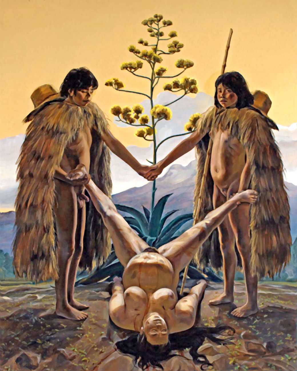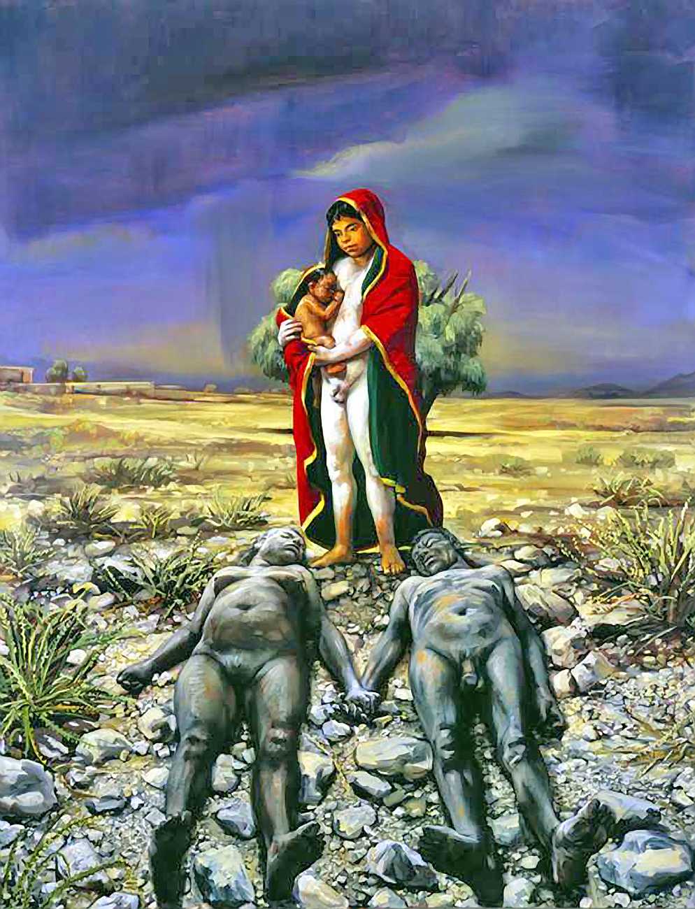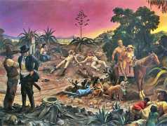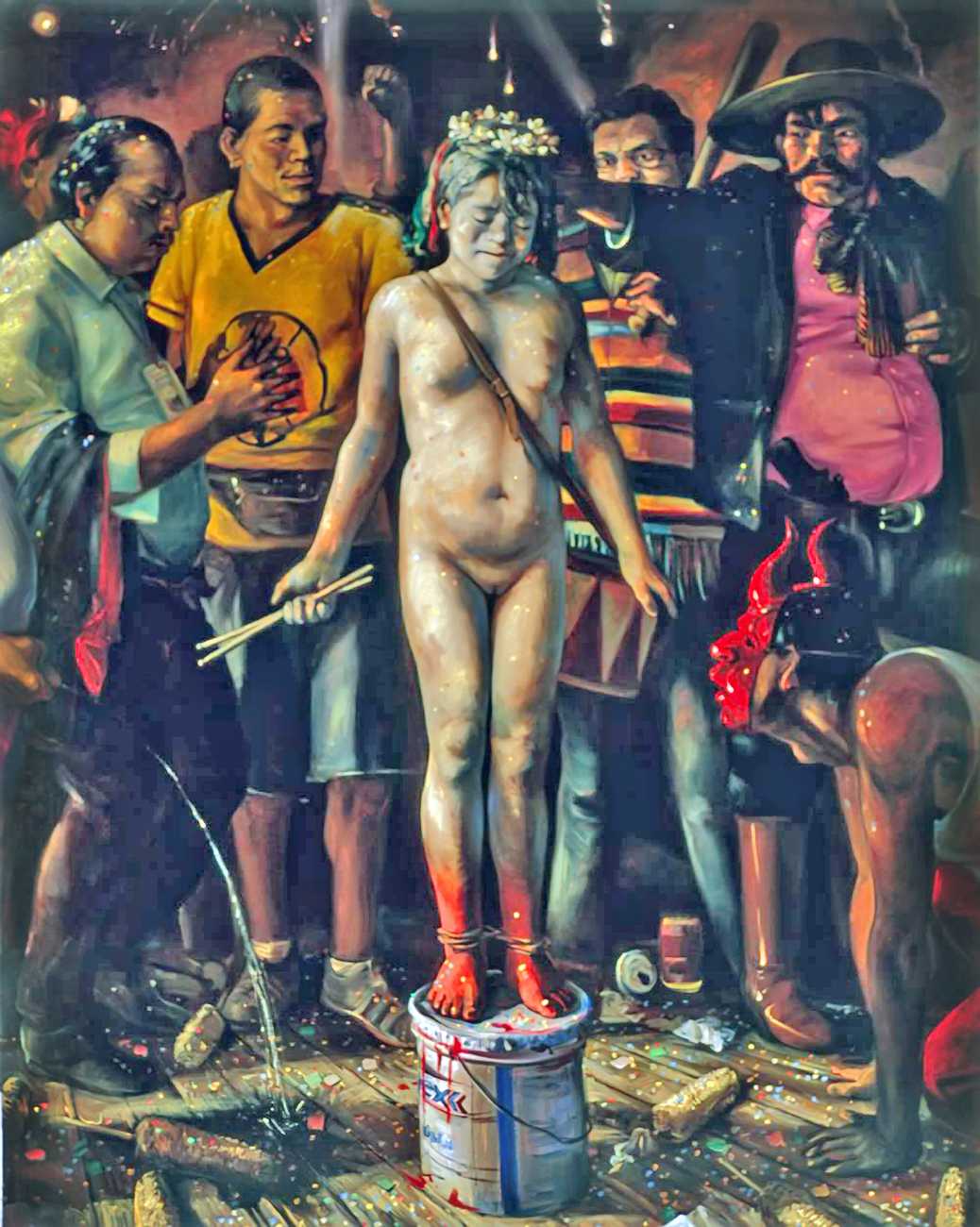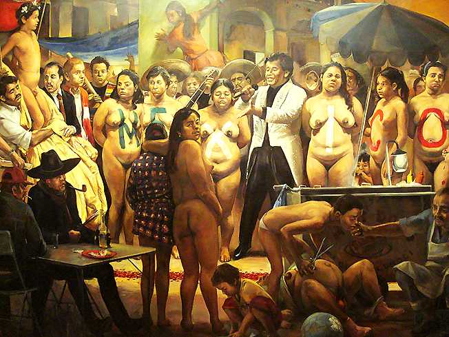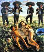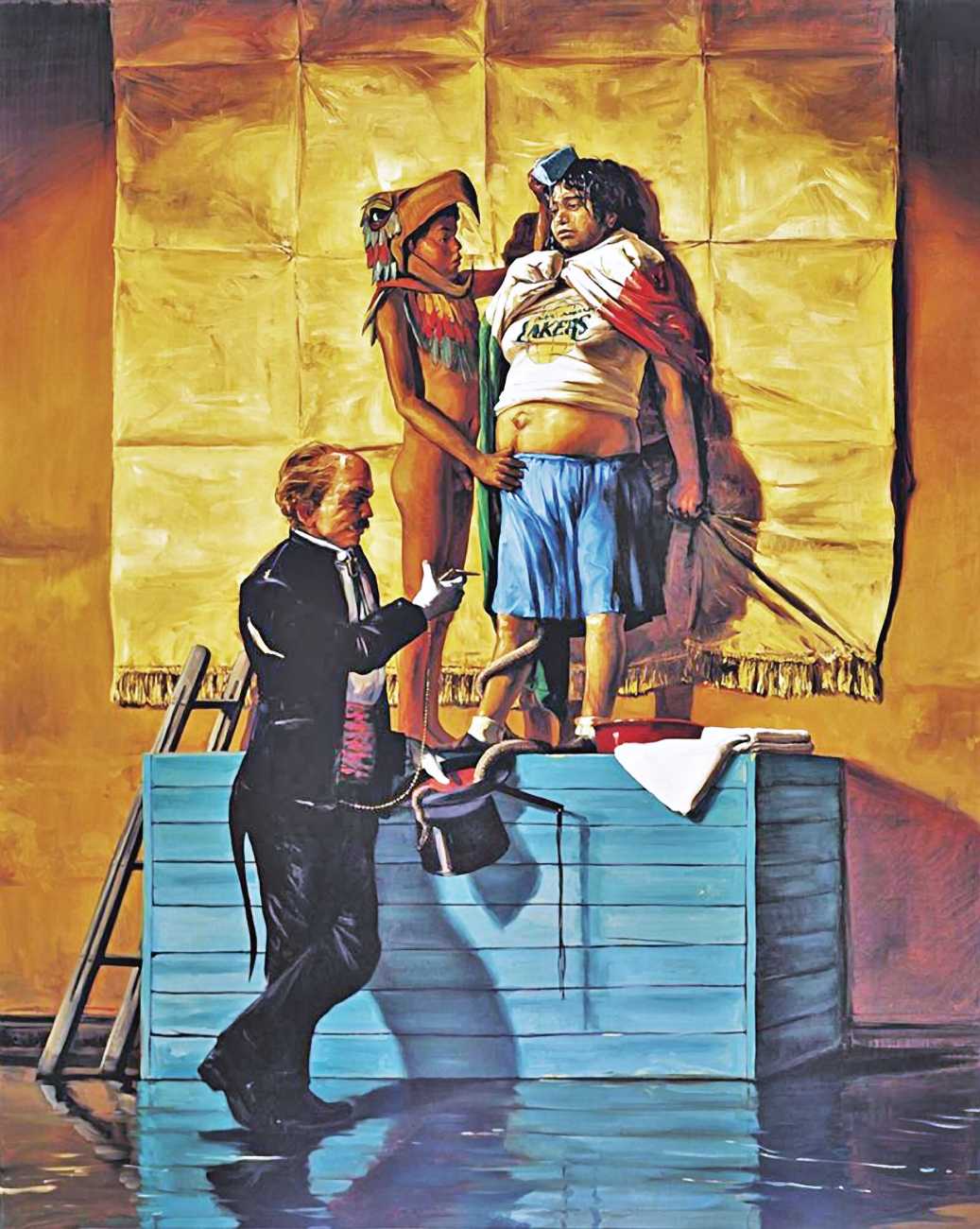 The Mexican artist Daniel Lezama is best known for his highly realistic, complex, and sometimes disturbing compositions of Mexican people in strange dream-like situations with strong symbolic meanings connected with Mexican history and traditions.