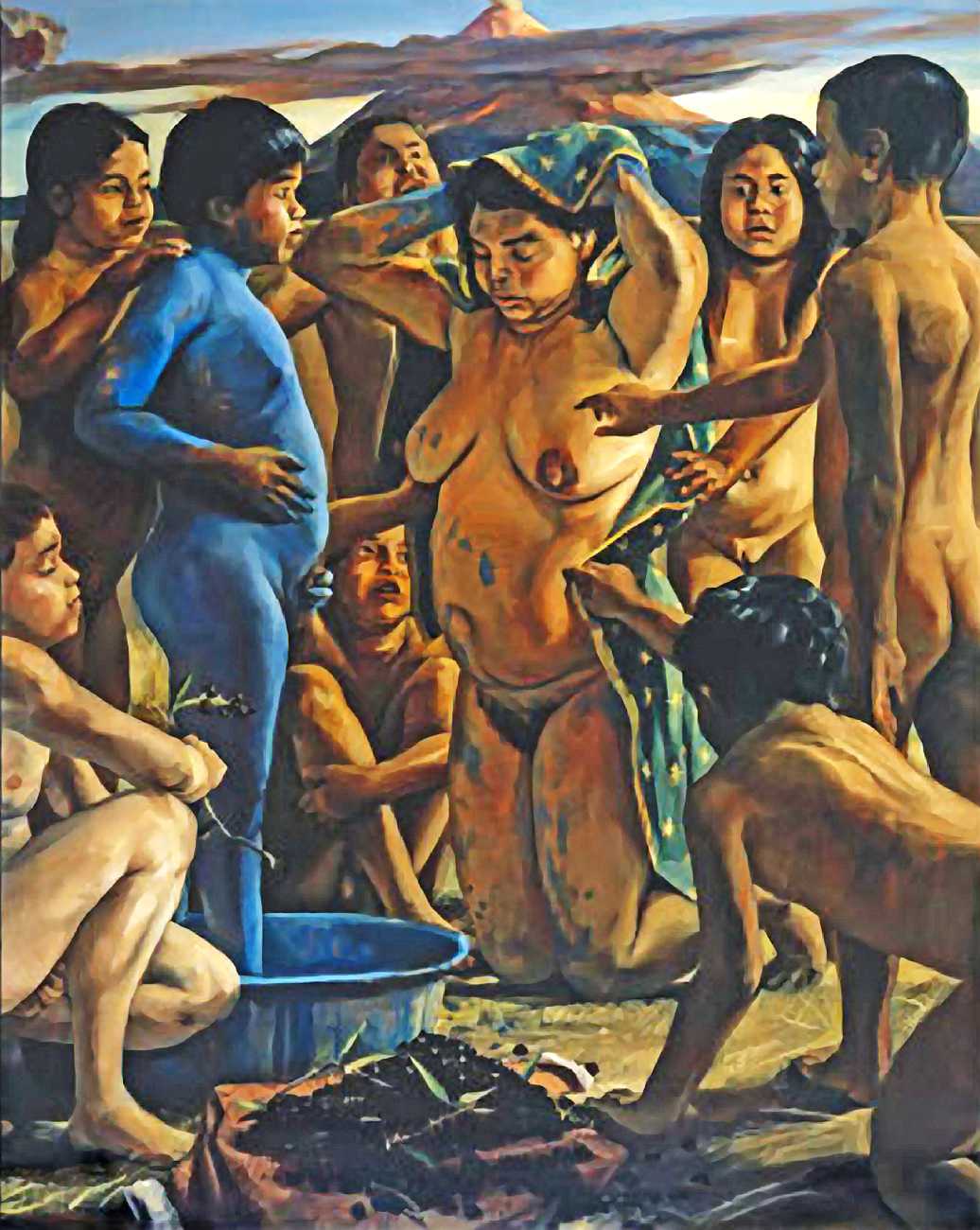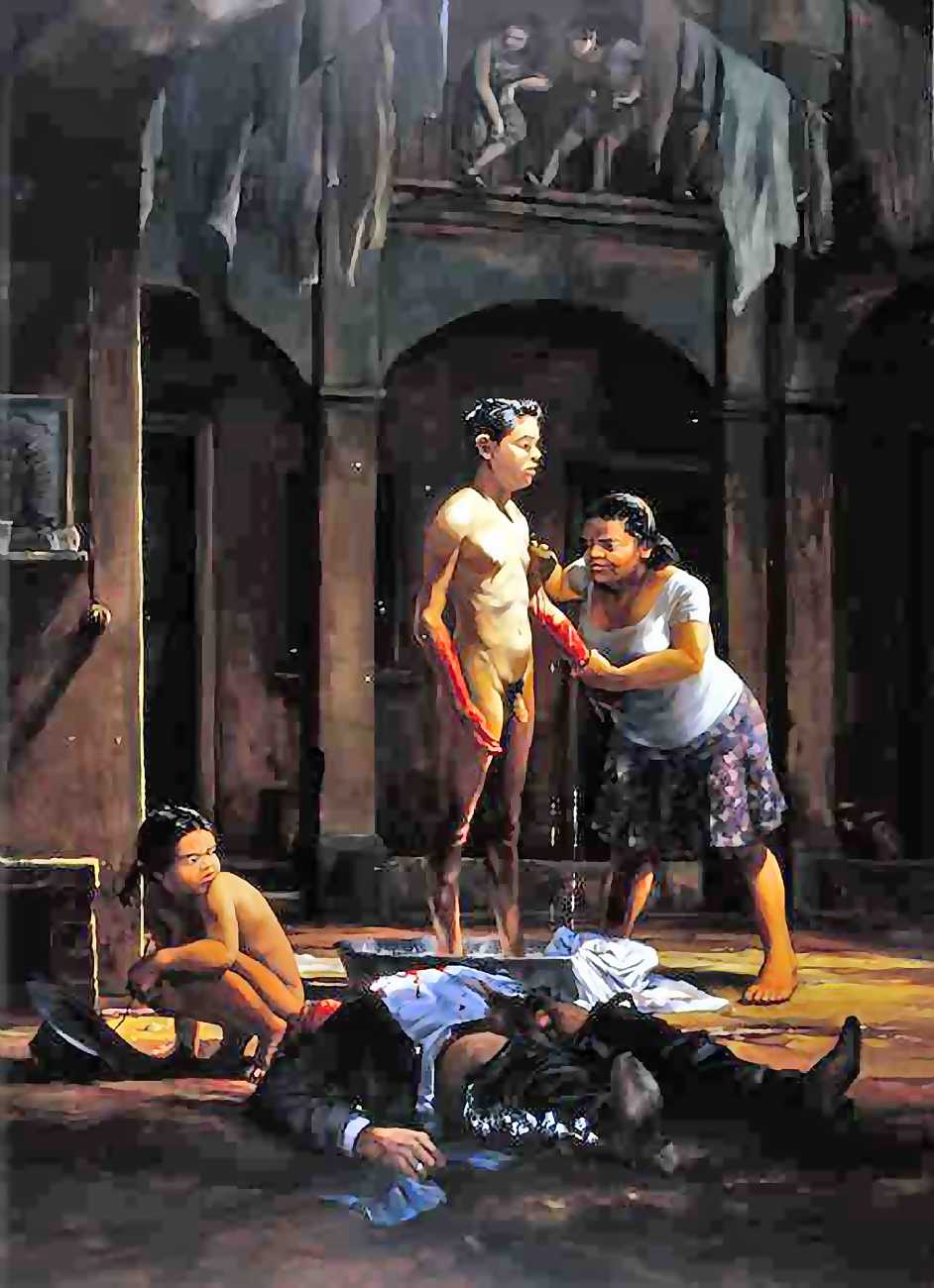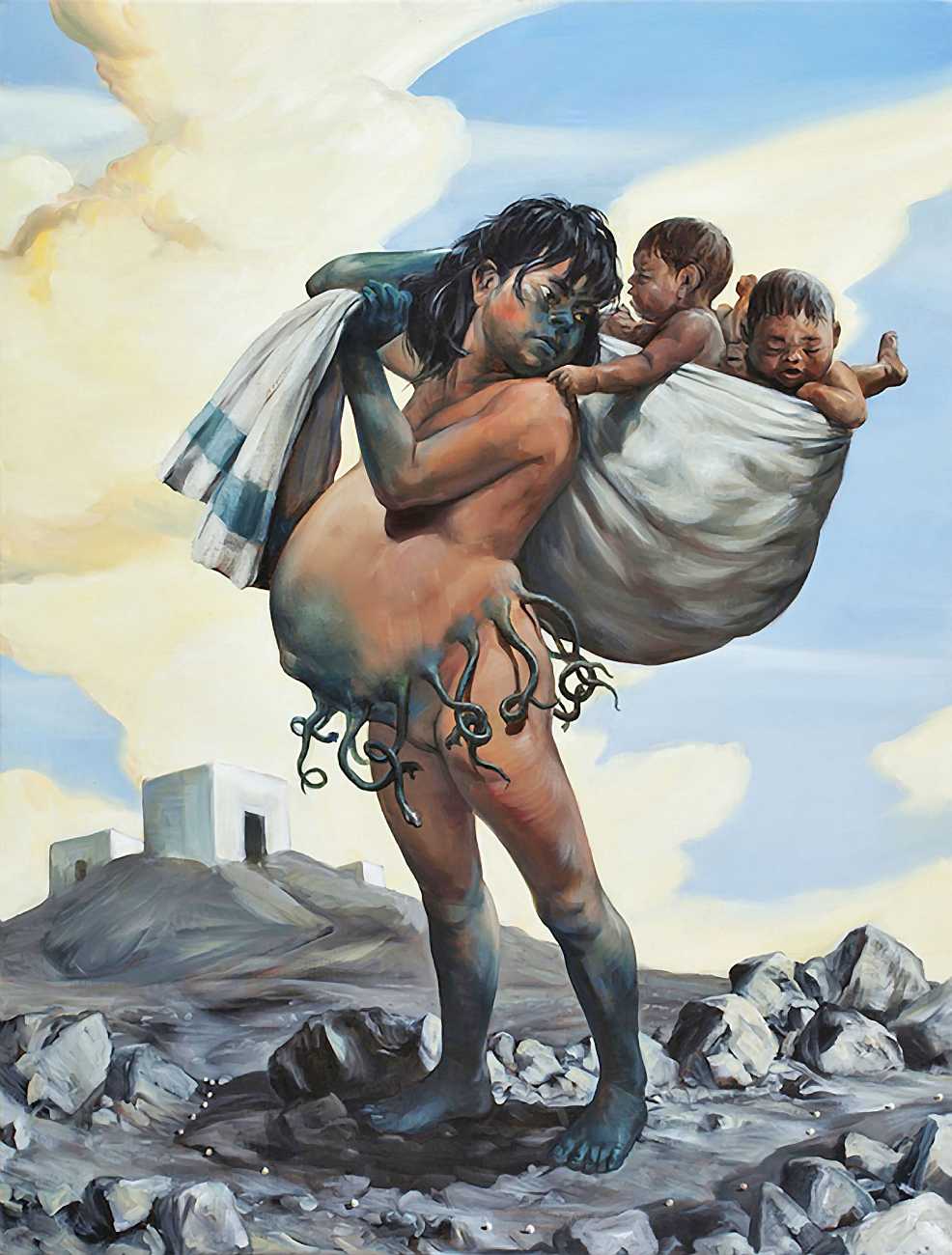 The Mexican artist Daniel Lezama is best known for his highly realistic, complex, and sometimes disturbing compositions of Mexican people in strange dream-like situations with strong symbolic meanings connected with Mexican history and traditions.