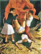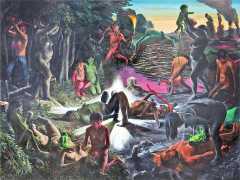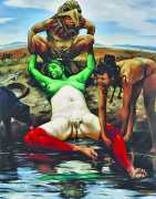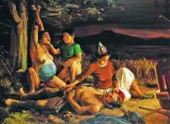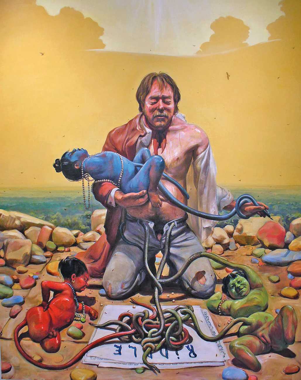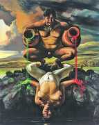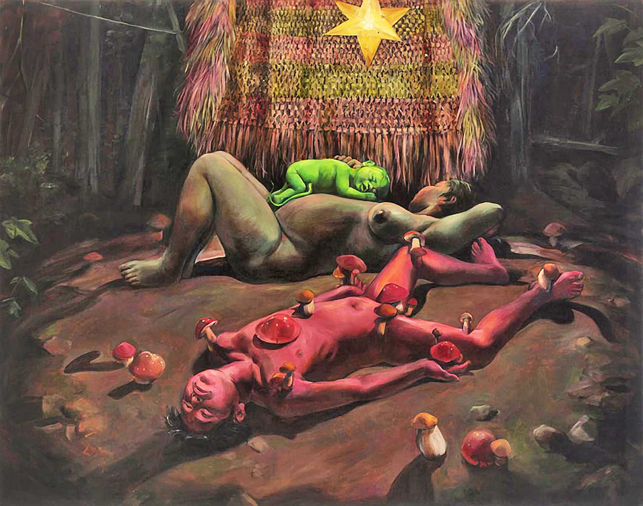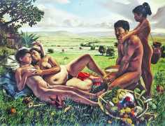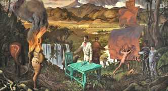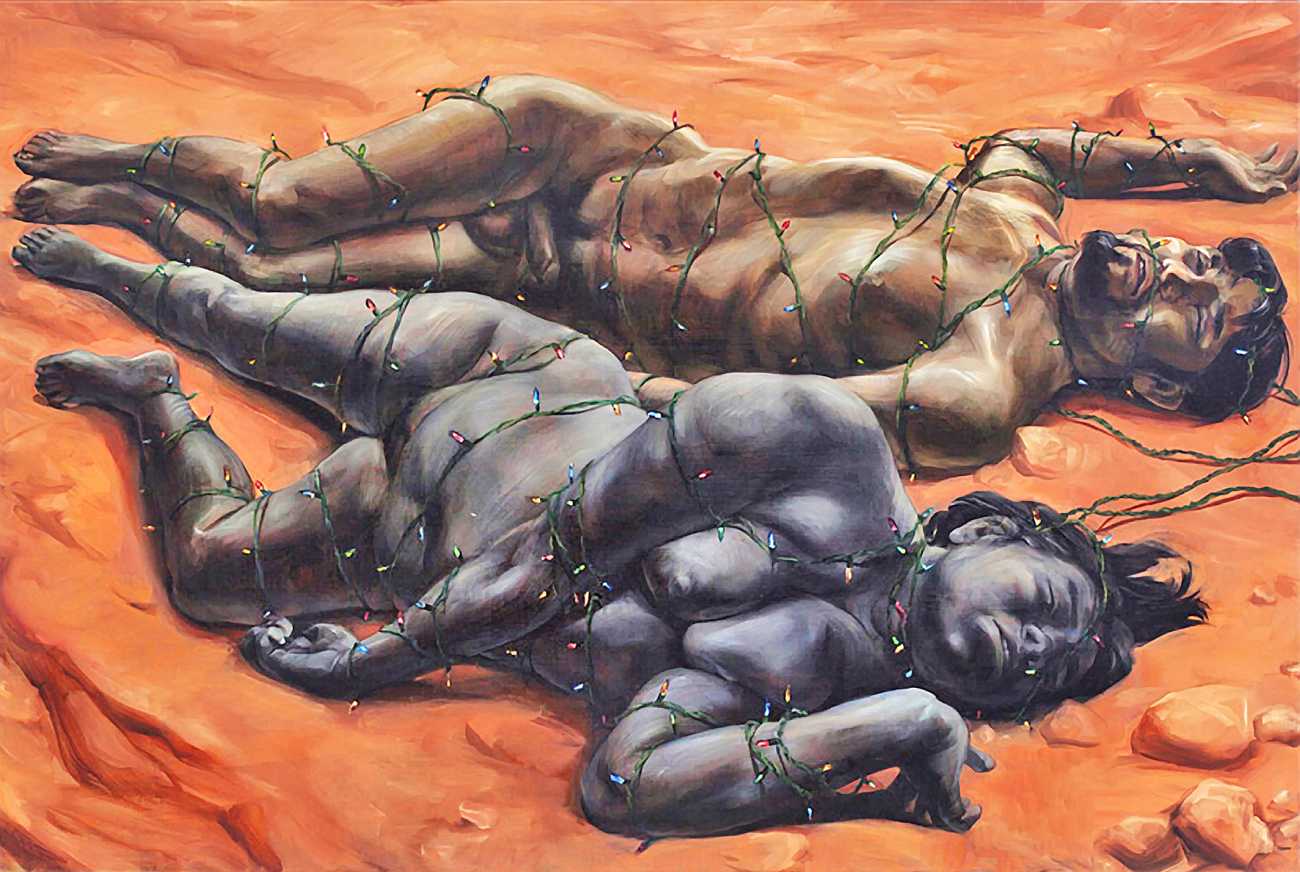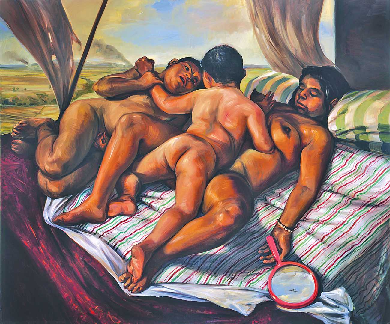 The Mexican artist Daniel Lezama is best known for his highly realistic, complex, and sometimes disturbing compositions of Mexican people in strange dream-like situations with strong symbolic meanings connected with Mexican history and traditions.