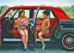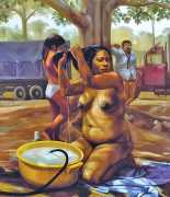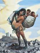 Lezama’s style is heavily influenced by classical artists including Rubens, Goya, Caravaggio and Velazquez, and Lezama uses the same level of painterly detail to create unreal scenes inspired by aspects of historical and contemporary Mexican life, interpreted from his own very personal point of view. Many of his paintings gather groups of unrelated people in unexpected settings, resulting in representations that resemble surrealistic art. While his images represent everyday characters, in his compositions they are converted into history, myths and legends. Each aspect of the composition has a singular significance, and the composition as a whole connects all the characters together.
