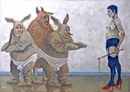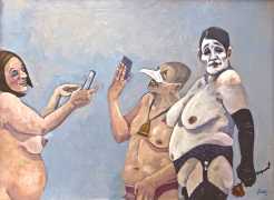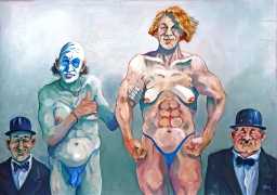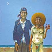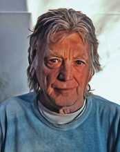 After leaving art school he travelled around Europe for a while before eventually settling down to live in west Penwith in Cornwall, getting married and spending twelve years living in the artistic hub of St Ives, then regarded as a British outpost of abstract art. That had little influence except that none of the local galleries was prepared to even look at the work of a figurative artist, but he made a living mostly from landscape painting. After his marriage broke up he left Cornwall and travelled the world for several years until, feeling a need to be settled, he went to live in south Devon where he has lived ever since. Apart from painting he did a little teaching, and began to think of specialising in art therapy, and went back to college at Dartington College of Art. But the art world had changed, and by then he was exhibiting and his work was selling well, so he gave up the idea to concentrate on painting.