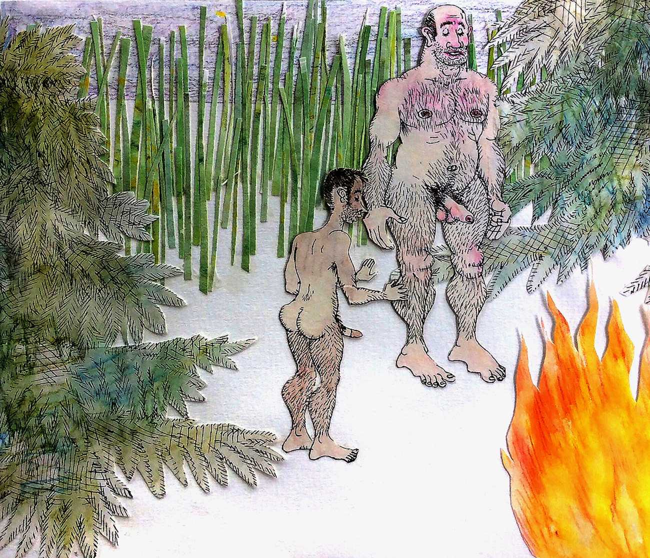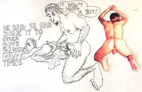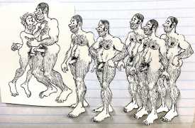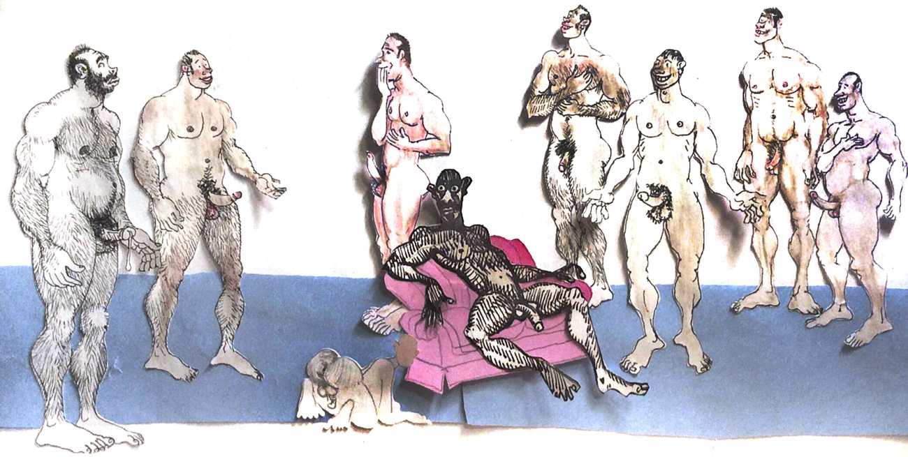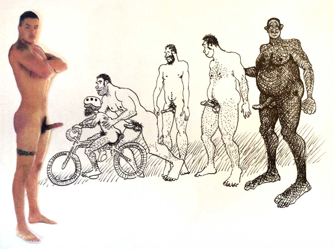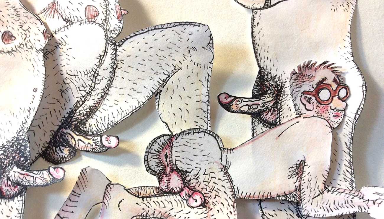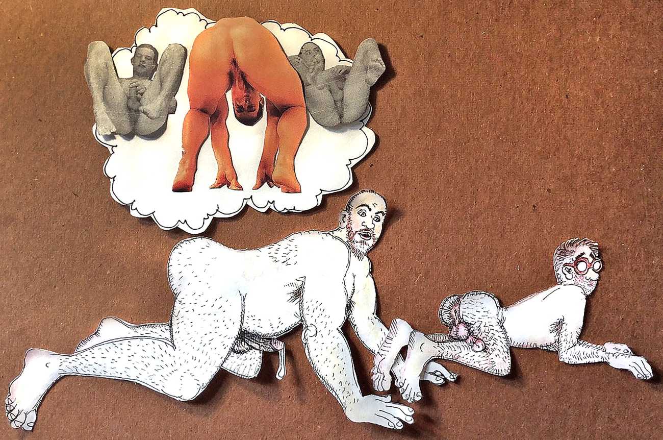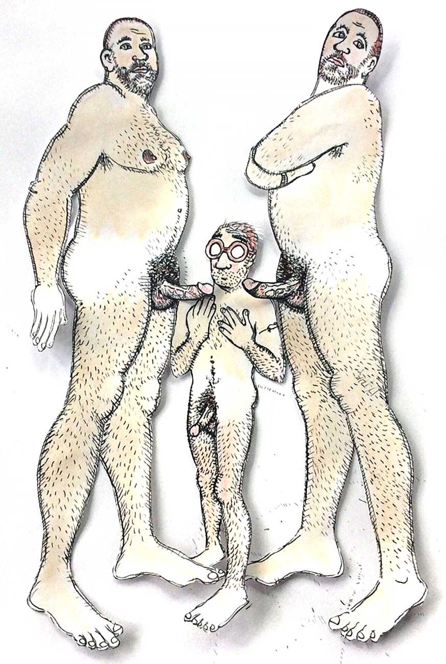 Melnyk is a multidisciplinary artist who works in drawing, collage, video and performance. He grew up in Winnipeg, and studied advertising art at Red River Community College before graduating in 1974; in 1981 he gained his Bachelor of Fine Arts at the University of Manitoba. He is the author of three books (Naked Croquet, Doctor Meist, and Doug Melnyk’s Fruits), and his video work can be found in a number of public collections including the Winnipeg Art Gallery, the National Gallery of Canada and New York’s Museum of Modern Art. His art projects situate queer sexuality within both Christian and evolutionary discourses, and include Adam and Steve (Forest City Gallery, London, Ontario, and AKA Gallery, Saskatoon) and the unfinished 2012 cartoon The Story of Roy.