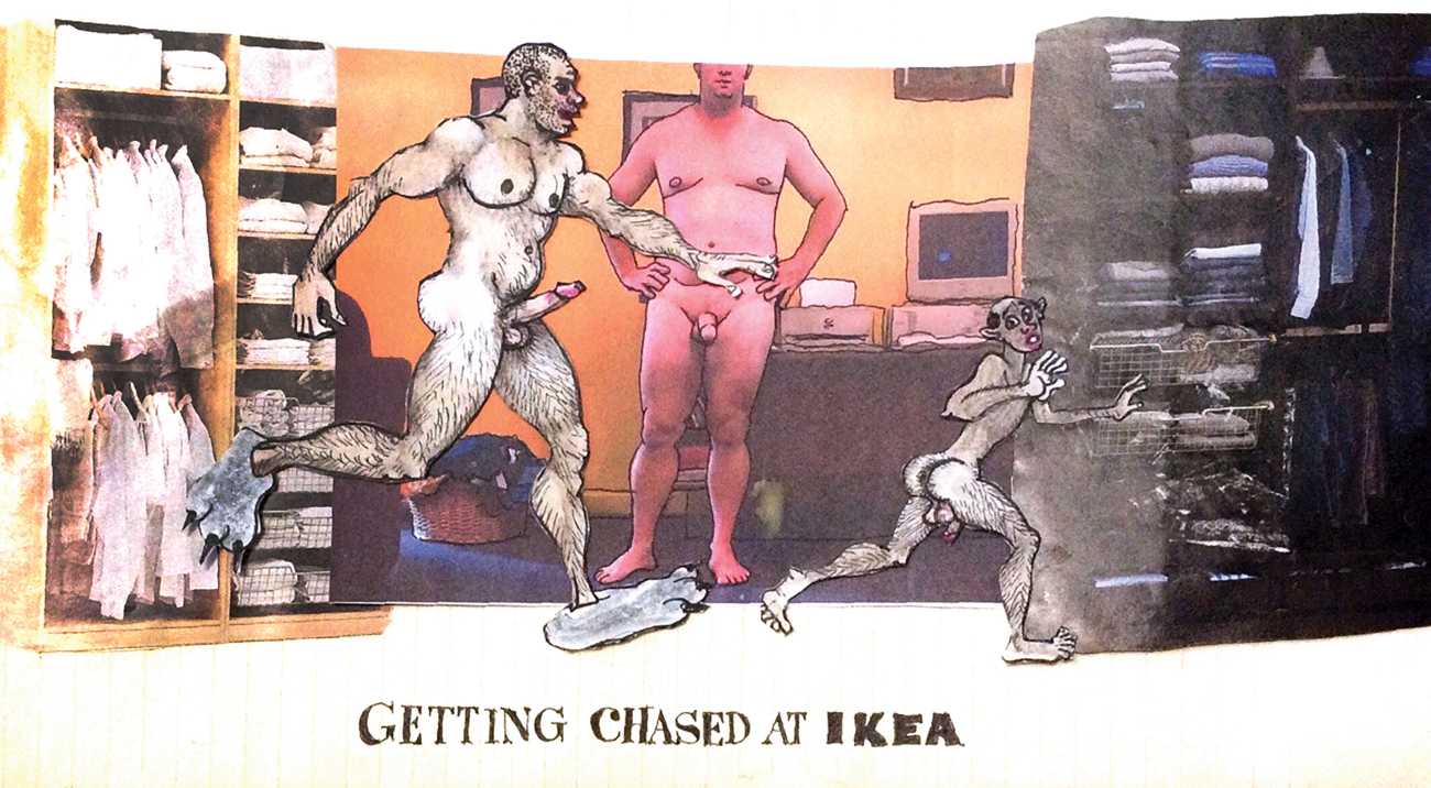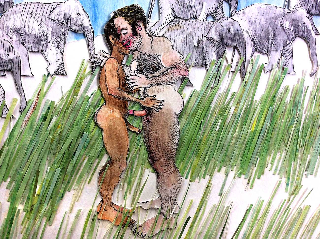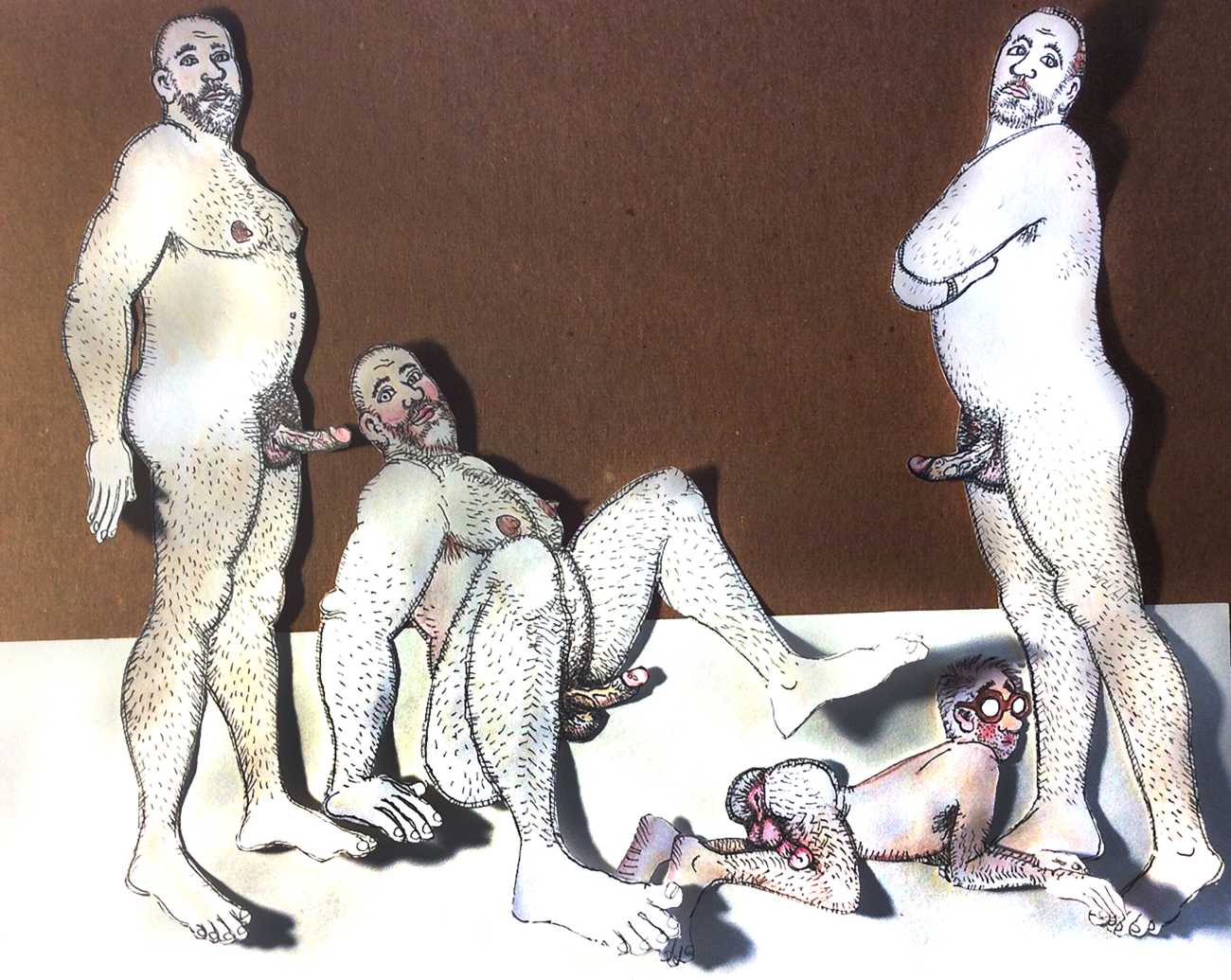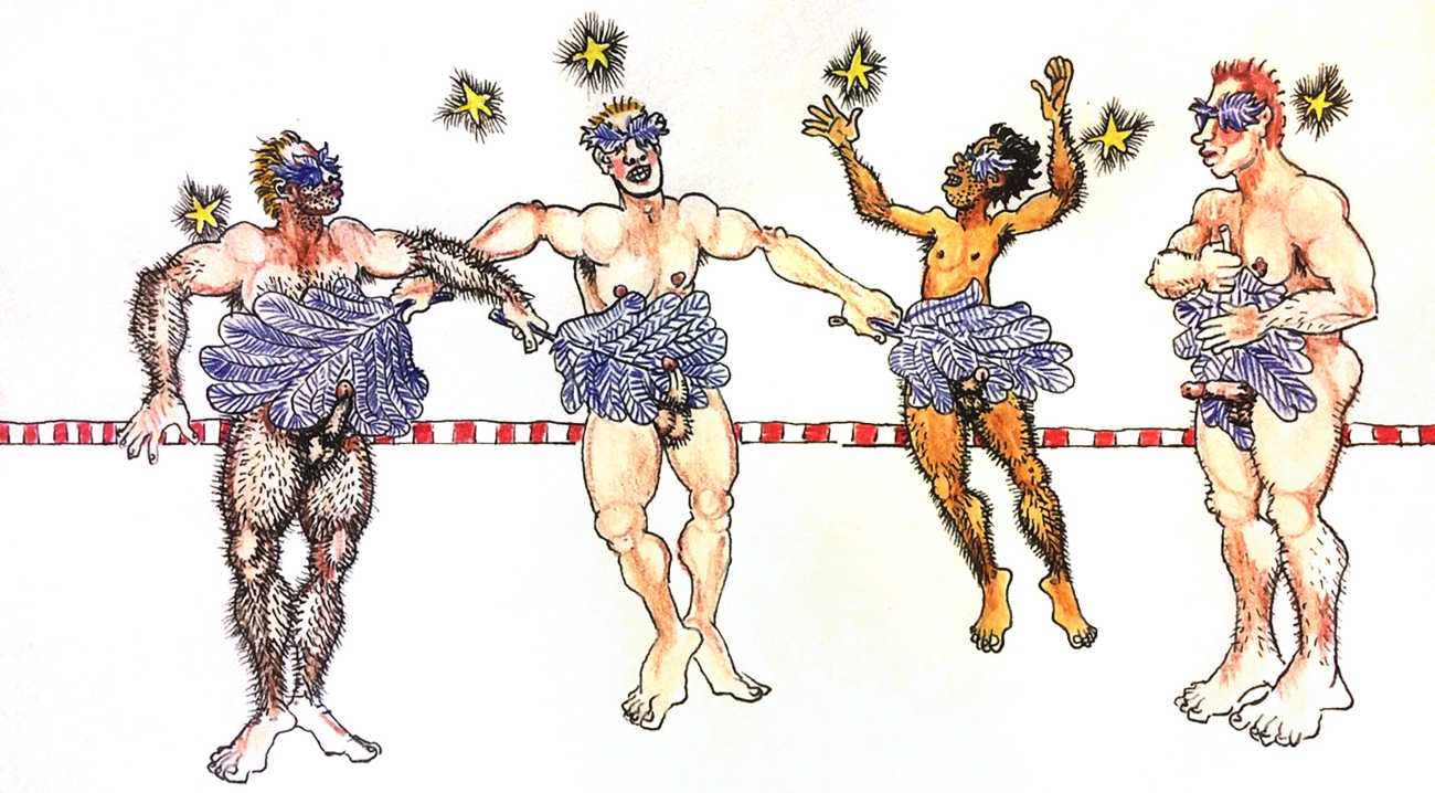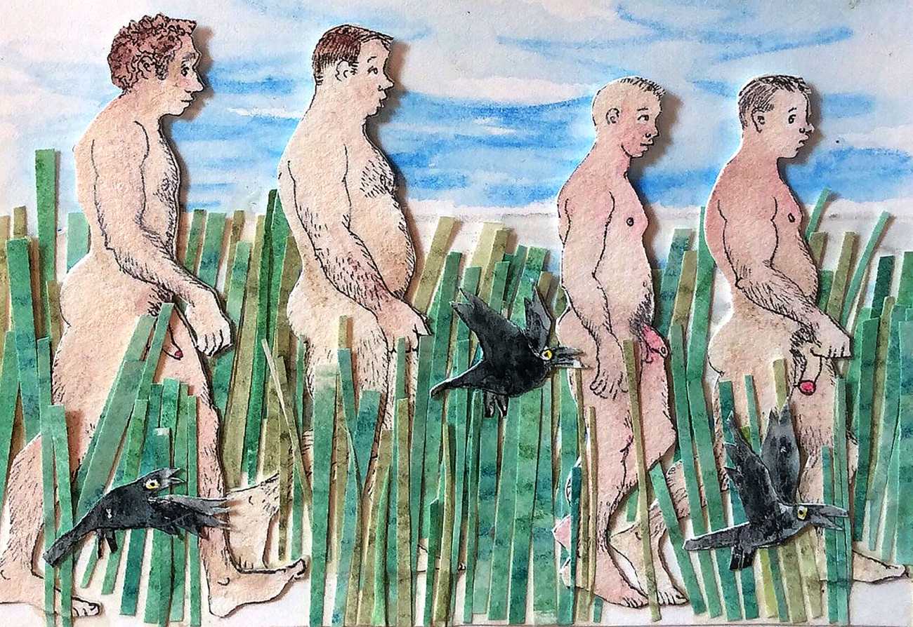 Melnyk is a multidisciplinary artist who works in drawing, collage, video and performance. He grew up in Winnipeg, and studied advertising art at Red River Community College before graduating in 1974; in 1981 he gained his Bachelor of Fine Arts at the University of Manitoba. He is the author of three books (Naked Croquet, Doctor Meist, and Doug Melnyk’s Fruits), and his video work can be found in a number of public collections including the Winnipeg Art Gallery, the National Gallery of Canada and New York’s Museum of Modern Art. His art projects situate queer sexuality within both Christian and evolutionary discourses, and include Adam and Steve (Forest City Gallery, London, Ontario, and AKA Gallery, Saskatoon) and the unfinished 2012 cartoon The Story of Roy.