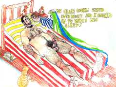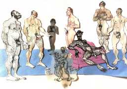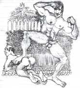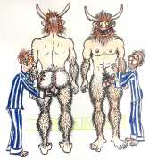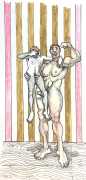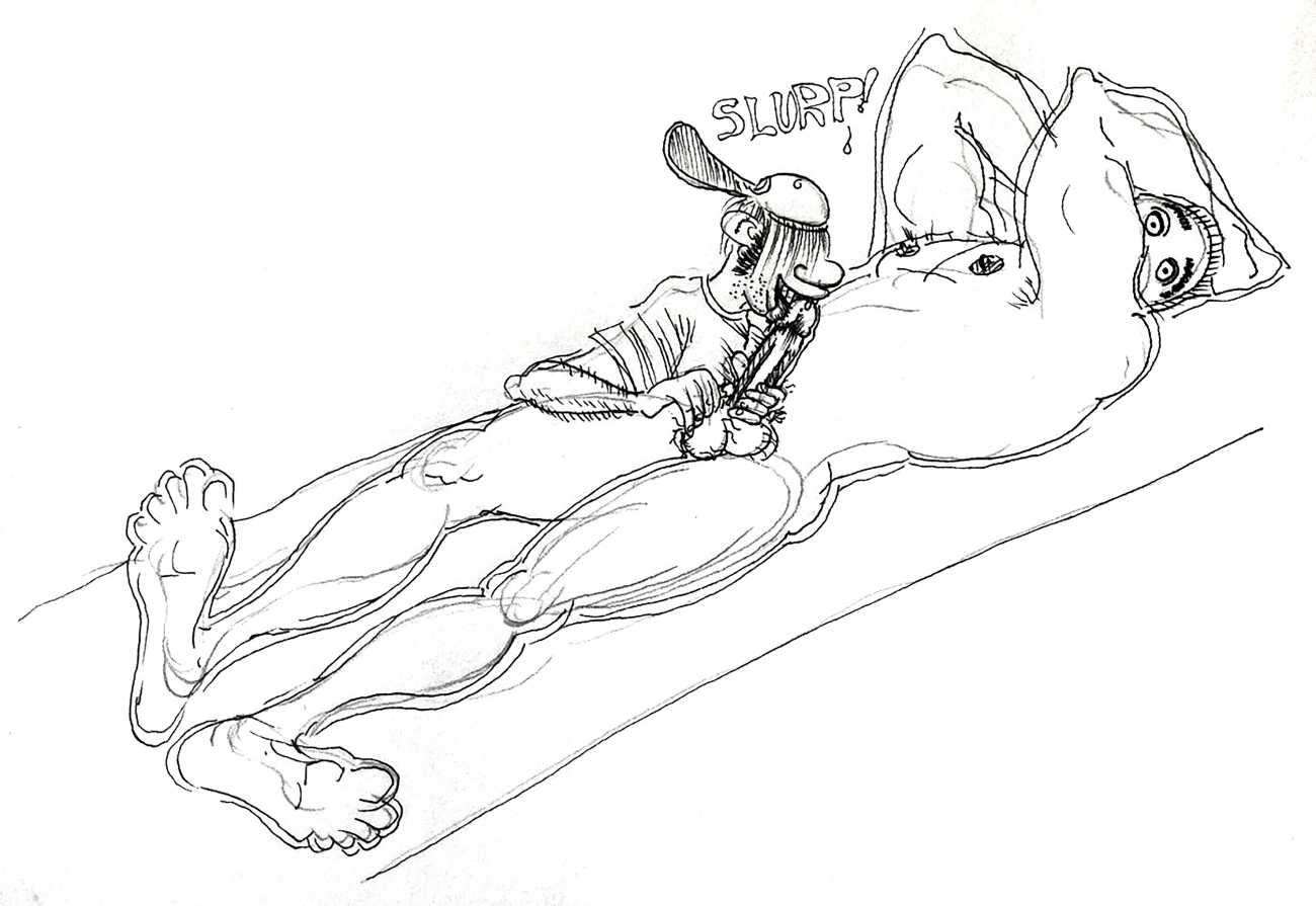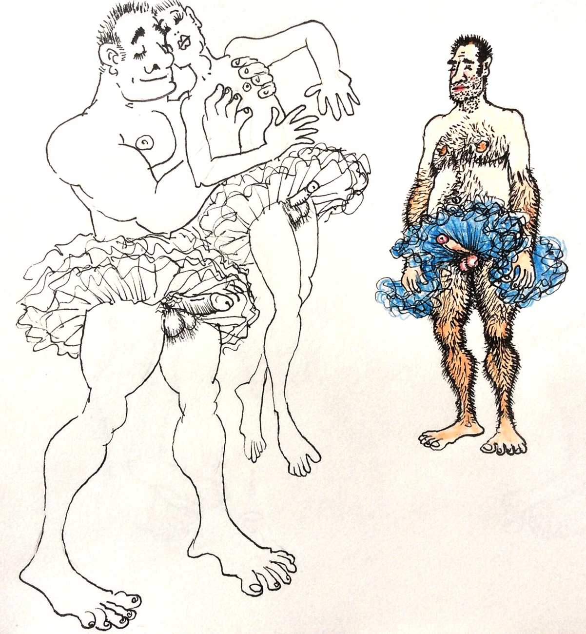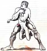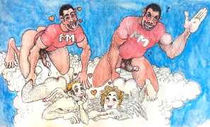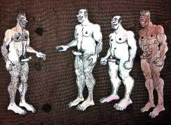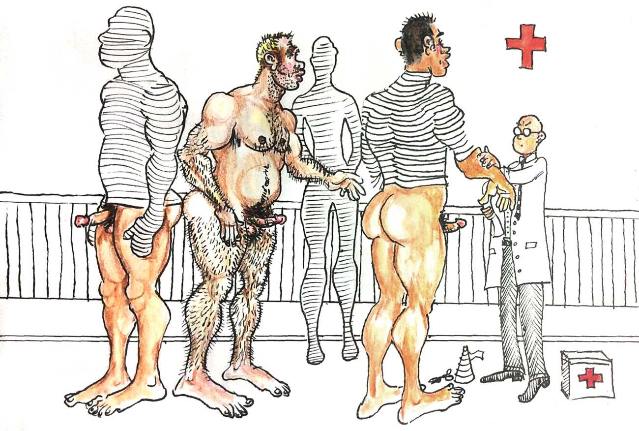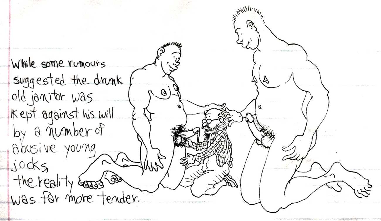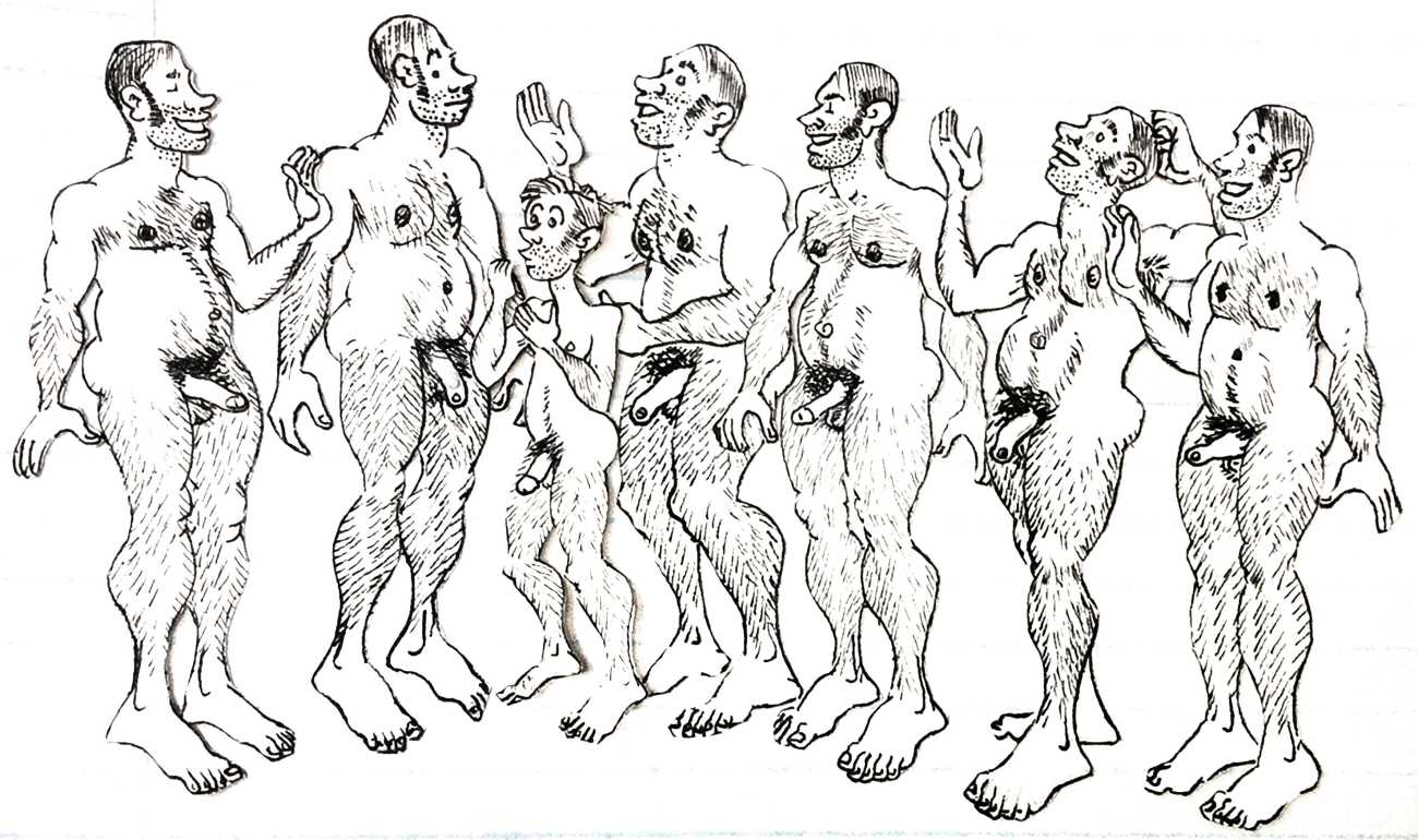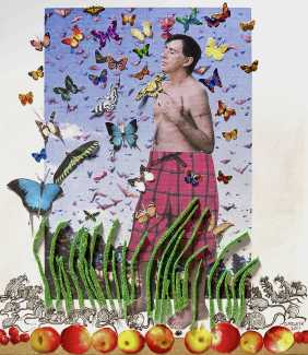 Melnyk is a multidisciplinary artist who works in drawing, collage, video and performance. He grew up in Winnipeg, and studied advertising art at Red River Community College before graduating in 1974; in 1981 he gained his Bachelor of Fine Arts at the University of Manitoba. He is the author of three books (Naked Croquet, Doctor Meist, and Doug Melnyk’s Fruits), and his video work can be found in a number of public collections including the Winnipeg Art Gallery, the National Gallery of Canada and New York’s Museum of Modern Art. His art projects situate queer sexuality within both Christian and evolutionary discourses, and include Adam and Steve (Forest City Gallery, London, Ontario, and AKA Gallery, Saskatoon) and the unfinished 2012 cartoon The Story of Roy.