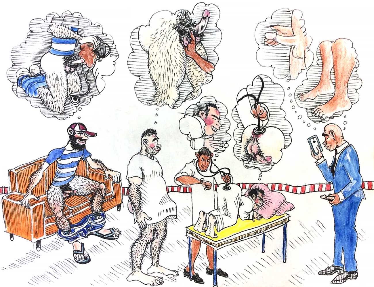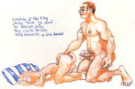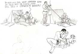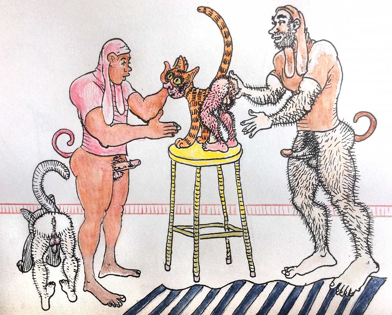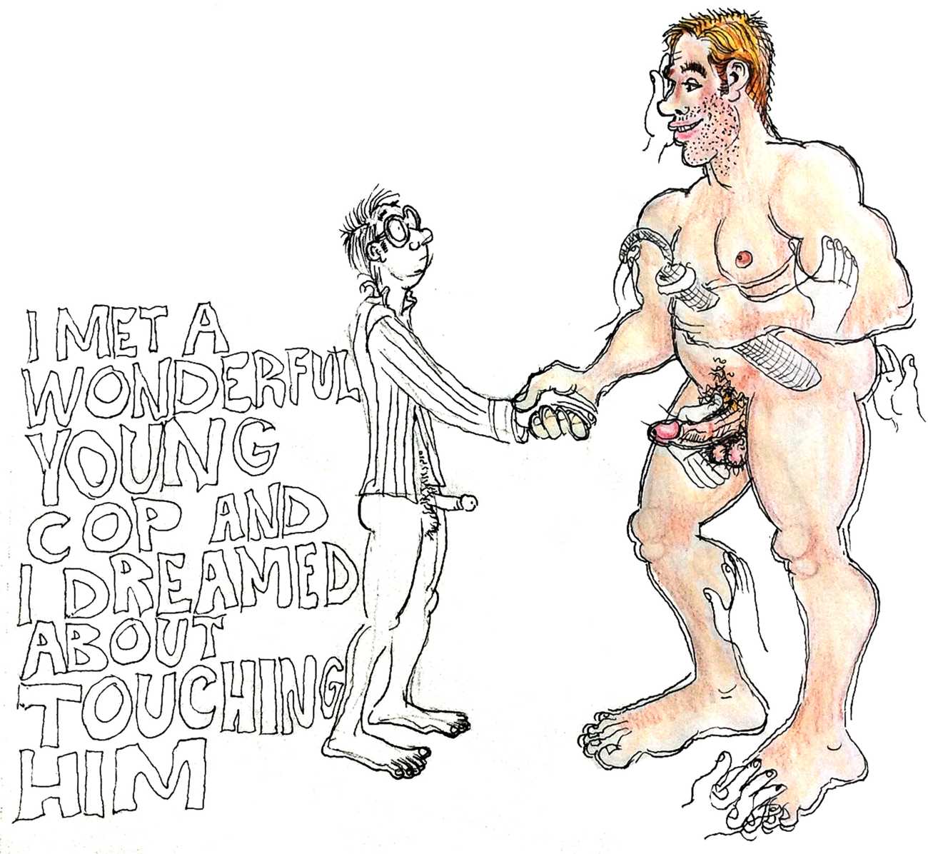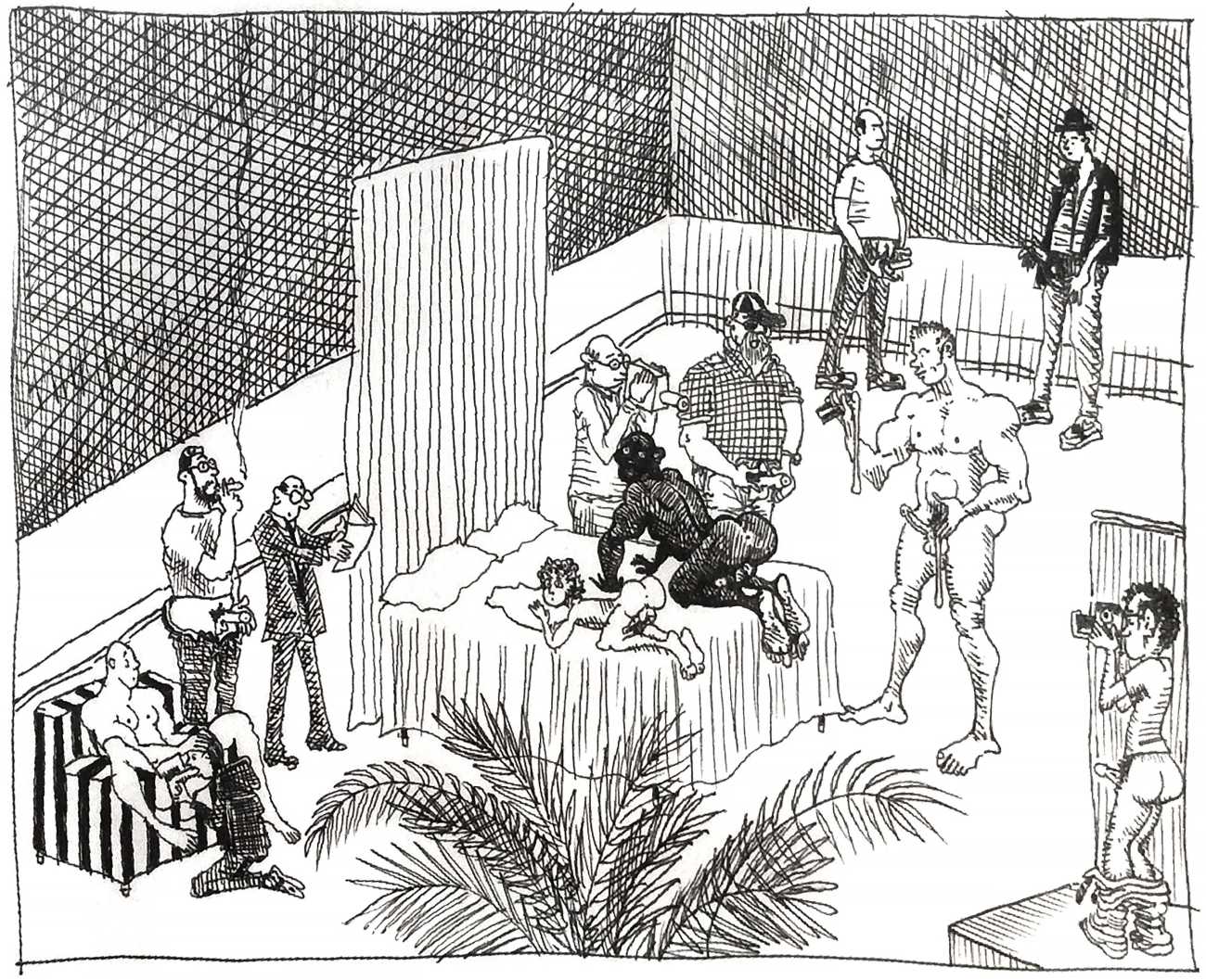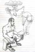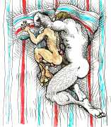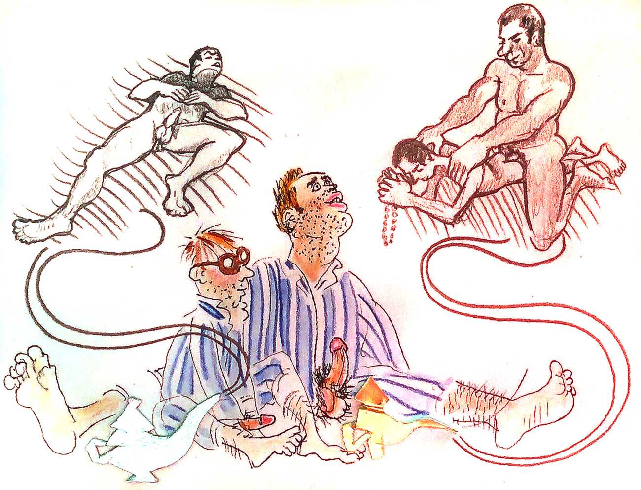 Melnyk is a multidisciplinary artist who works in drawing, collage, video and performance. He grew up in Winnipeg, and studied advertising art at Red River Community College before graduating in 1974; in 1981 he gained his Bachelor of Fine Arts at the University of Manitoba. He is the author of three books (Naked Croquet, Doctor Meist, and Doug Melnyk’s Fruits), and his video work can be found in a number of public collections including the Winnipeg Art Gallery, the National Gallery of Canada and New York’s Museum of Modern Art. His art projects situate queer sexuality within both Christian and evolutionary discourses, and include Adam and Steve (Forest City Gallery, London, Ontario, and AKA Gallery, Saskatoon) and the unfinished 2012 cartoon The Story of Roy.