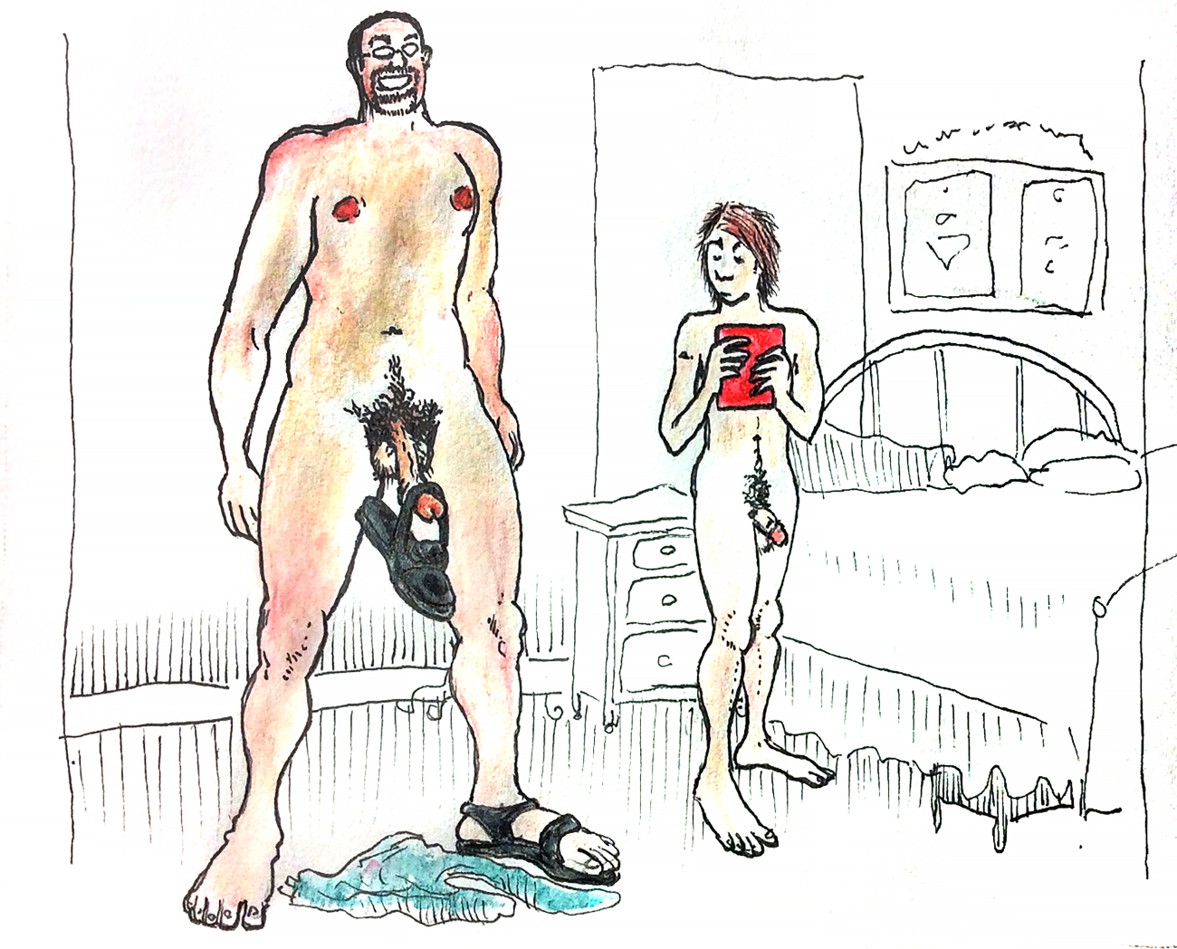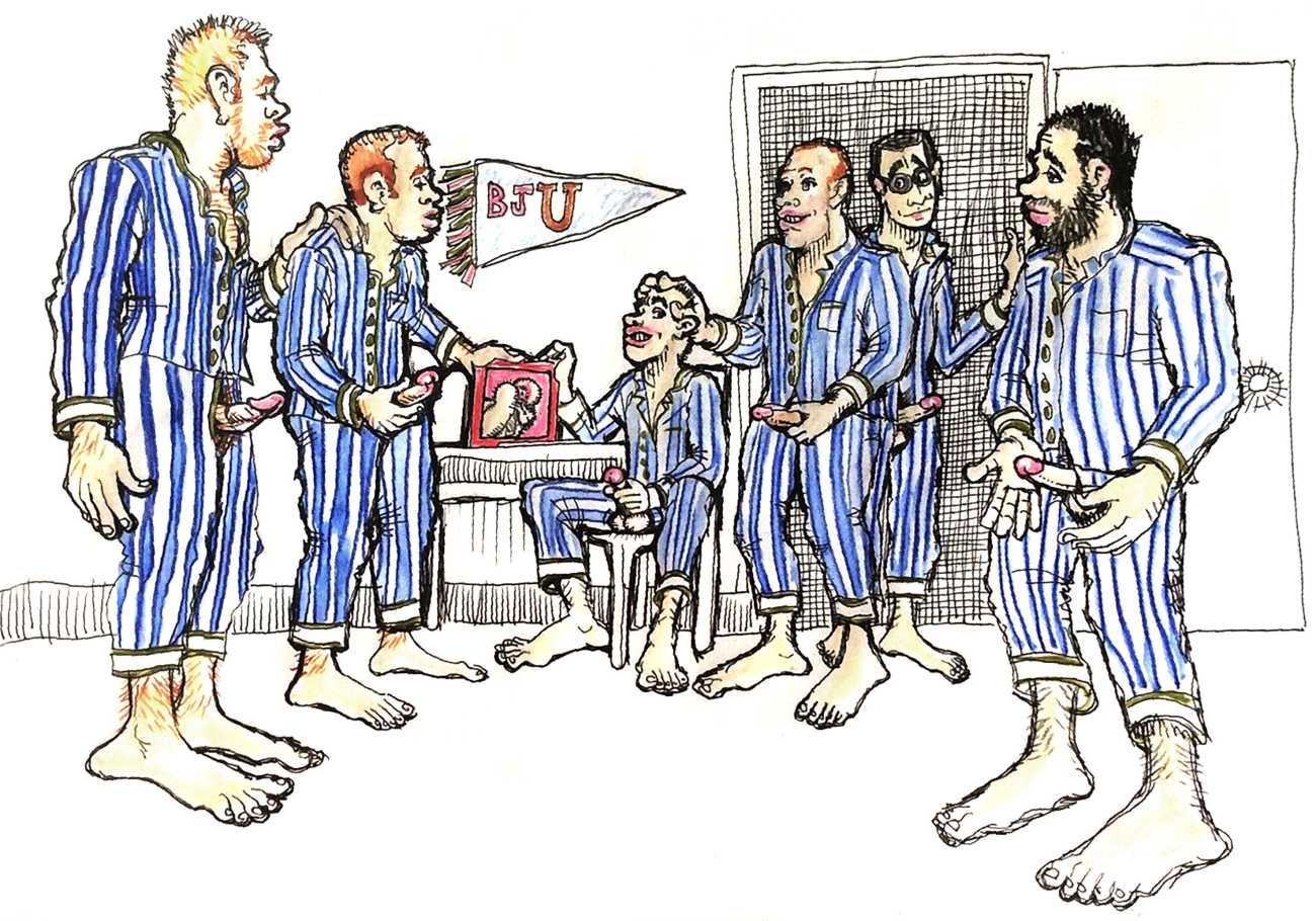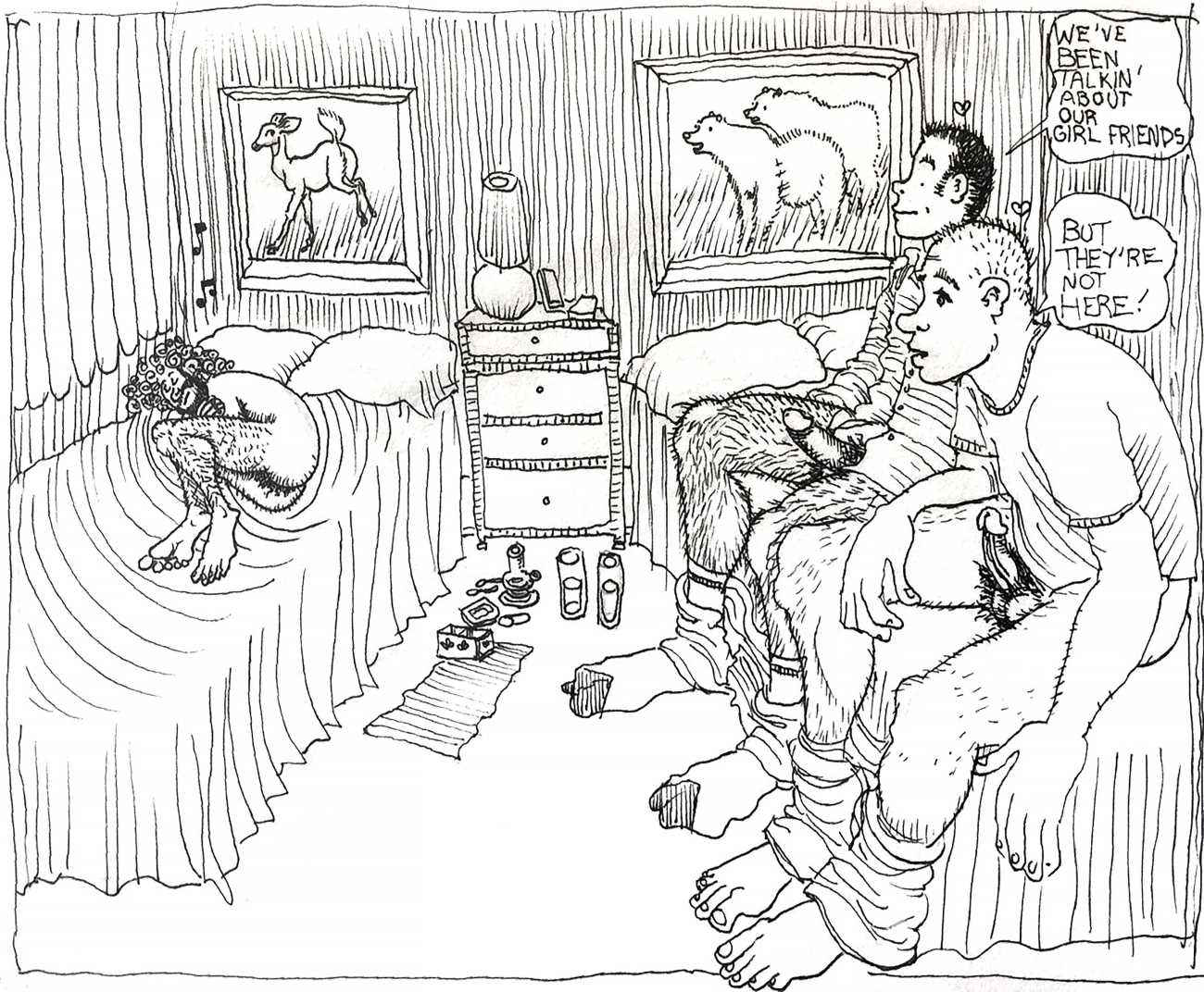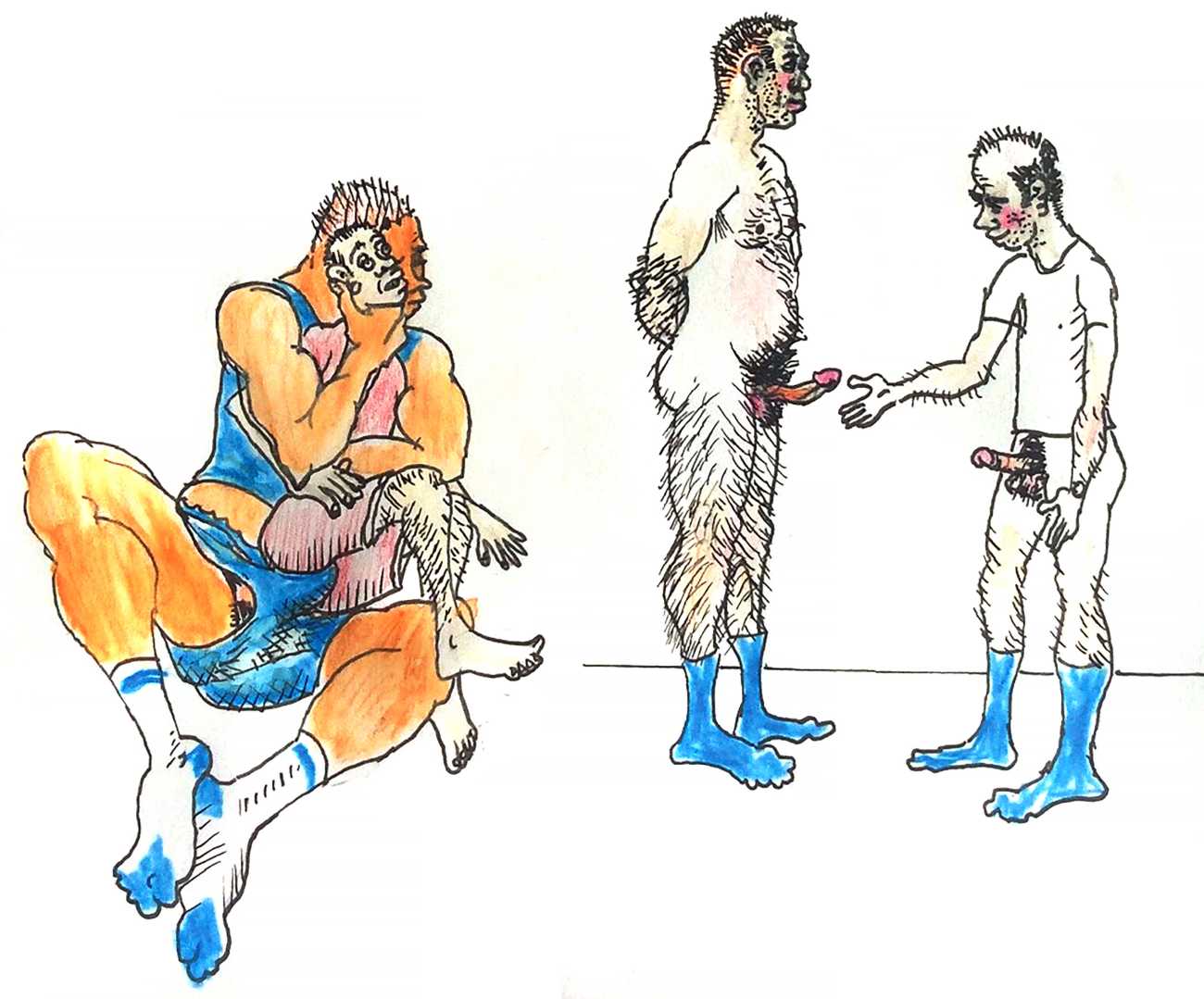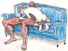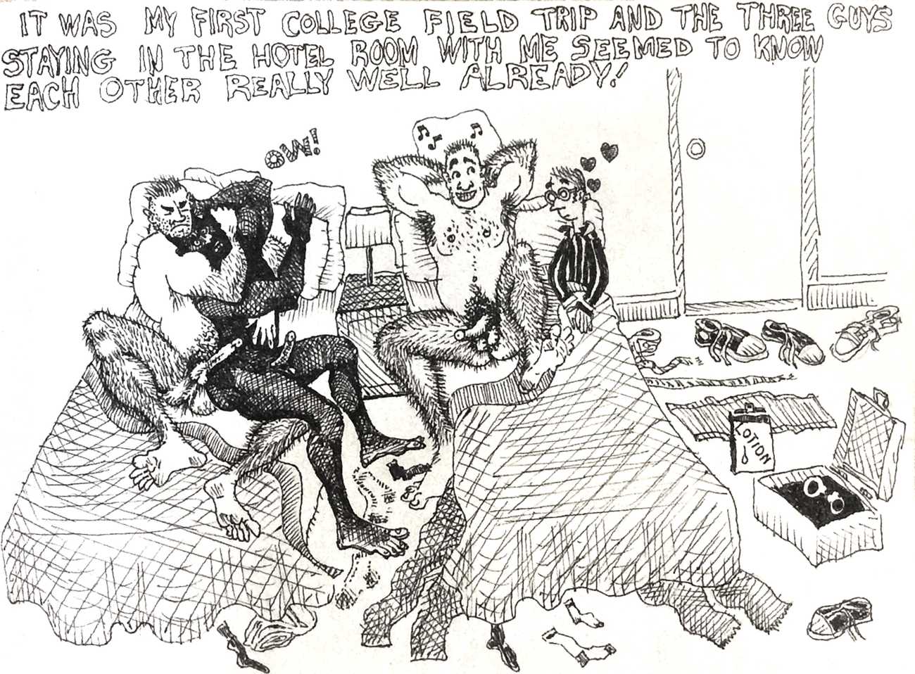 Melnyk is a multidisciplinary artist who works in drawing, collage, video and performance. He grew up in Winnipeg, and studied advertising art at Red River Community College before graduating in 1974; in 1981 he gained his Bachelor of Fine Arts at the University of Manitoba. He is the author of three books (Naked Croquet, Doctor Meist, and Doug Melnyk’s Fruits), and his video work can be found in a number of public collections including the Winnipeg Art Gallery, the National Gallery of Canada and New York’s Museum of Modern Art. His art projects situate queer sexuality within both Christian and evolutionary discourses, and include Adam and Steve (Forest City Gallery, London, Ontario, and AKA Gallery, Saskatoon) and the unfinished 2012 cartoon The Story of Roy.