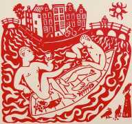 Eddy Varekamp has been running his small art gallery in the Nine Streets canal district of Amsterdam for many years, selling his trademark paintings, linocut and stencil prints, and ceramics alongside other art and crafts relating to the city. Gallery Varekamp at Hartenstraat 30 is often described by visitors as cosy, awesome and unforgettable.
