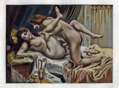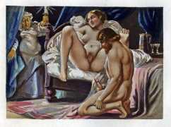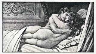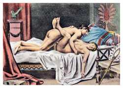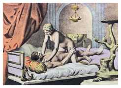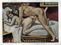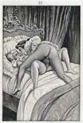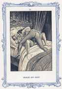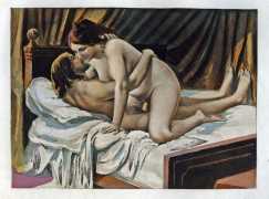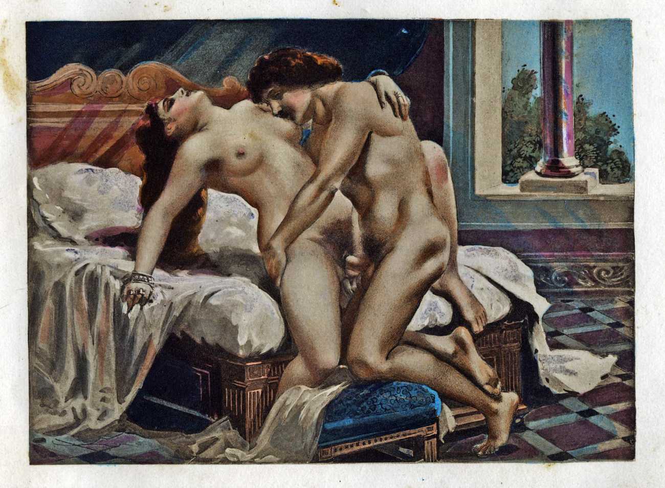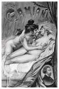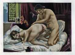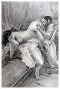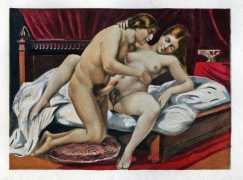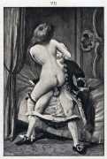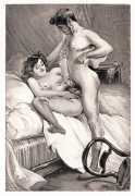 As so little conclusive biographical information exists on Avril it is hard to judge specifically the impact his own images had on society though the ‘underground’ nature of many of the works the artist contributed to. However, their limited print runs and sales within exclusive collectors’ circles speak volumes about the way in which erotica was received and perceived during the early years of the twentieth century. Writing for the online magazine Fearless Press, T. M. Bernard notes of Avril his ability to depict sensual and mutually enjoyable scenes of sex – a quality missing from much current sexual imagery: ‘Notice the rapture on the faces of the women, something not usually seen today, where everything is hot and furious, and a woman’s pleasure is often depicted as secondary to the man’s – and the viewers’. What is more, the images reveal a total lack of pretence or shame. Whatever is being shared and experienced together is mutual and pleasurable.’