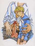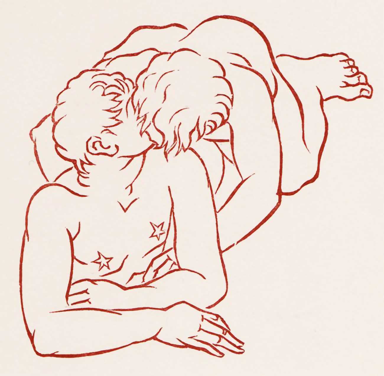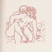 We know very little of Elie Grekoff’s personal life, but he had several close artist and designer friends and colleagues, including the painter Pierre Monteret, with whom he spent much time. He clearly had a deep interest in sexual intimacy, at least when he was in his thirties and forties, and that must surely have included male lovers given the sensitivity and understanding displayed in his Rimbaud and Jouhandeau illustrations.