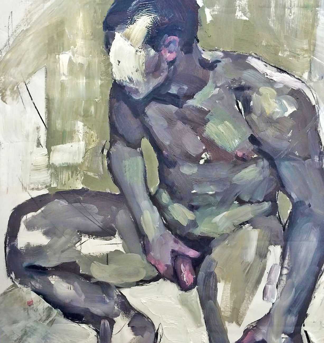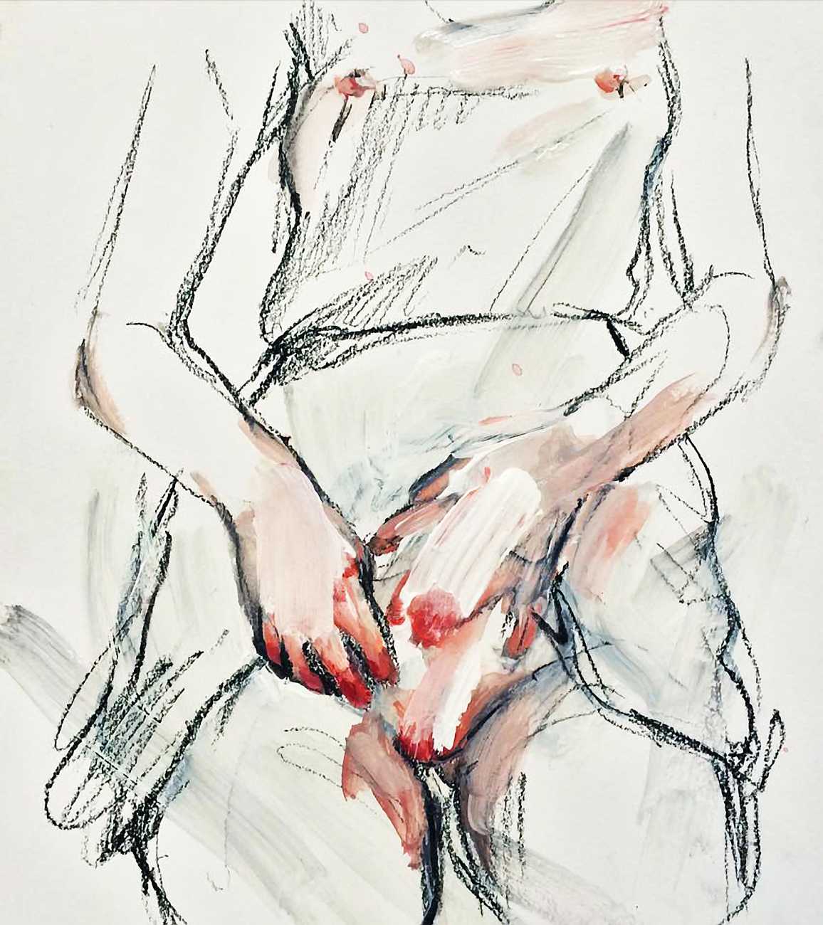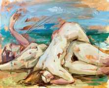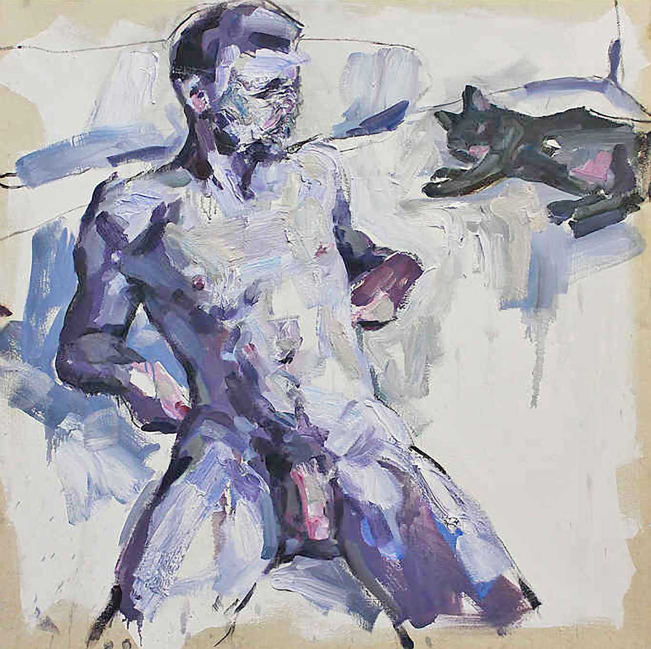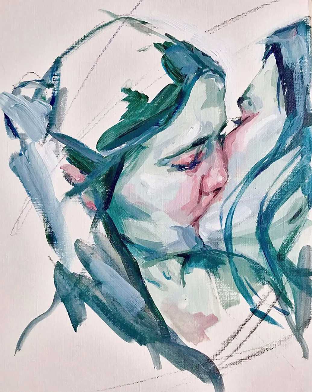 The Canadian artist Elly Smallwood grew up in Ottawa, and has been painting ever since she can remember. She studied art at the Ontario College of Art and Design, and now lives and works in Toronto. She primarily works with oils, creating large-scale paintings which capture the vitality and movement of the human body. Some of the figures have no face, while the rest of their bodies appear slashed through with deep wounds.