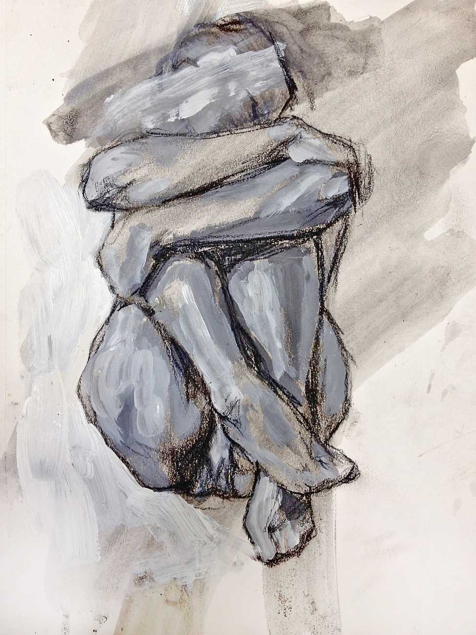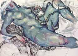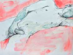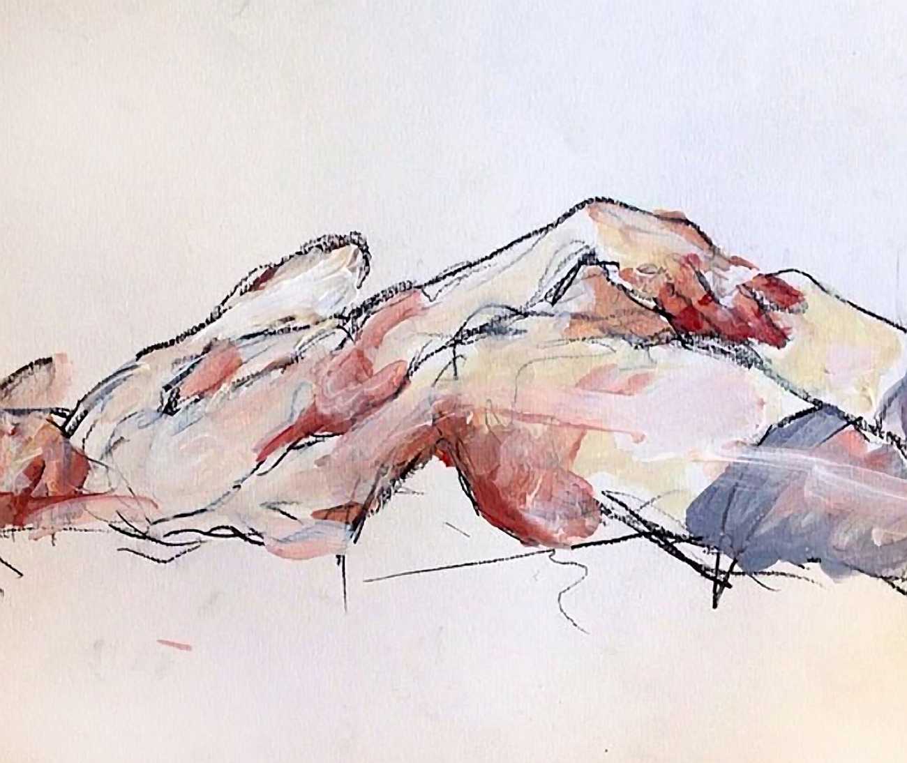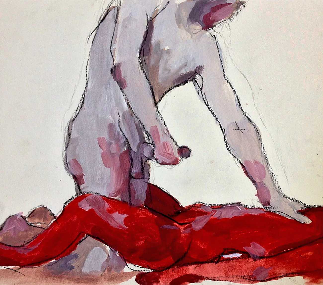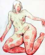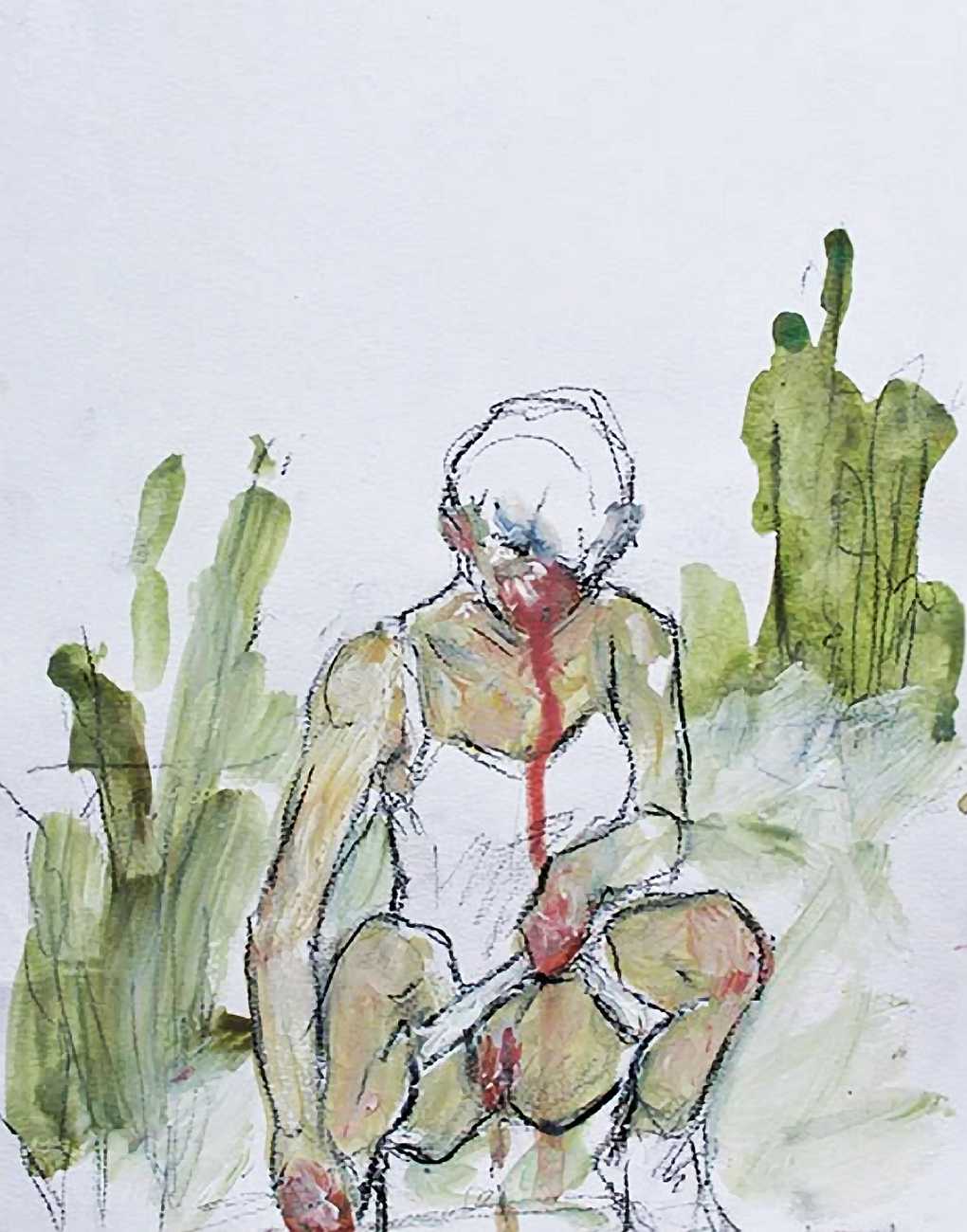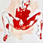 The Canadian artist Elly Smallwood grew up in Ottawa, and has been painting ever since she can remember. She studied art at the Ontario College of Art and Design, and now lives and works in Toronto. She primarily works with oils, creating large-scale paintings which capture the vitality and movement of the human body. Some of the figures have no face, while the rest of their bodies appear slashed through with deep wounds.